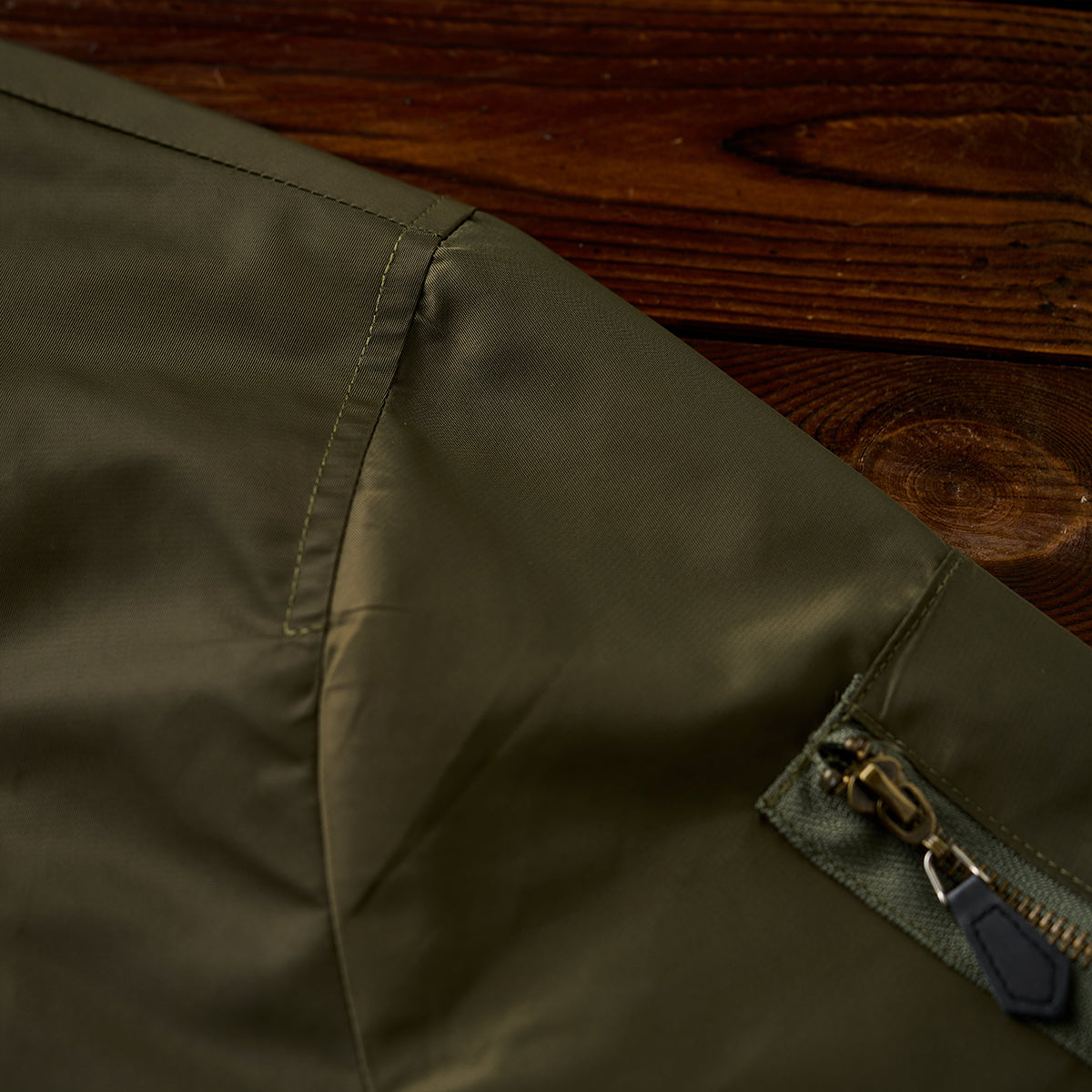 表側と裏側の部分には、程よい光沢感と高級感のある風合いが持ち味のナイロン生地を採用、武骨さ、耐久性があり、実用的な機能美が魅力的。