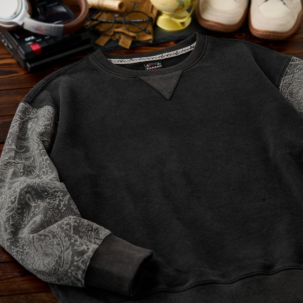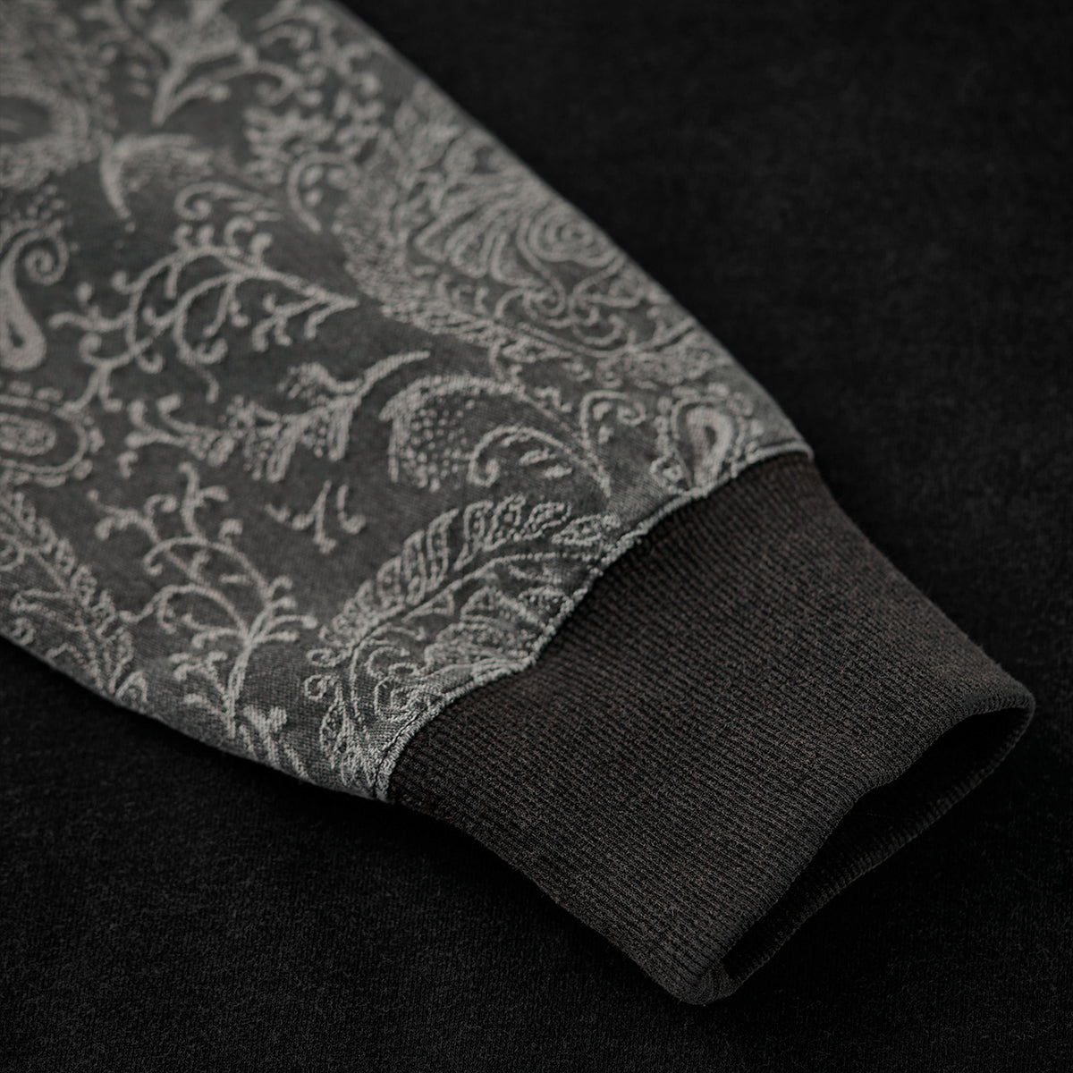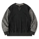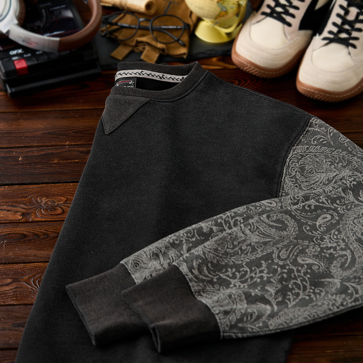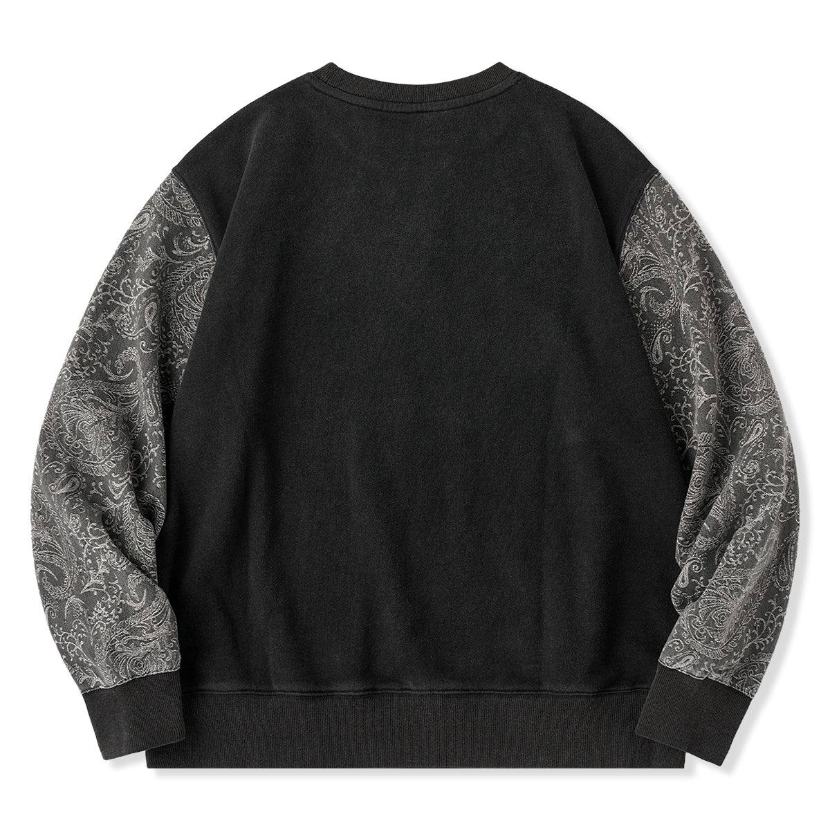袖ペイズリー柄ジャガードデニム切替 ウォッシュ加工Vガゼットスウェット