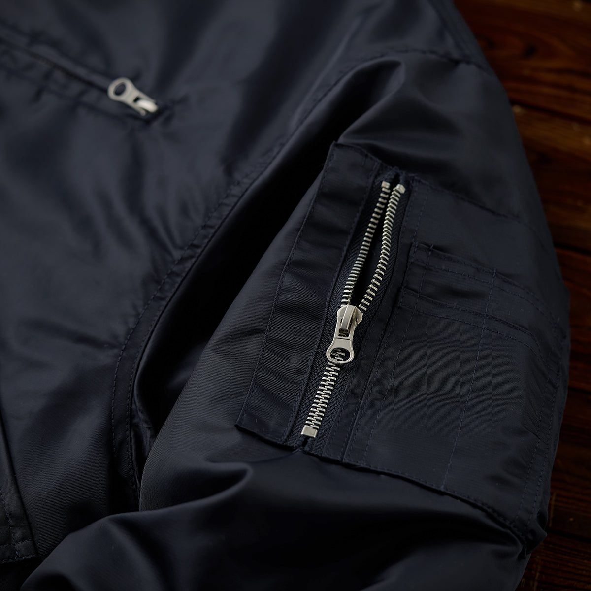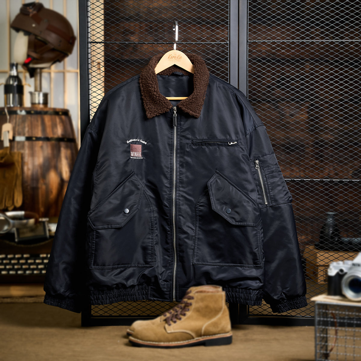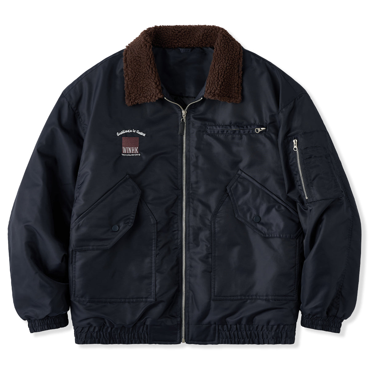 襟ボア MA-1ポケット付き 裏キルト中綿フライトジャケット