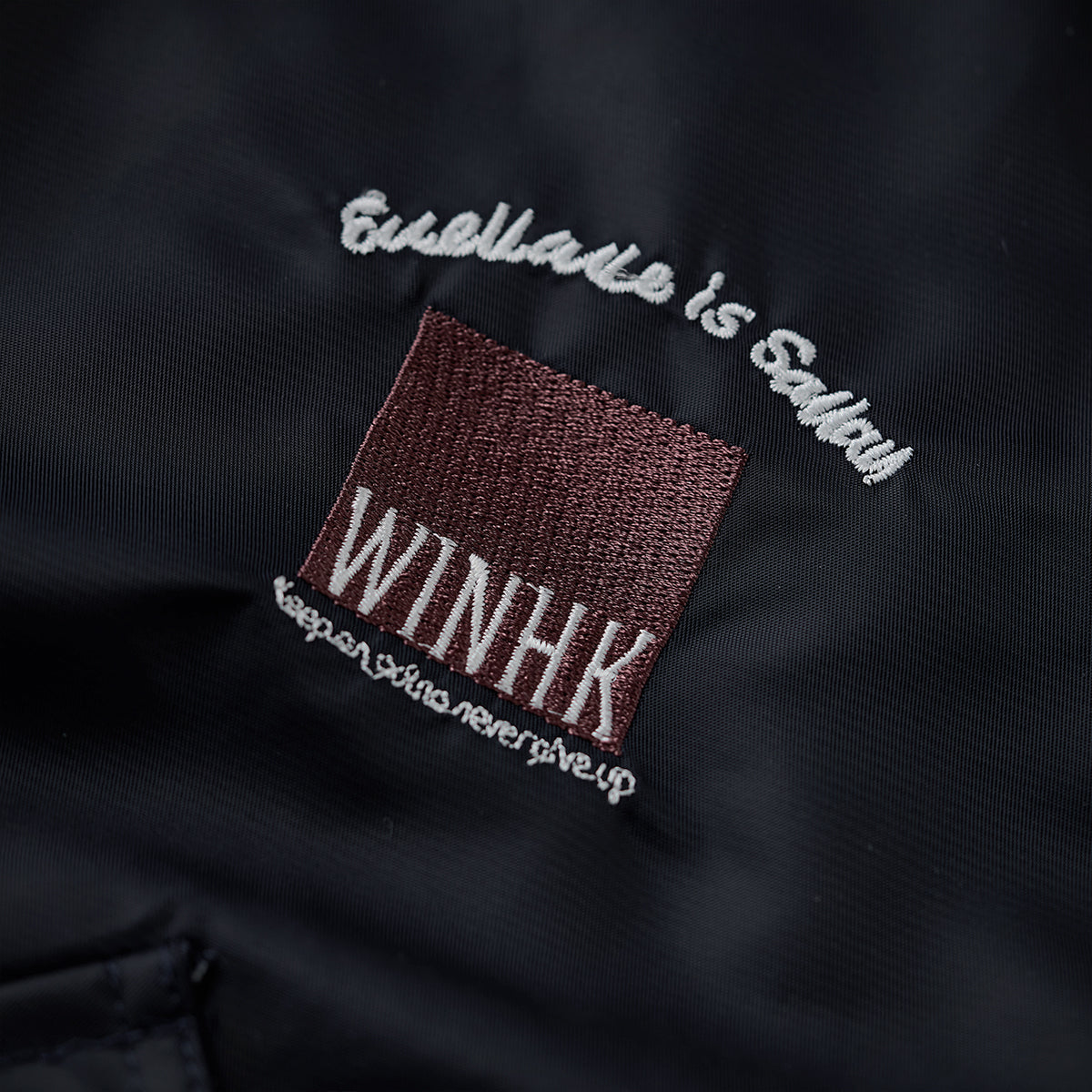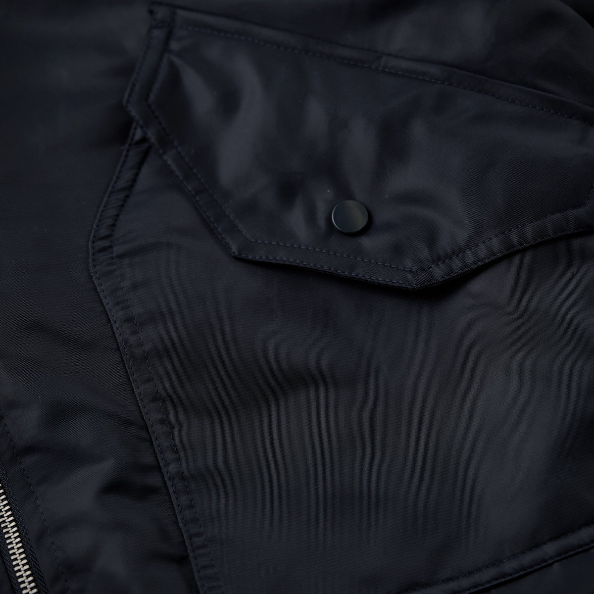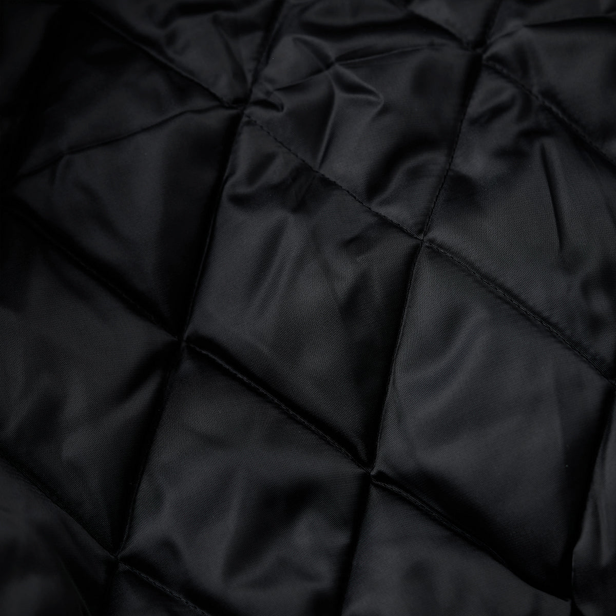 表地のナイロン素材は、光沢があり高級感を感じさせる仕上がり。  耐久性が高く、摩耗や引き裂きに強いため、長期間の使用が可能。防風性・撥水性があり、軽量であるため、秋冬のアウターとして理想的。