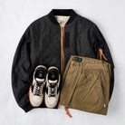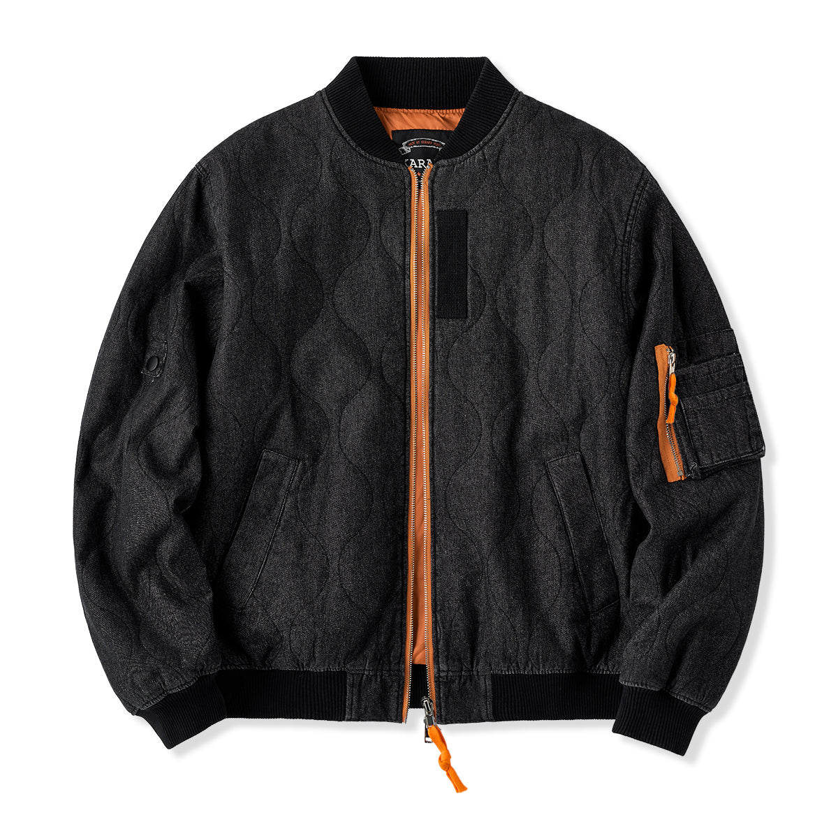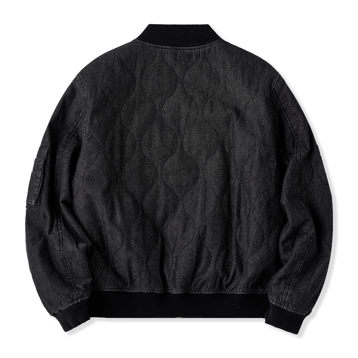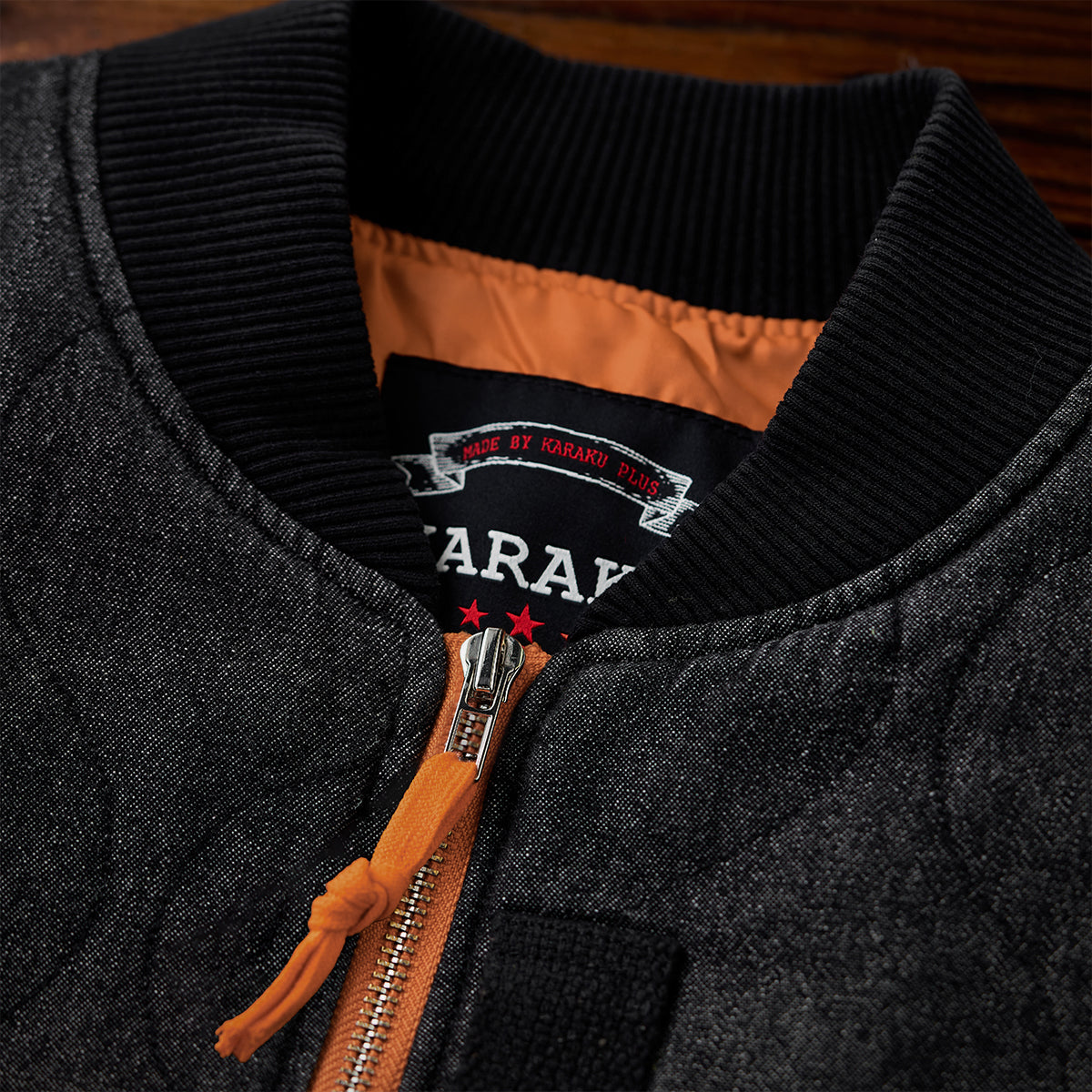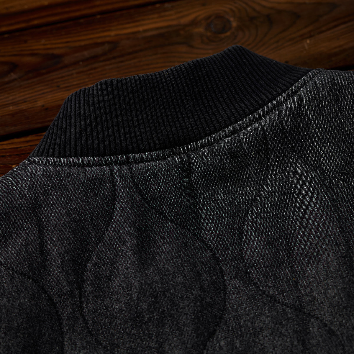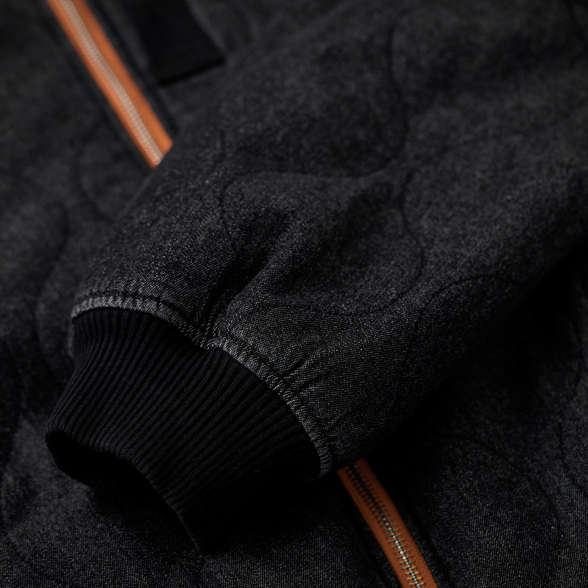 ヴィンテージフライトジャケットの無骨さを、ウォッシュドデニムとひょうたんキルトで再構築。全面に施したひょうたん型キルティングは、防寒性を高めるだけでなく、立体的な陰影をつくり、ジャケット全体に奥行きを与えます。内側のオレンジライニングに加え、前立てやジップ引き手にもオレンジ切替を採用。開けても閉めても表情が変わり、ブルーデニムとの鮮烈なコントラストが、スタイリングにエネルギーを与えます。デイリーからアウトドアまで幅広く対応します。重厚さがありながら、キルト構造により軽快な着心地を実現しているのも魅力。