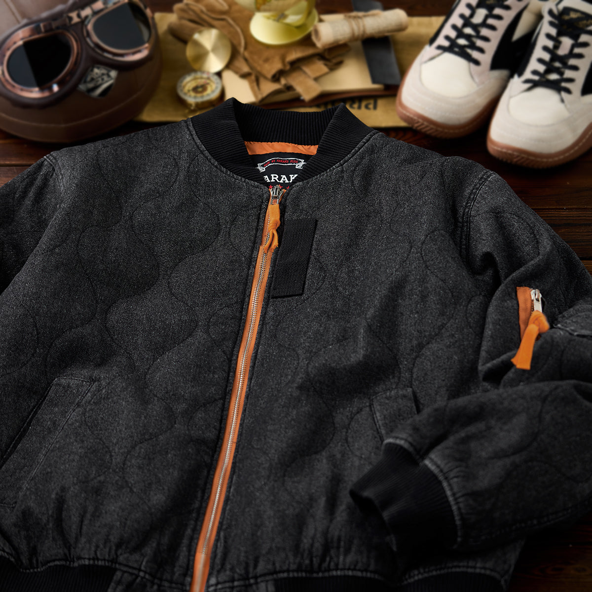 【予約】オレンジライニング ウォッシュドデニムひょうたんキルトフライトジャケット
