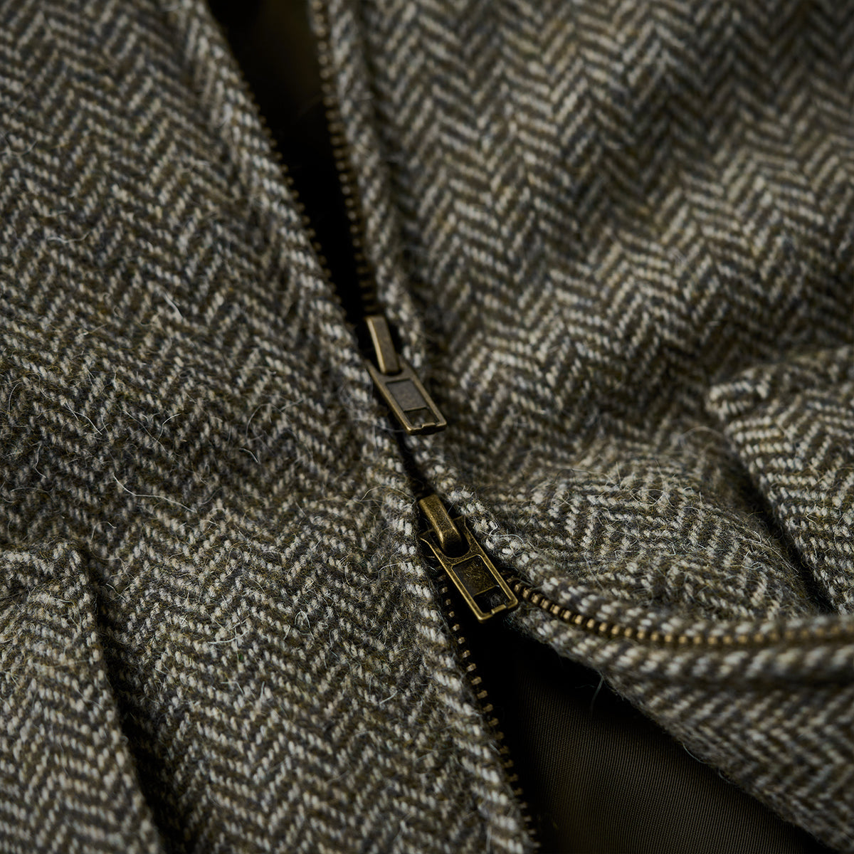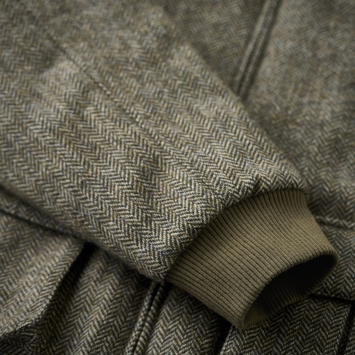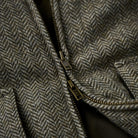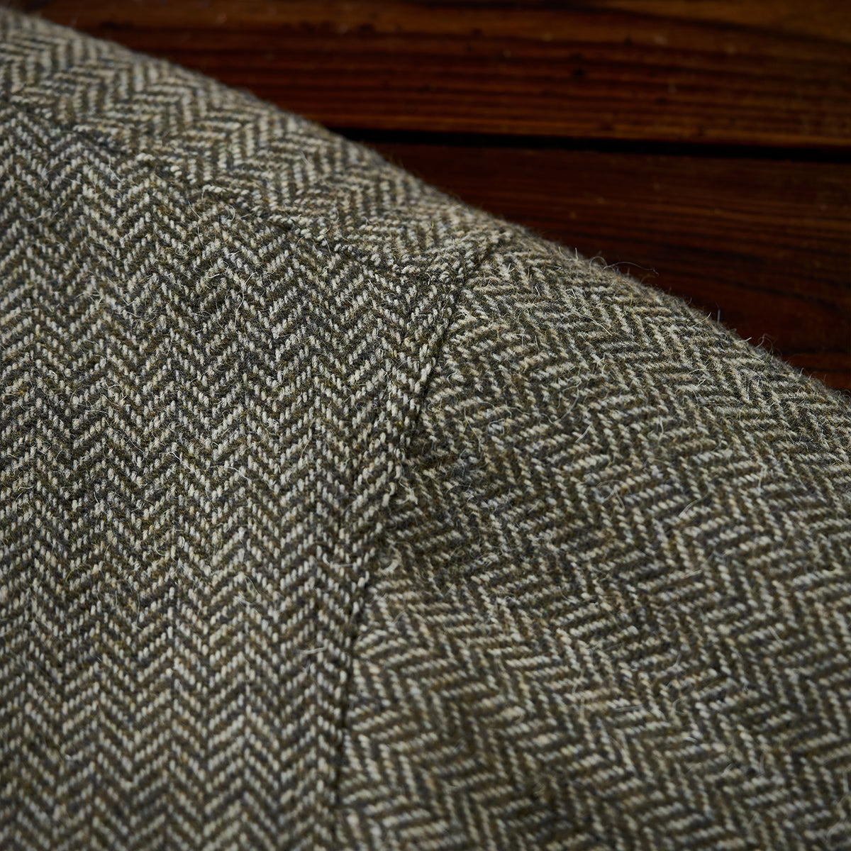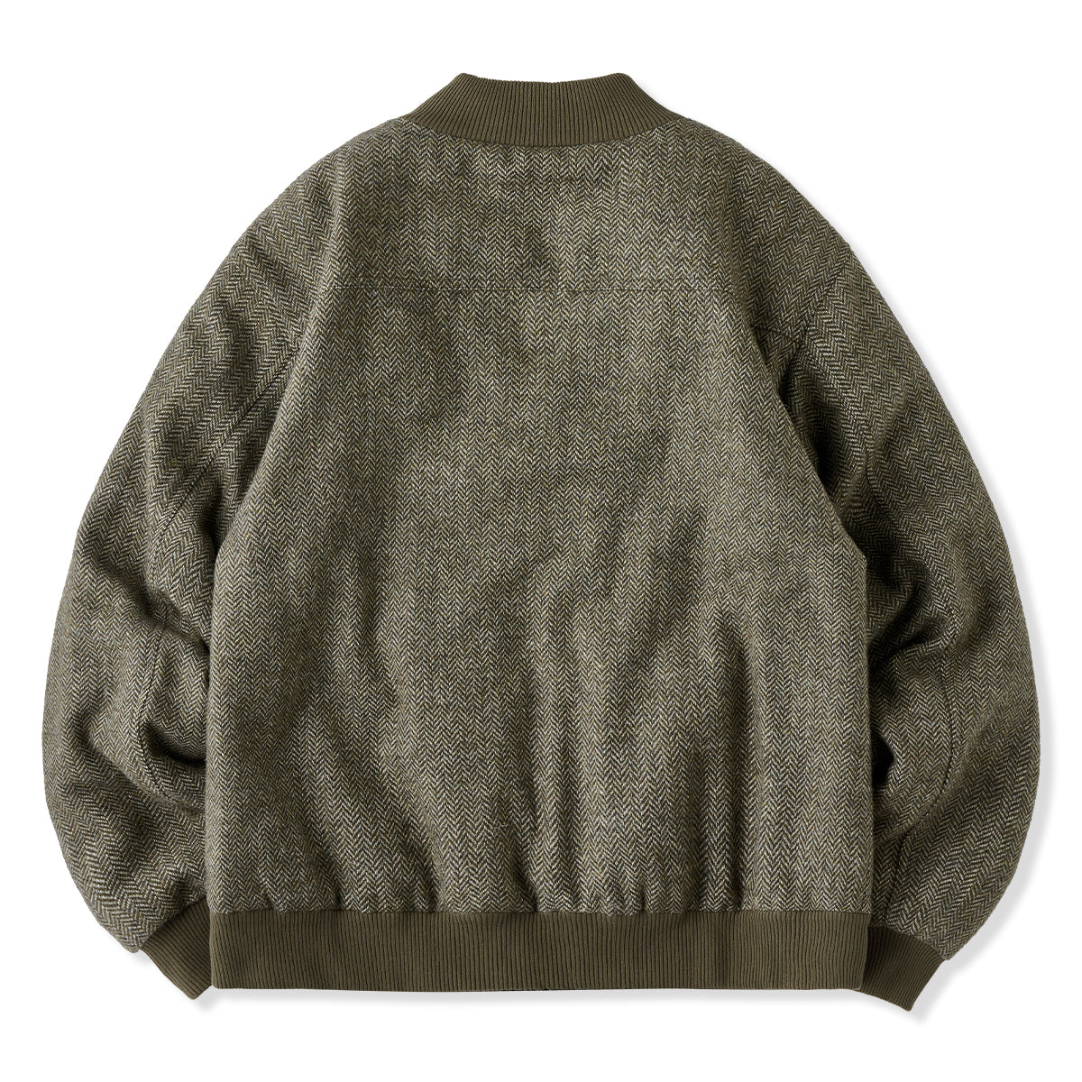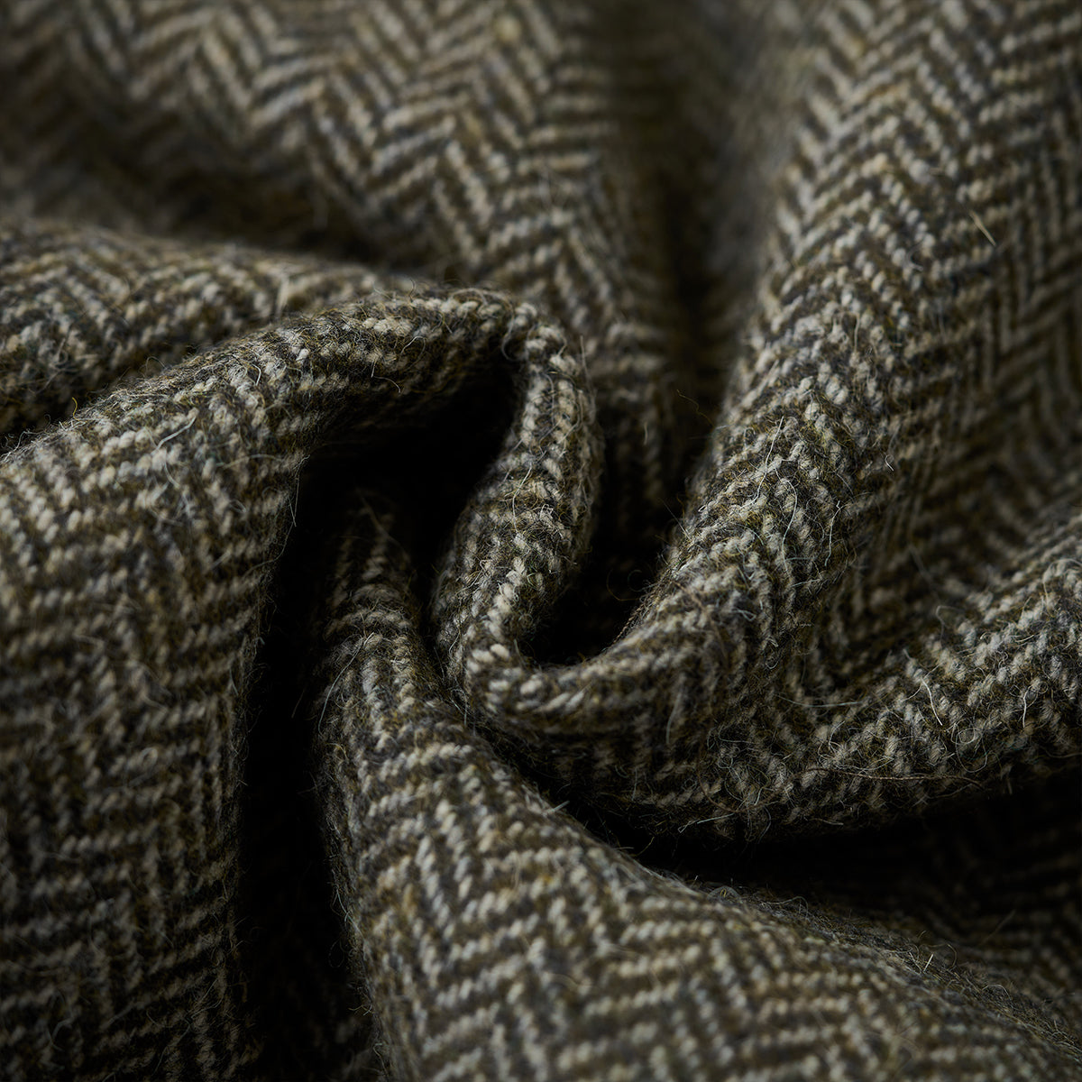 ヘリンボーンツイルは細かいV字のパターンが特徴で、クラシックで上品な印象を与えます。防寒性を高めるための中綿が使用されており、冬季の着用に適しています。