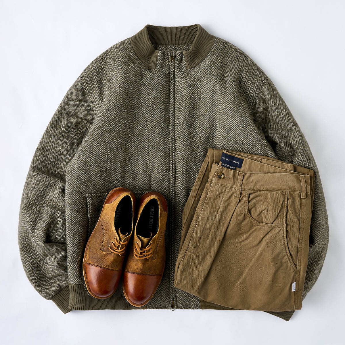 デニムやチノパンと合わせてカジュアルに着用できます。タートルネックやスウェットと合わせれば、よりリラックスした冬のコーディネートになります。