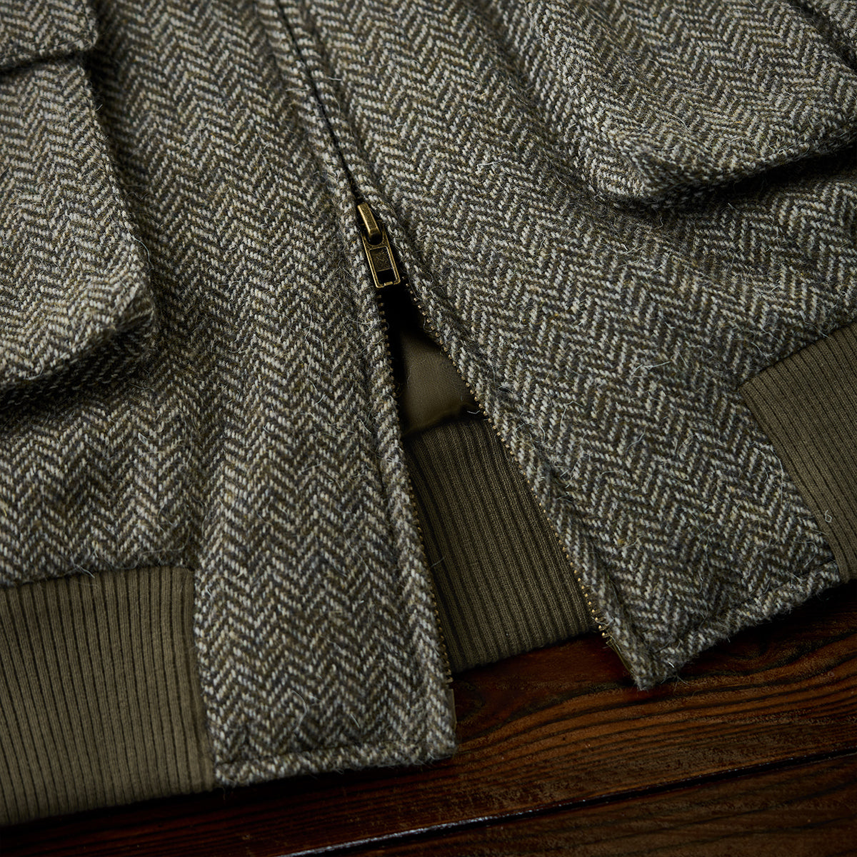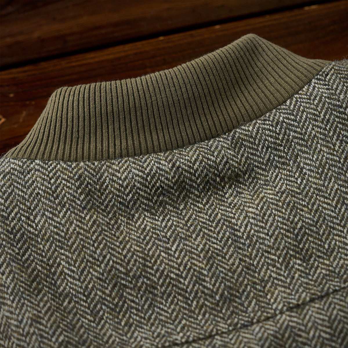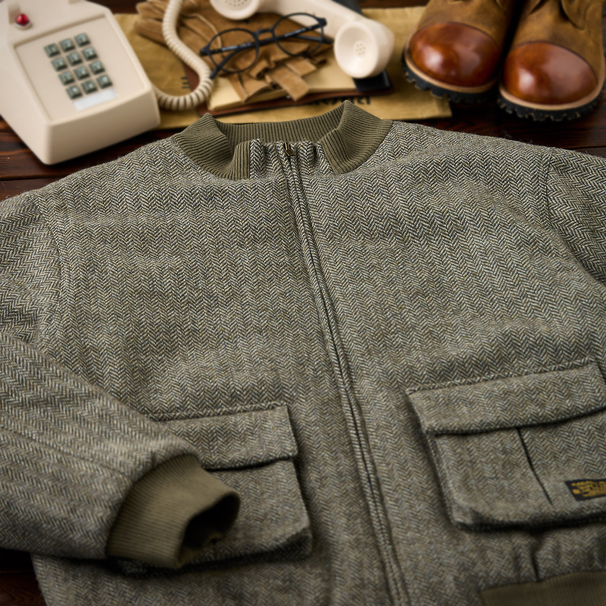 【予約】ウール混 ヘリンボーンツイードスタンドカラージャケット