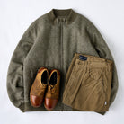 フロントファスナーデザインで、開閉が容易で、実用性とデザイン性を兼ね備えています。襟・袖口・裾のリブ部分は伸縮性があり、体にフィットして風の侵入を防ぎます。下部に配置されたポケットは収納力が高く、実用性を重視しています。カーキグリーン系の落ち着いたトーンで、どんなスタイルにも合わせやすいです。