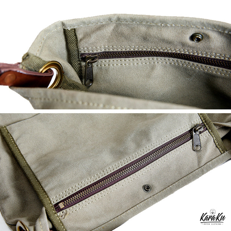 丈夫なキャンバス素材、程よい収容力で、どこかビンテージ感を醸し出している。「日頃からガシガシ使い倒したい。」そんな気持ちが湧き出てきます。内側には余計な仕切りなどがなく、ファスナーポケットは1つ付き、ipadや傘、ペンやノート、小物や貴重品をが効率的に収納できる。長さの調整ができるストラップは、高品質な植物タンニン鞣しの牛革を使用し、肩や腕への負担が少ない、使い込むことにより味のでる素材同士を組み合わせている。
