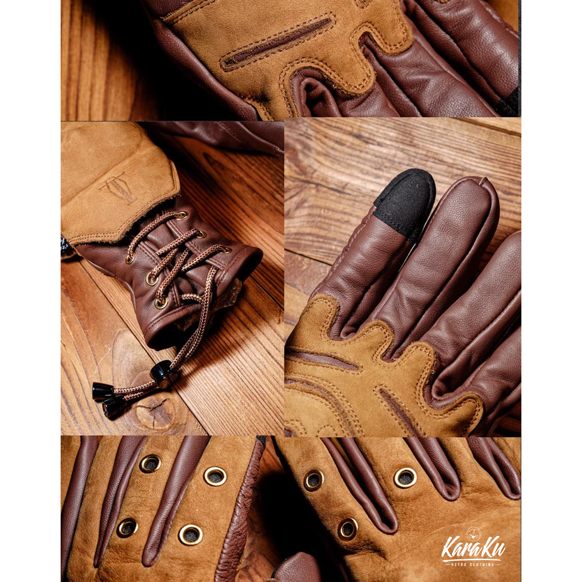 ヒモ付き 異素材コンビスマホ対応プロテクター付きオートバイグローブ