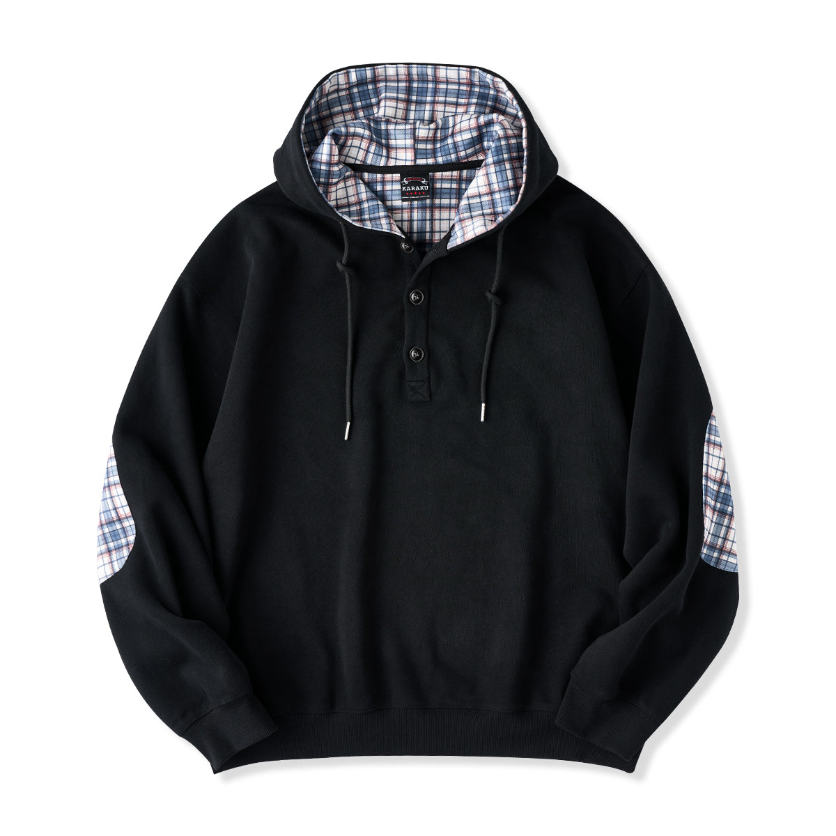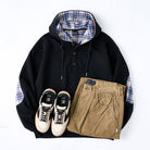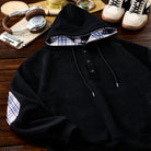 肘チェック柄パッチ 裏チェック柄ハーフボタンパーカー