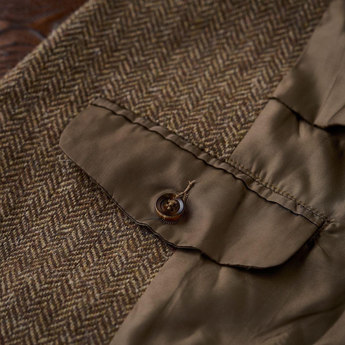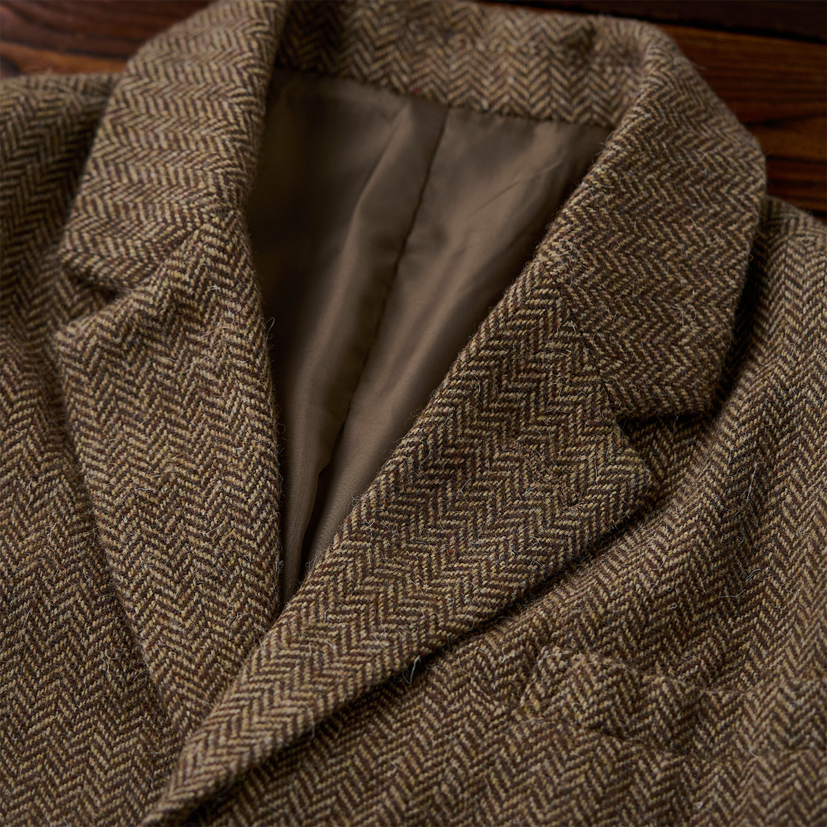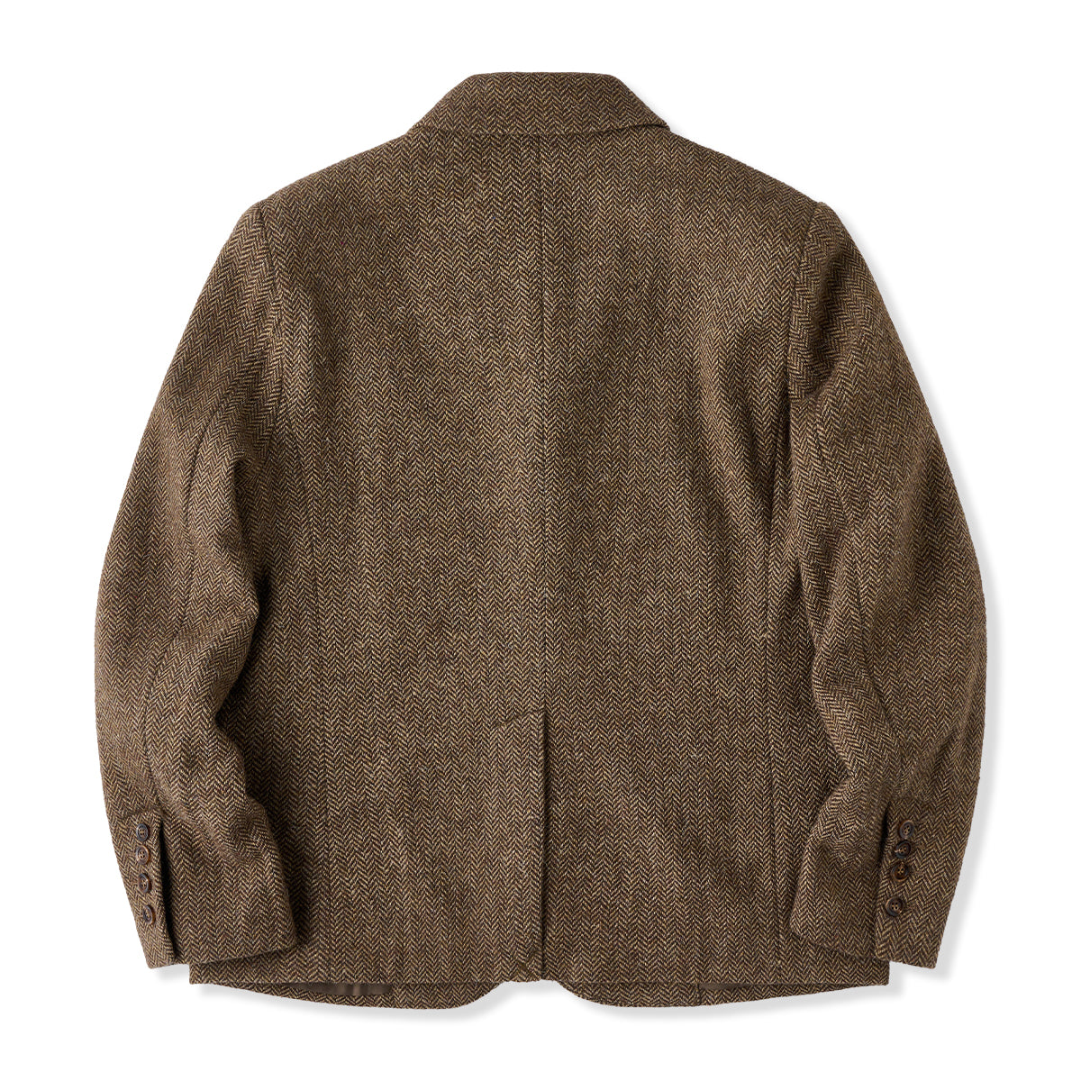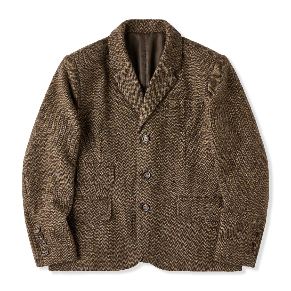 ウール混紡 ヘリンボーン織りツイードテーラードジャケット