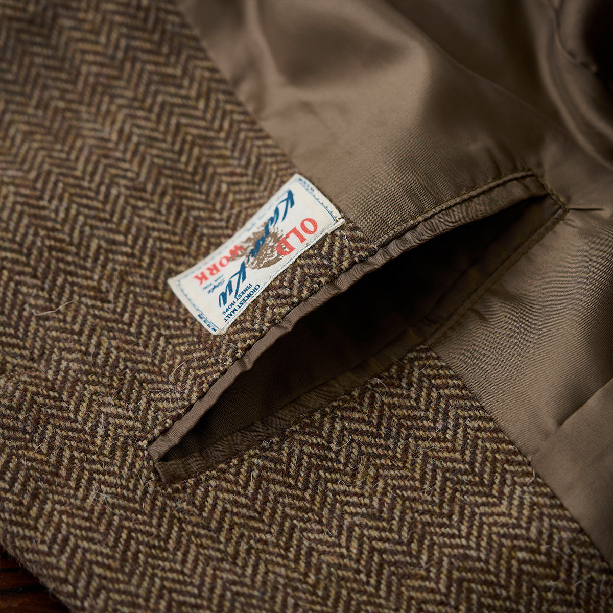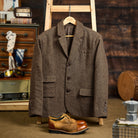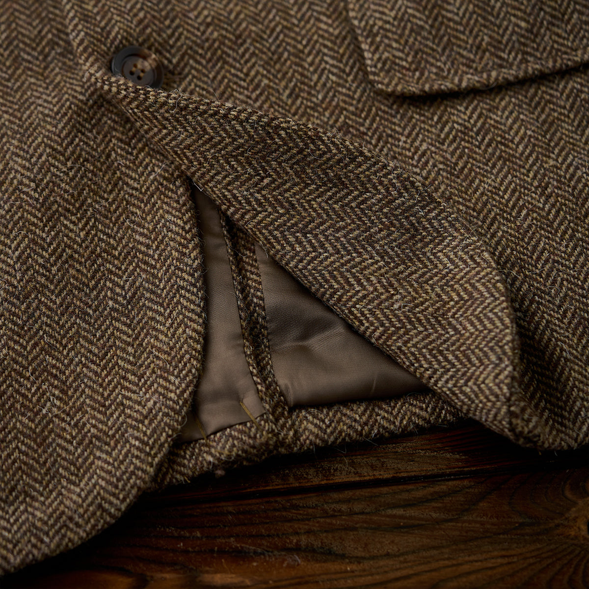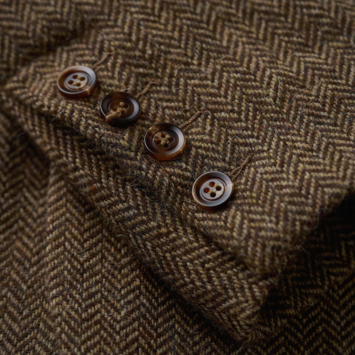ウール混紡 ヘリンボーン織りツイードテーラードジャケット