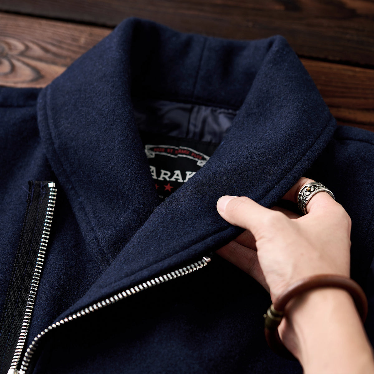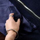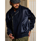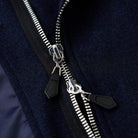 ショールカラー風の襟は、通常のジャケットやアウターにはない特徴的な形状。柔らかく丸みを帯びたラインが、フォーマル感とリラックス感を絶妙にミックス。ダブルジップ仕様で、上下どちらからでも開閉可能なデザインは、着こなしの自由度を高め、着脱も容易。