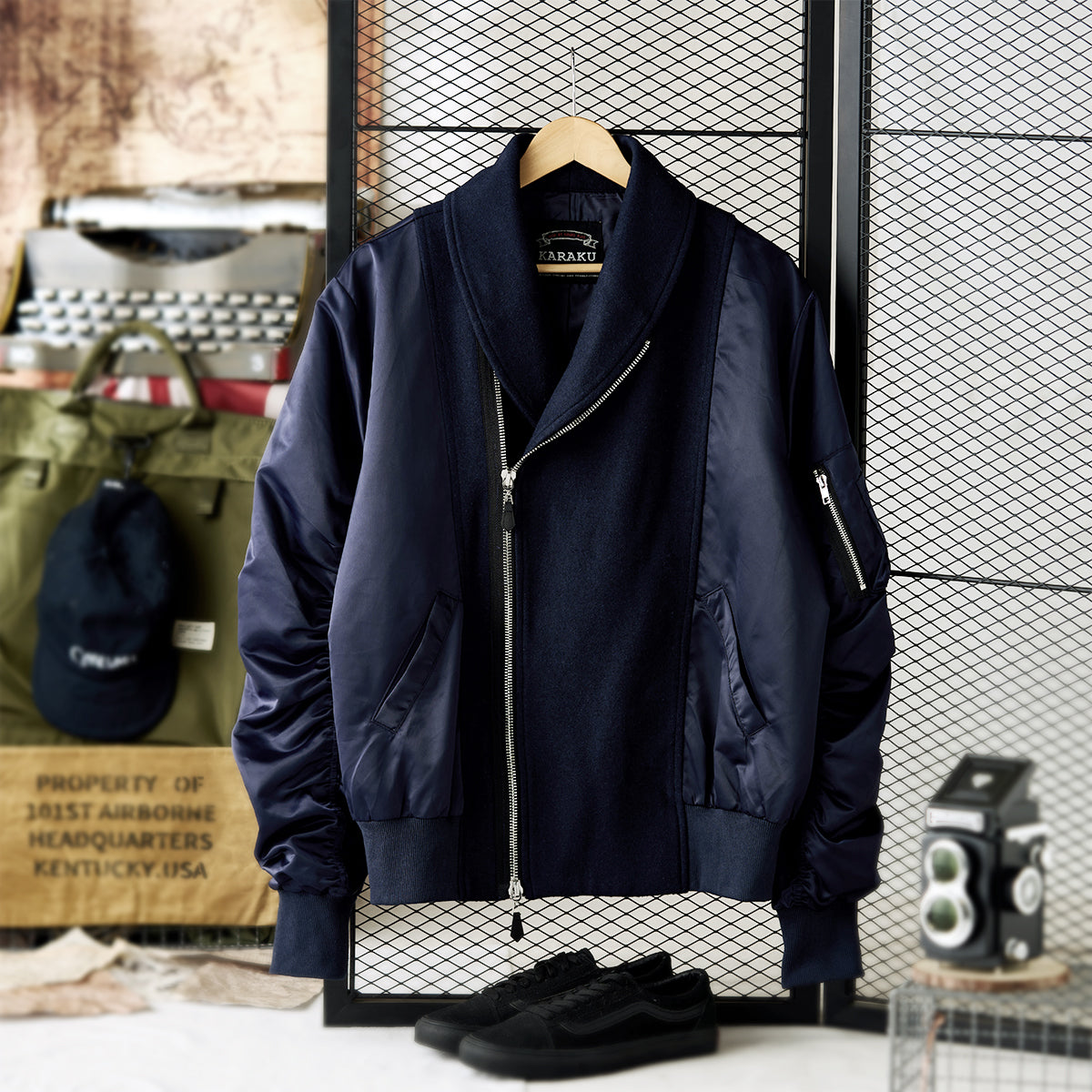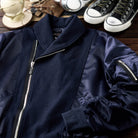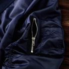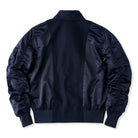 袖部分にギャザーが施されて、立体感と動きやすさを確保。左腕のMA-1ポケットはミリタリーテイストを強調する要素でありながら、日常的に小物を収納できる実用的なディテール。