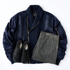 ツイードⅹナイロンコンビ 再構築ショールカラーフライトジャケット