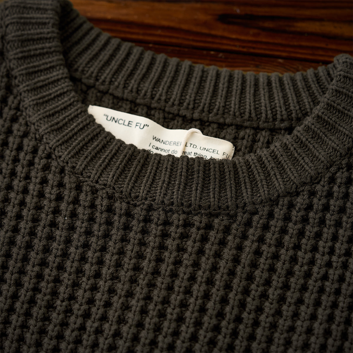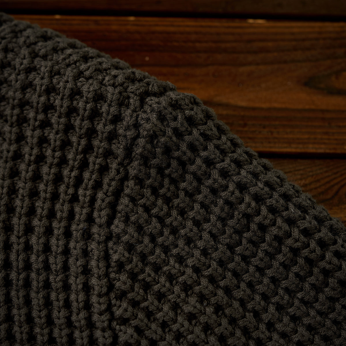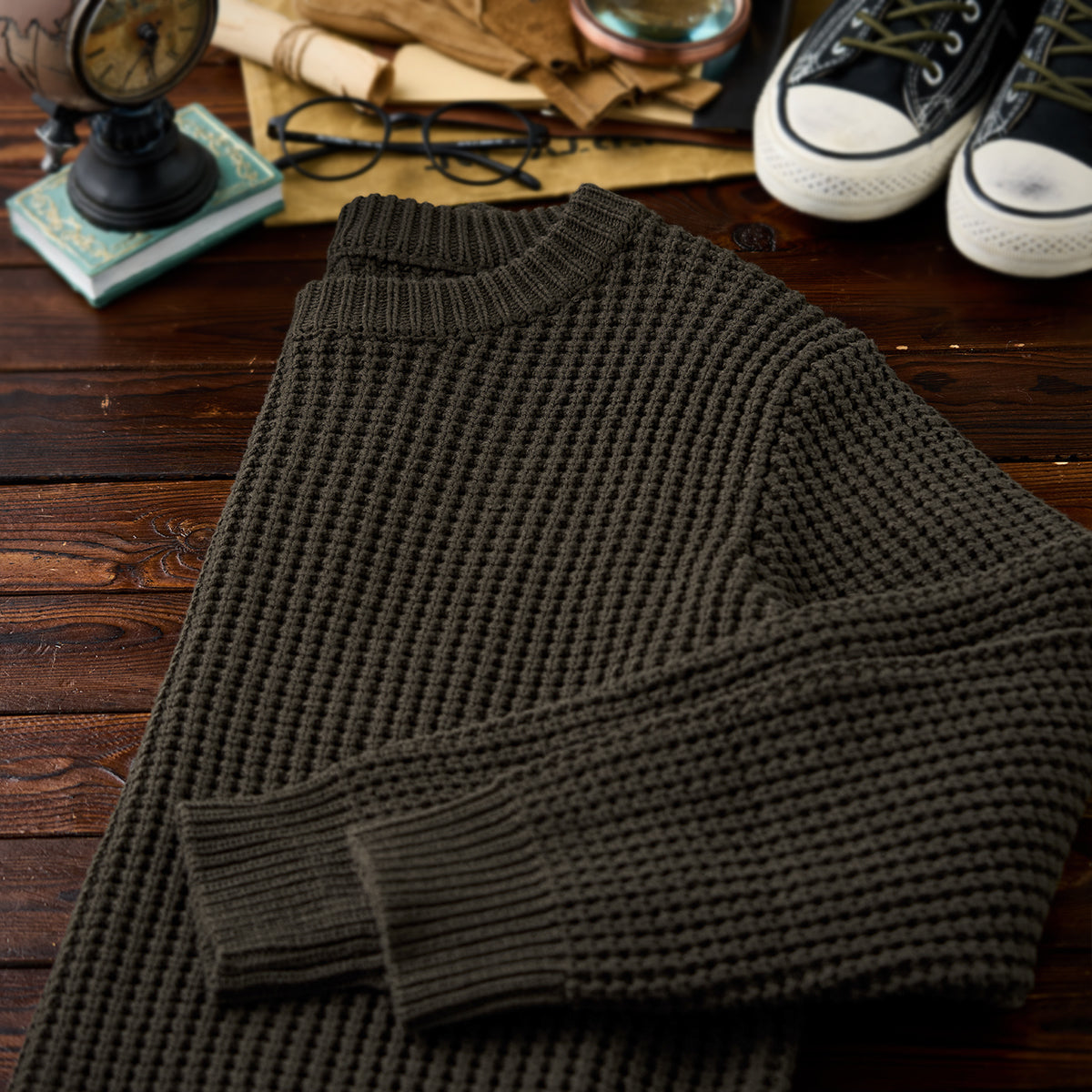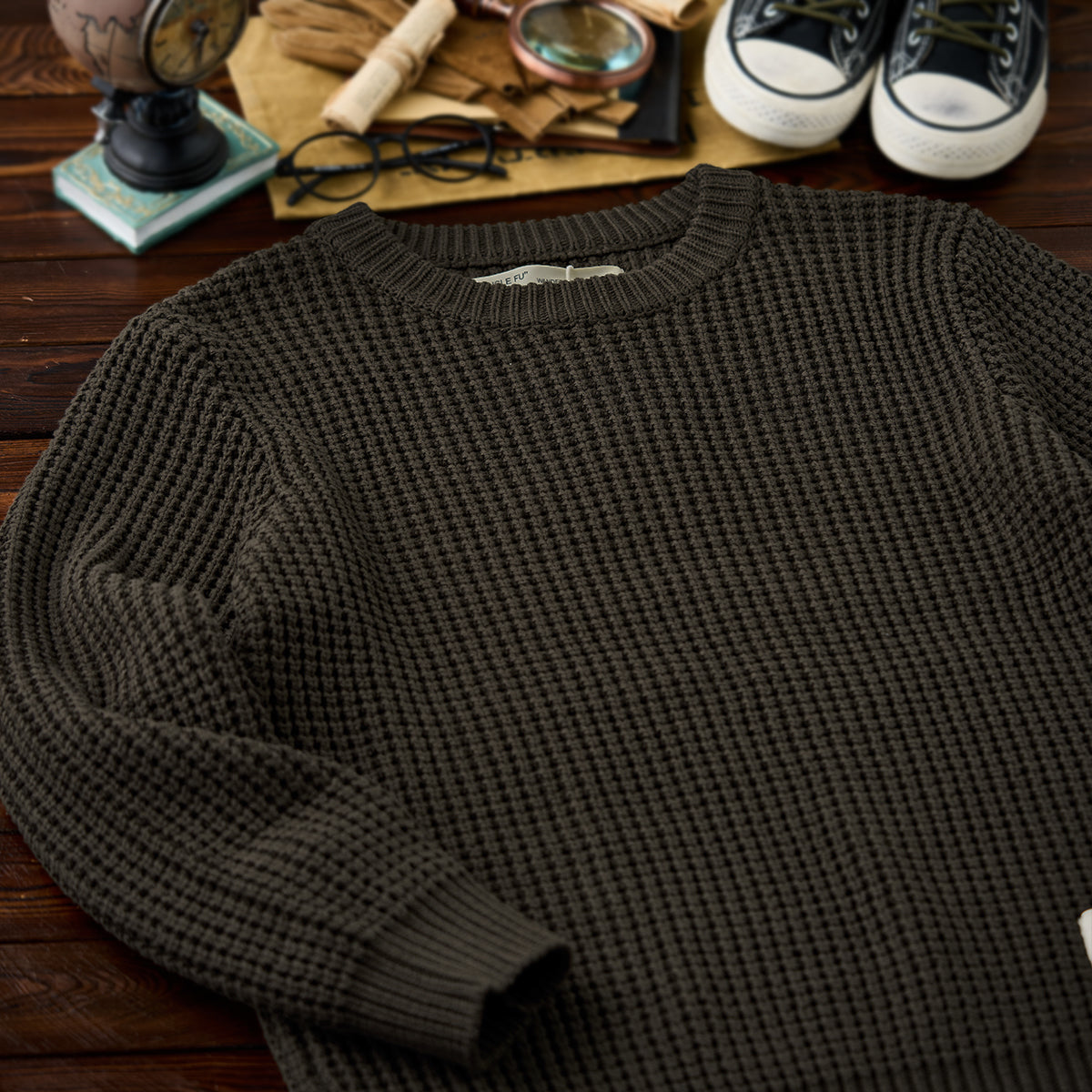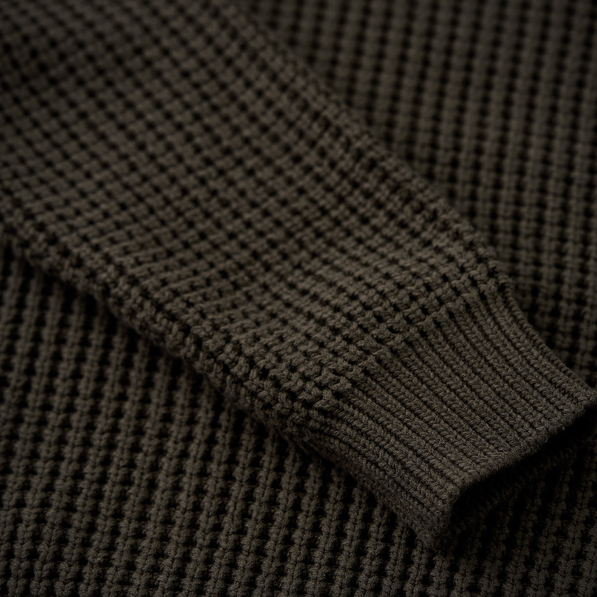 注目必至のスウェット風で、重厚感と凹凸のある立体感が魅力のワッフル編みニットです。