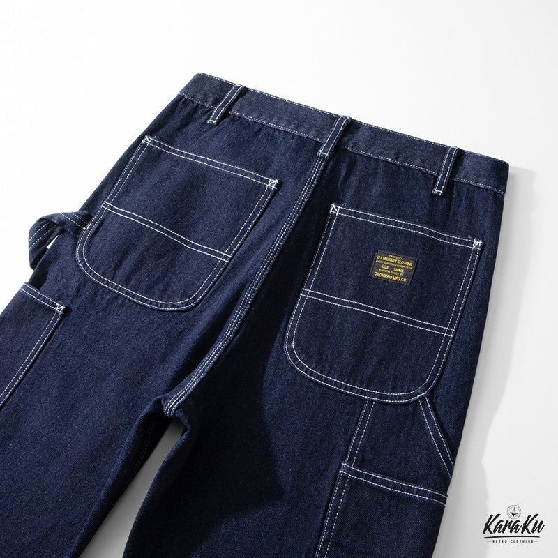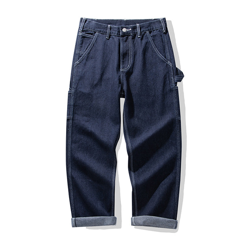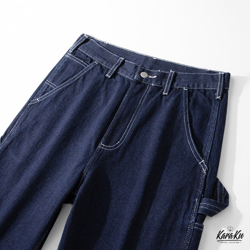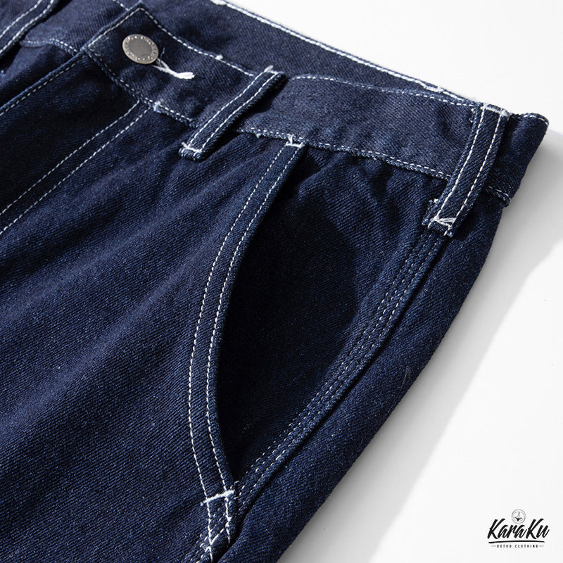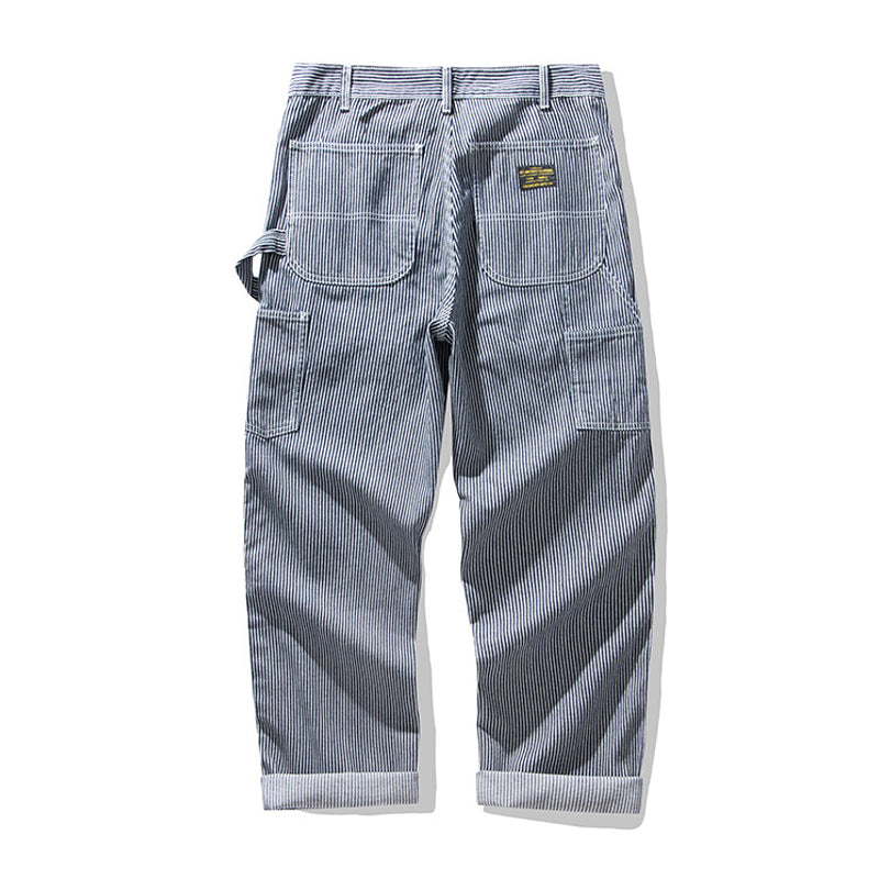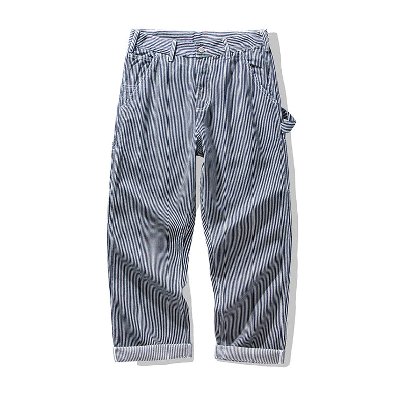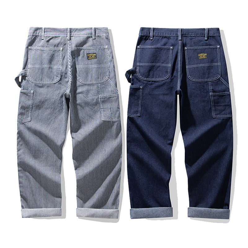 ストリート感とワークテイストの印象を与えながらおしゃれでいい味出しのワークパンツが登場!アウトドアや鉄道などの作業員向けのワークパンツで、素材は生デニムとストライプデニムの2種類があります。厚さは春、夏、秋、冬の着用に適しており、屋外での作業時の耐摩耗性が優れています。サイドに吊り下げツールベルトを備えたマルチポケットデザインがワークテイスト満載!ジッパーはYKKジッパーを採用し、細部にもこだわって、質感が満ちるアイテムです。パンツの全体は綺麗なラインとなっているストレートのシルエットを採用した。デニムの素材特徴により、穿き込むほどに色落ちして、自分らしく育てて、ジーンズのエイジングを楽しむことができます。