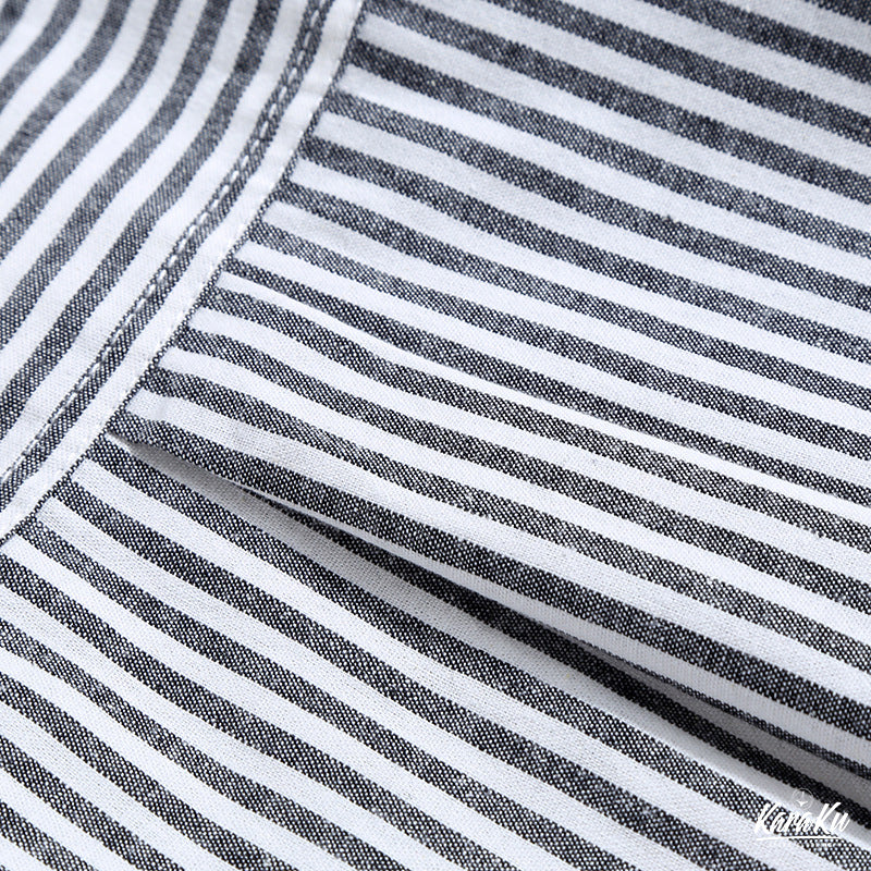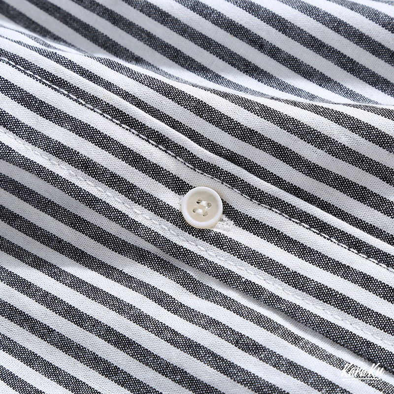 細番手のキレイ目なロンドンストライプ生地を使用。本体はコットン100%を使用、しなやかさと耐久性を両立させ、吸汗性と速乾性に優れ、季節を問わず快適に着用が可能なのが嬉しいポイント。