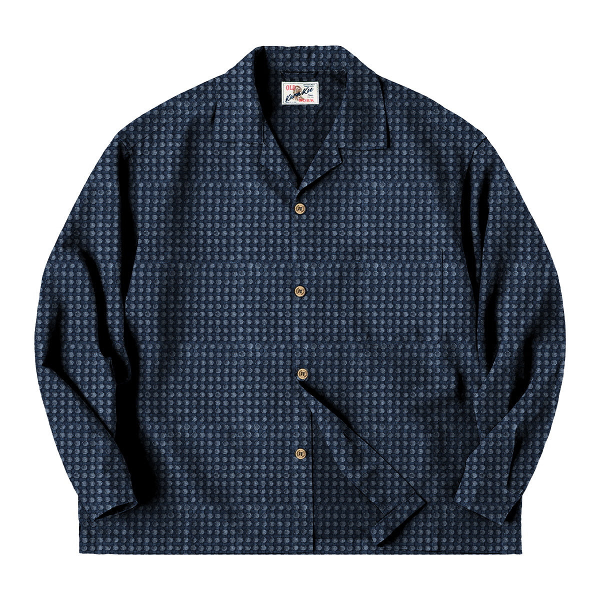 本アイテムのために設計されたオーダーメイド生地を使用し、量産品では表現できない奥行きと完成度を追求しました。縦糸・横糸それぞれの組織差を活かし、格子状の構造の中から点のような立体感を浮かび上がらせています。光の角度や動きによって陰影が変化し、無地に近い落ち着きと、確かな存在感を同時に備えています。リネン混紡素材ならではのドライな風合いと高い通気性に加え、ジャカード織り特有のハリと奥行きが、軽やかさの中に上質感をプラス。肌離れがよく、盛夏でも快適な着用感を保ちます。襟元は程よく開きのあるオープンカラー仕様。リラックス感がありながらも品よくまとまり、Tシャツの上から羽織っても、一枚で着ても様になるバランスに仕上げています。