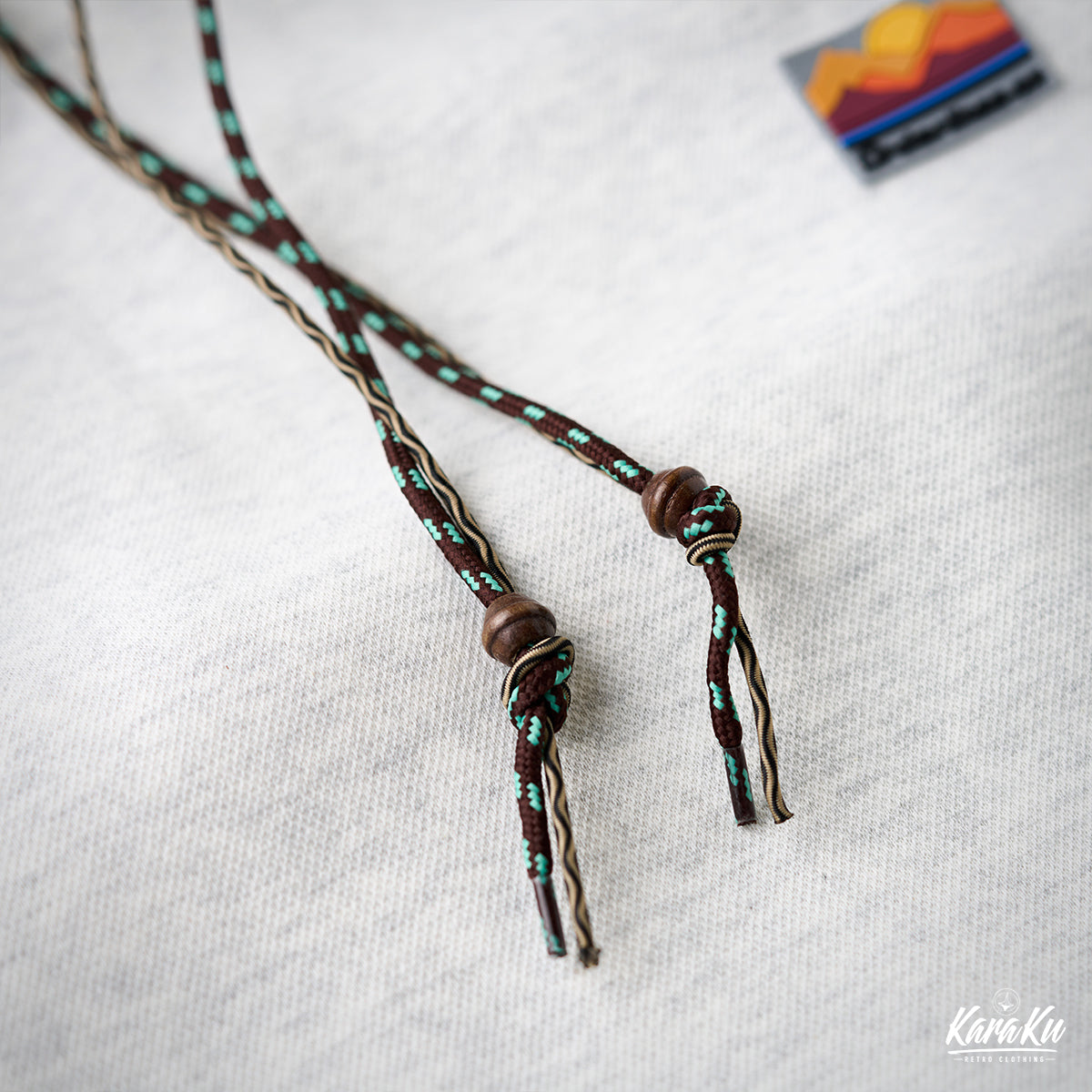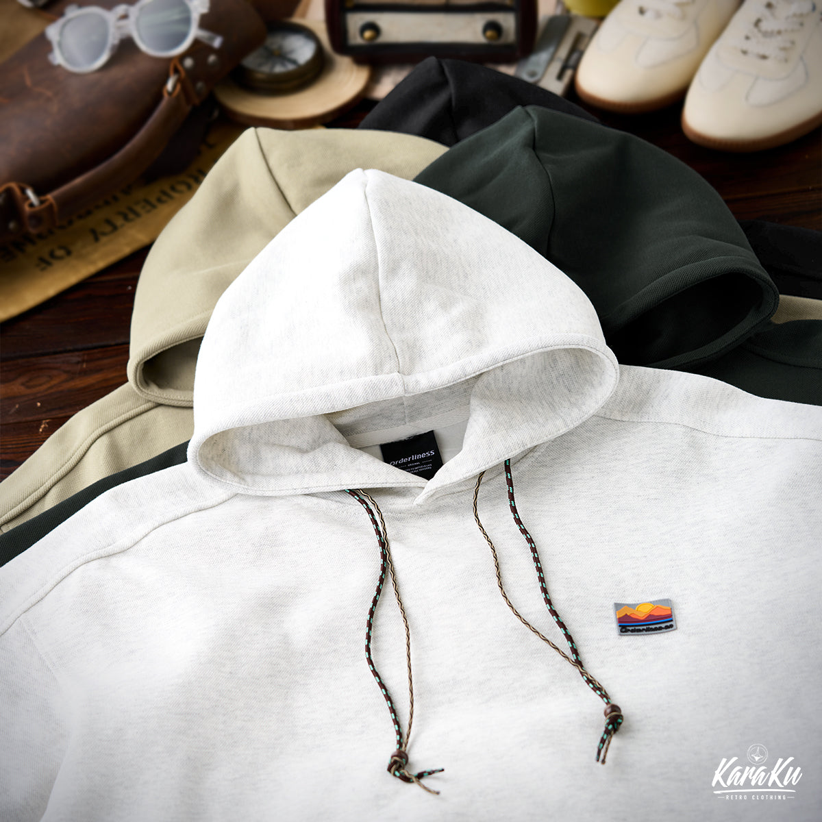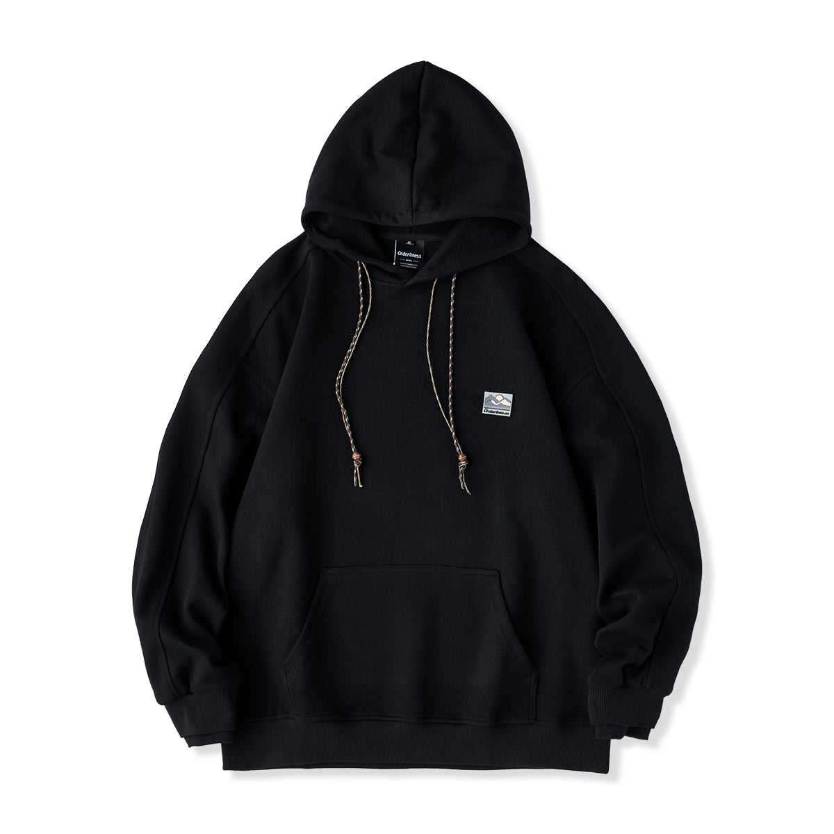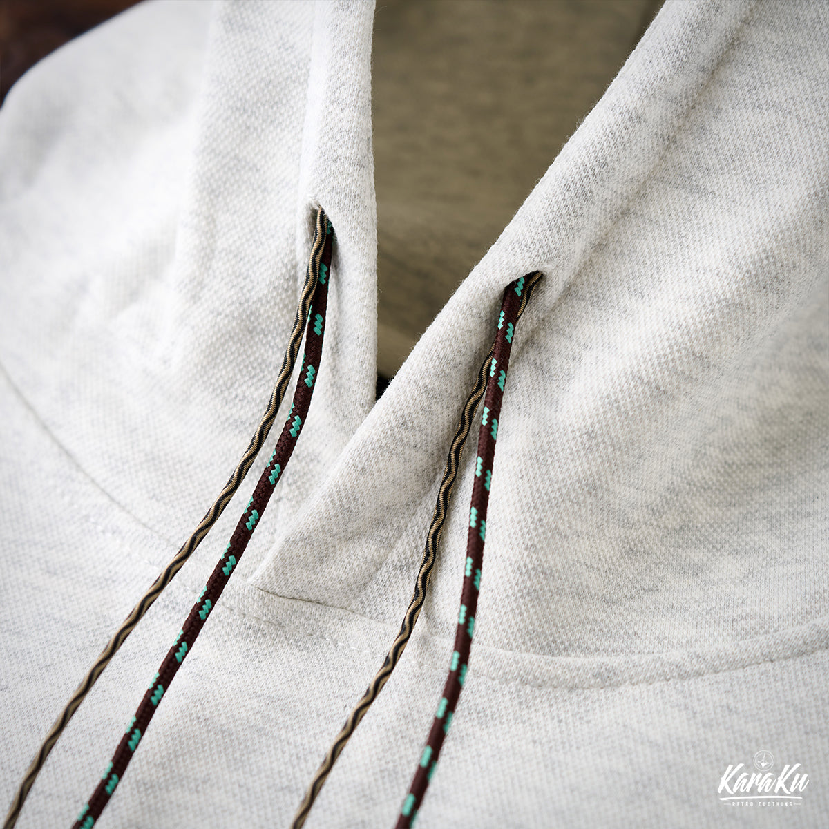 フードのドローコードは通常のものより凝ったデザイン(編み込みやカラフルな配色)になって、細部でアクセントを加えている。