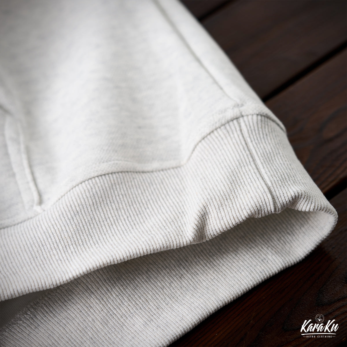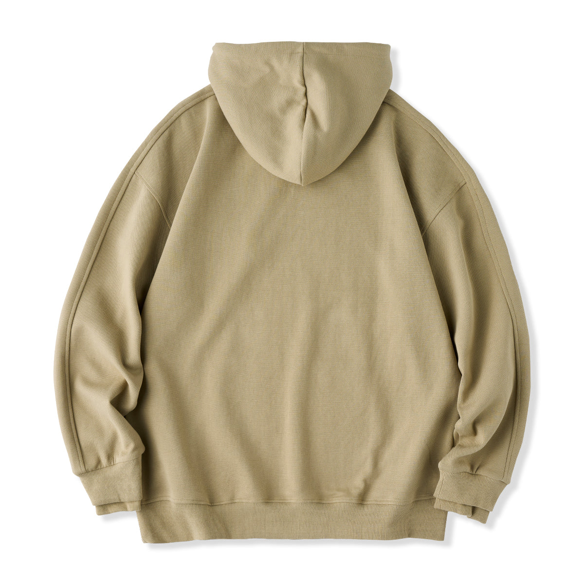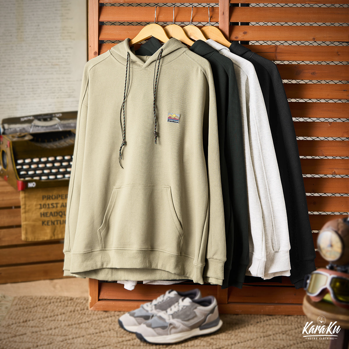 フロントポケットはカンガルーポケットで、機能性を重視した。縫製もしっかりしている印象で、耐久性が考慮されている。
