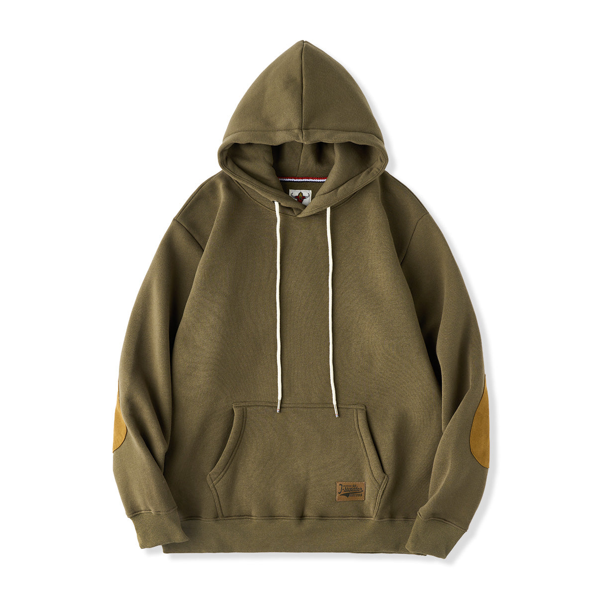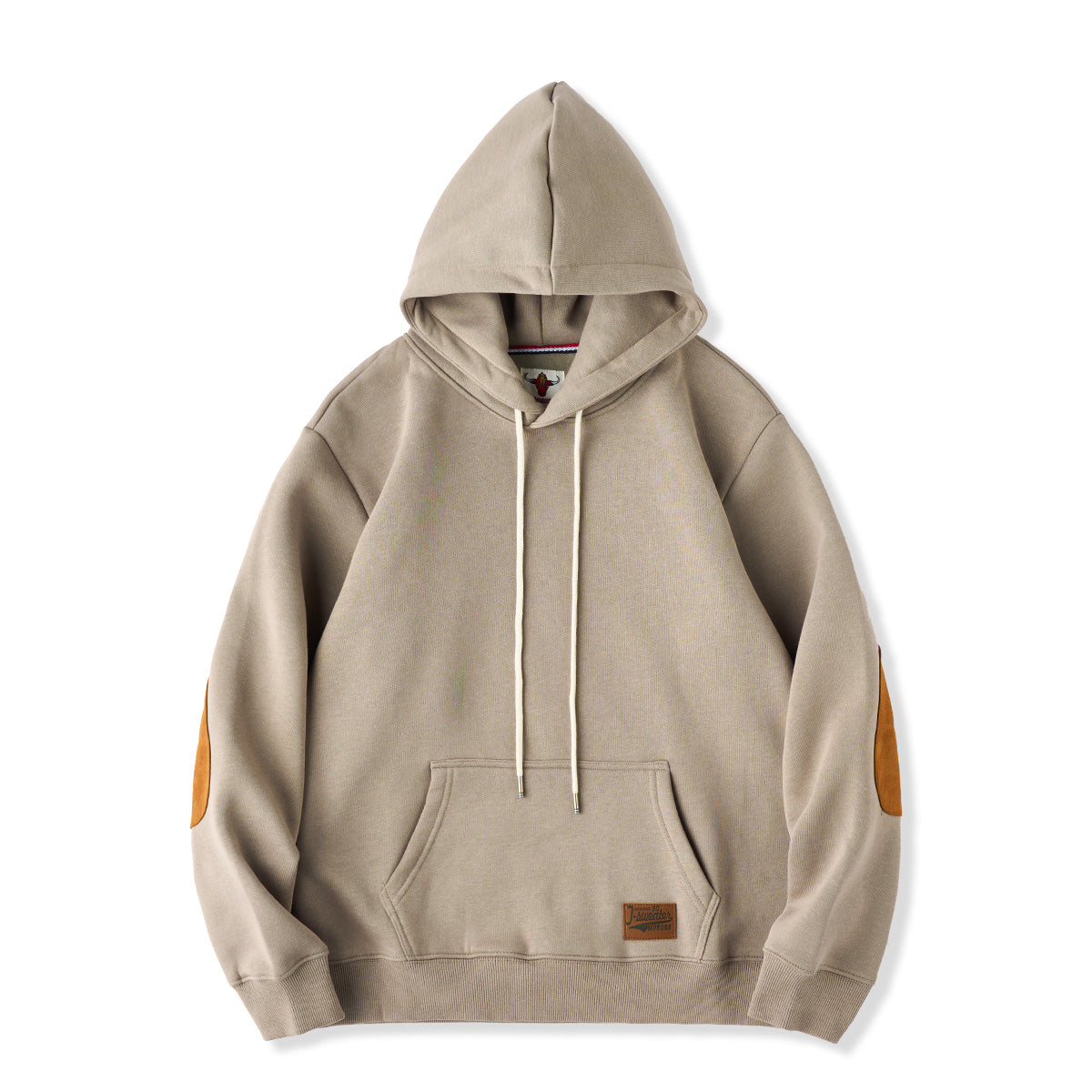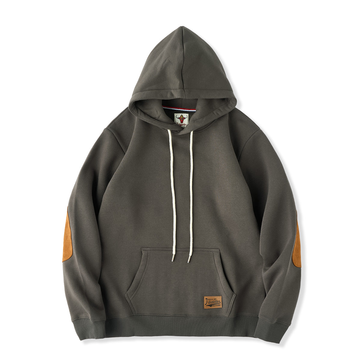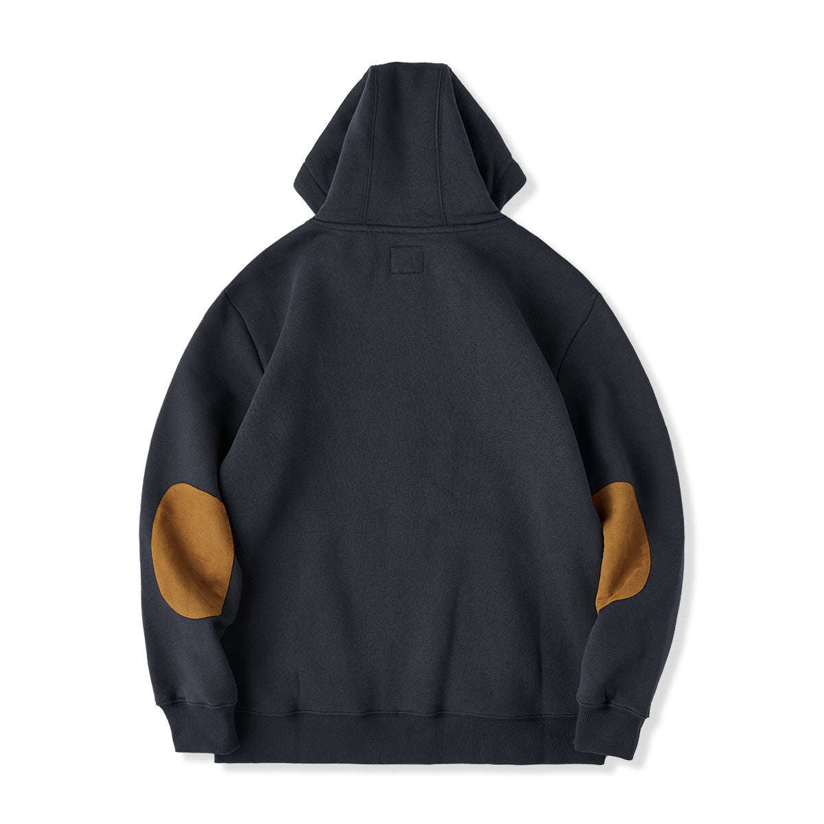 裏起毛 肘配色パッチ入りプルオーバーパーカー