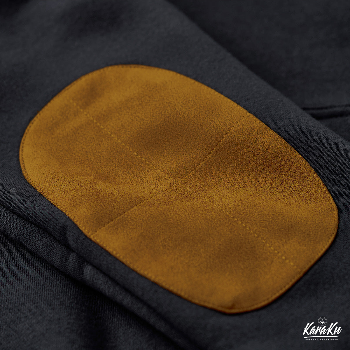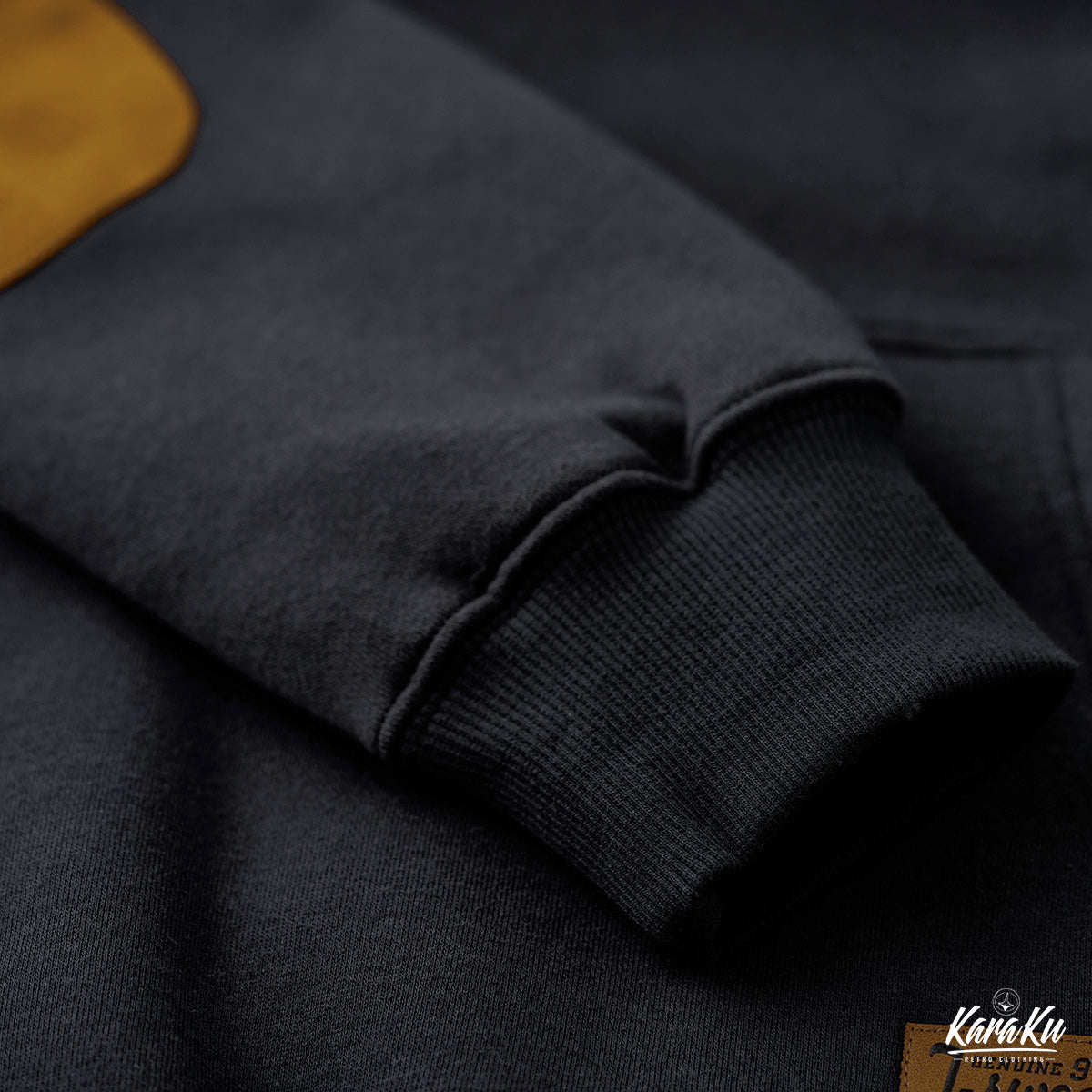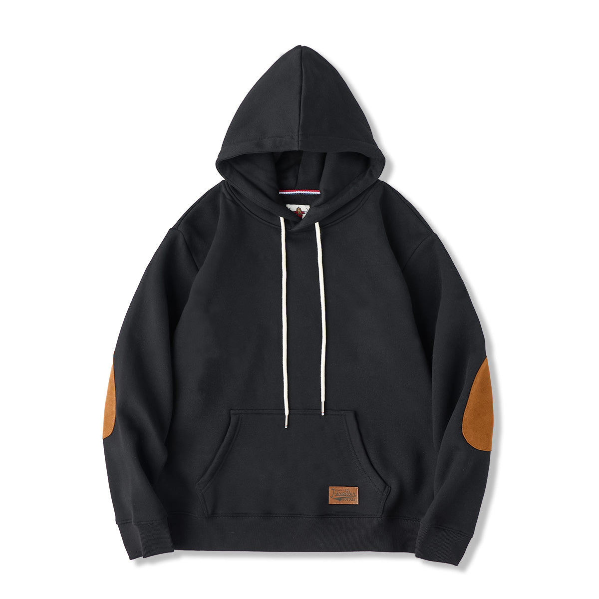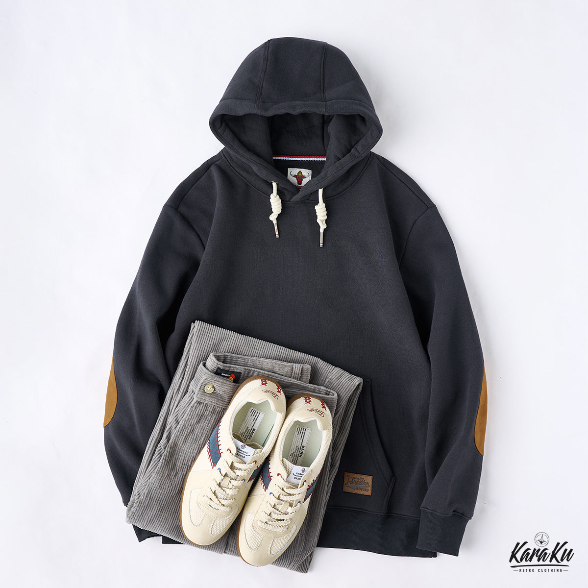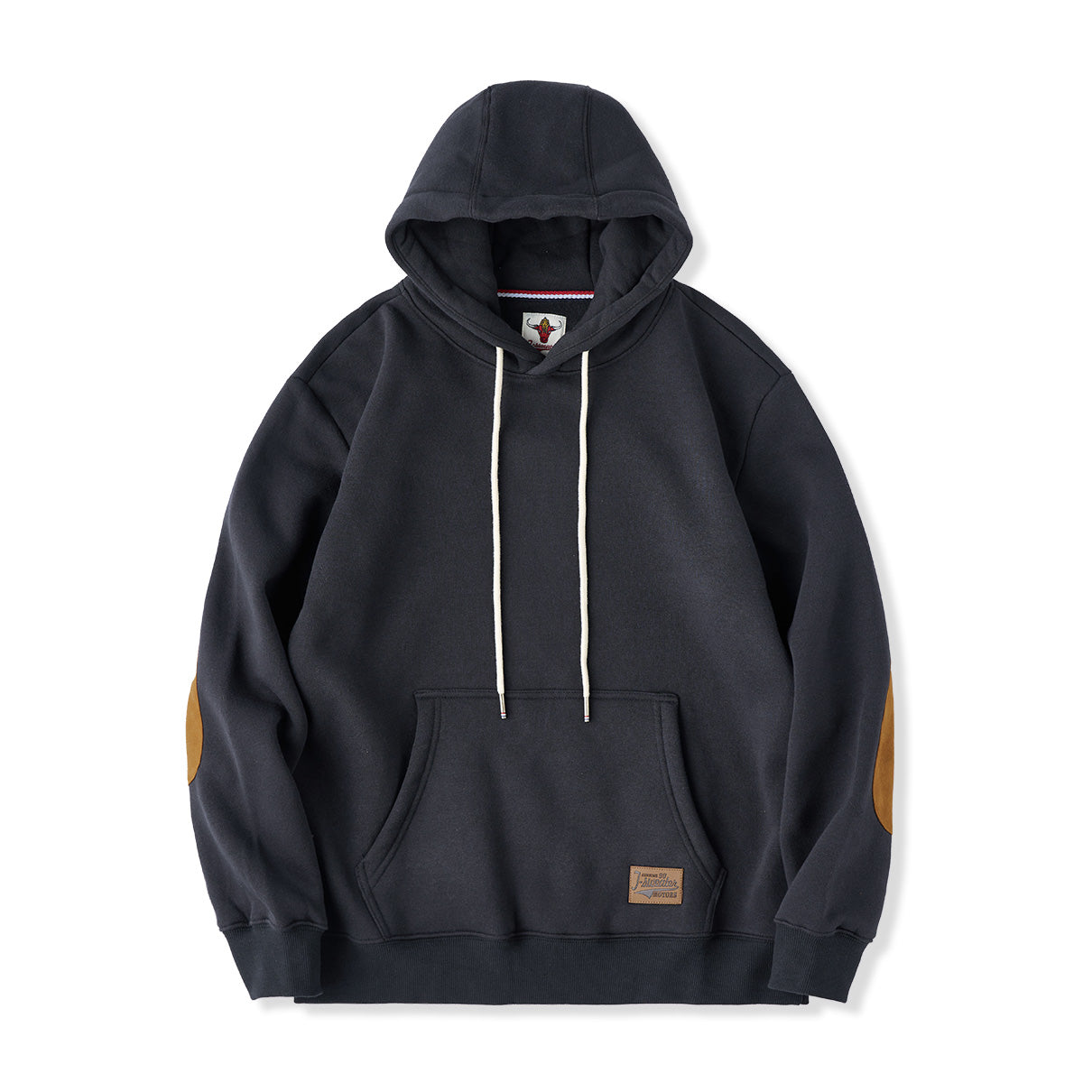 裏起毛 肘配色パッチ入りプルオーバーパーカー