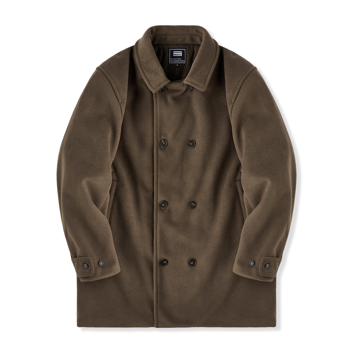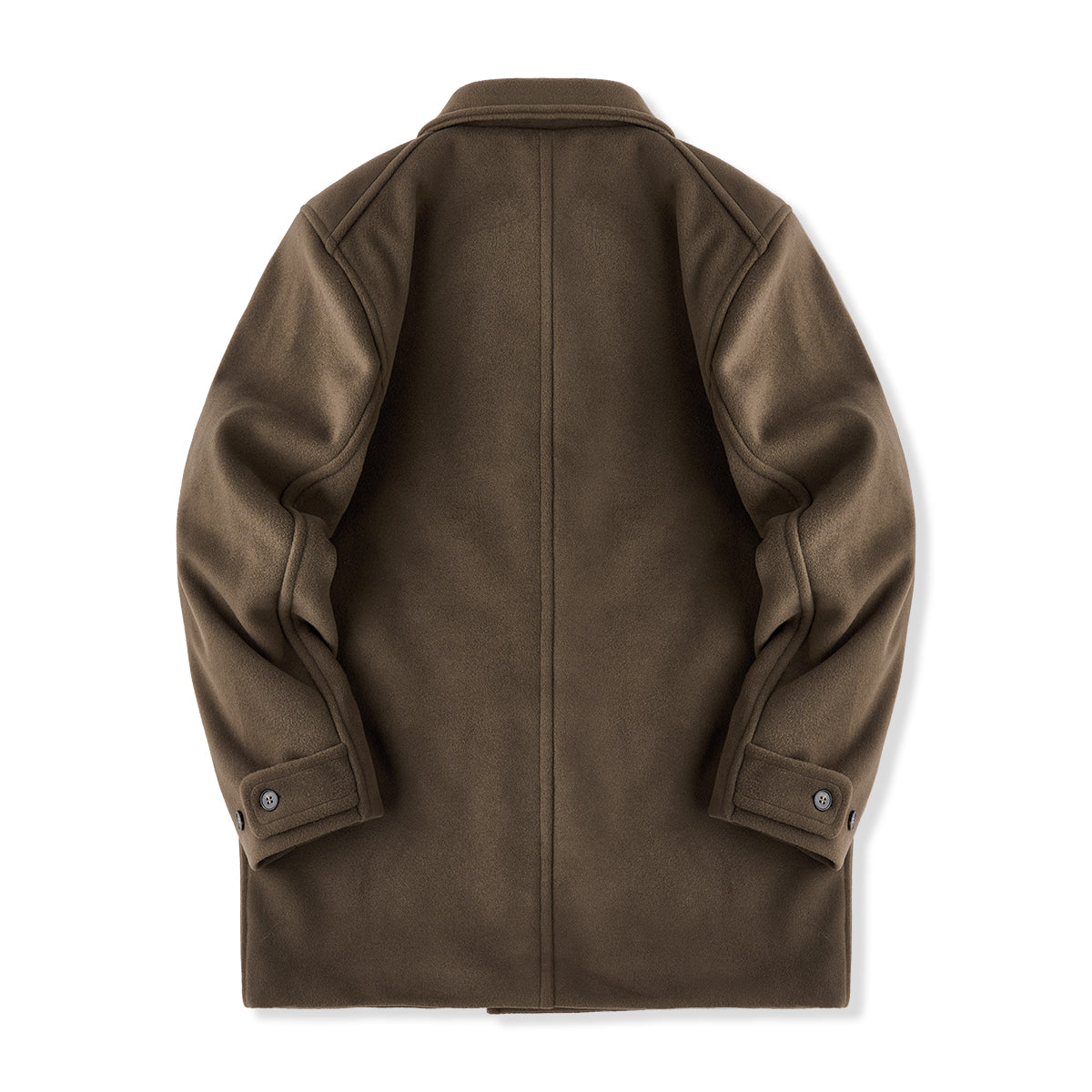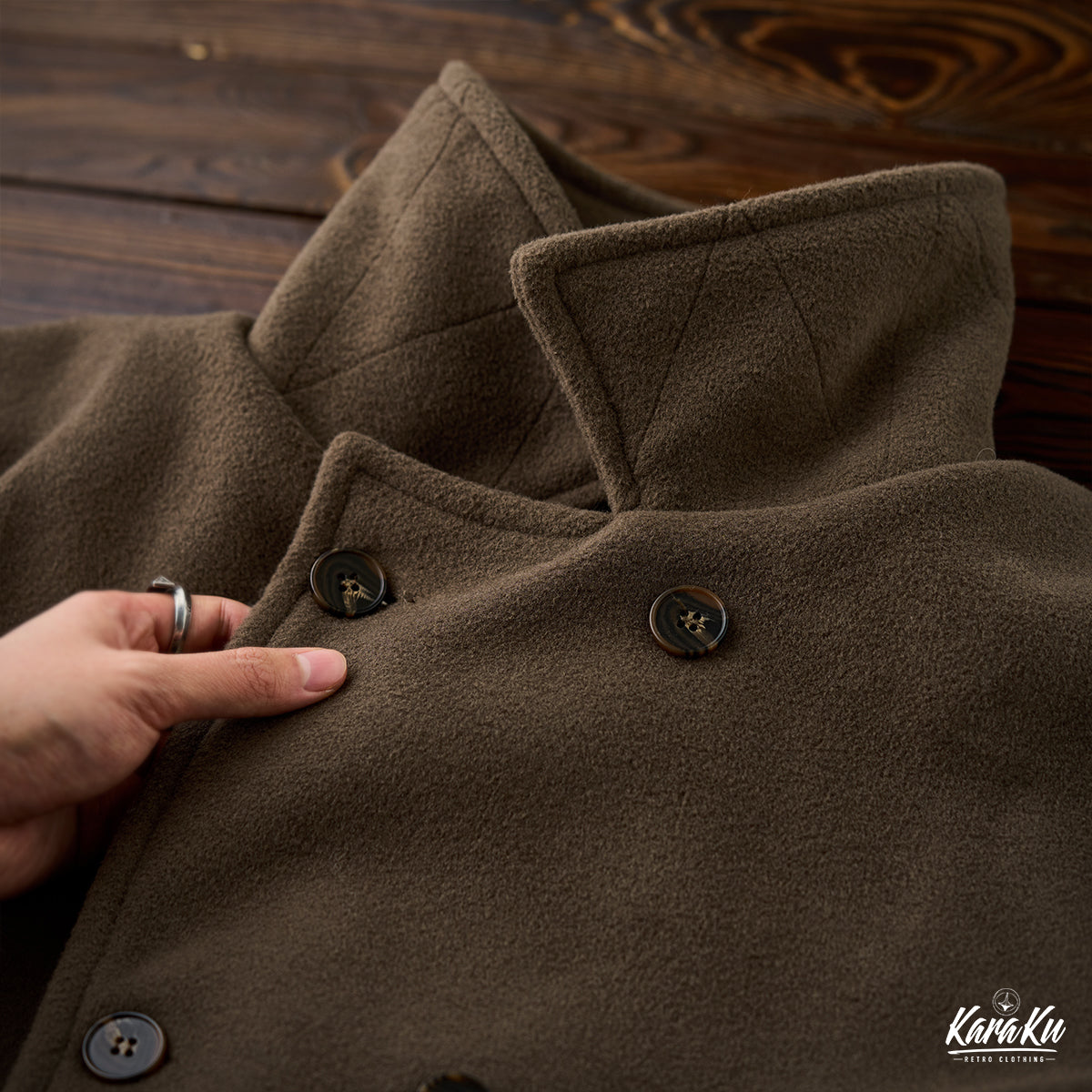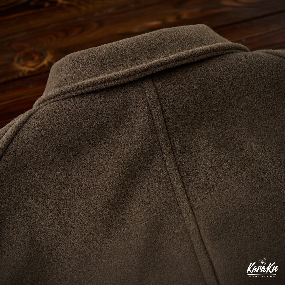 ダブルブレストのデザインは、ピーコートの伝統的な特徴であり、上品でフォーマルな印象を与える。