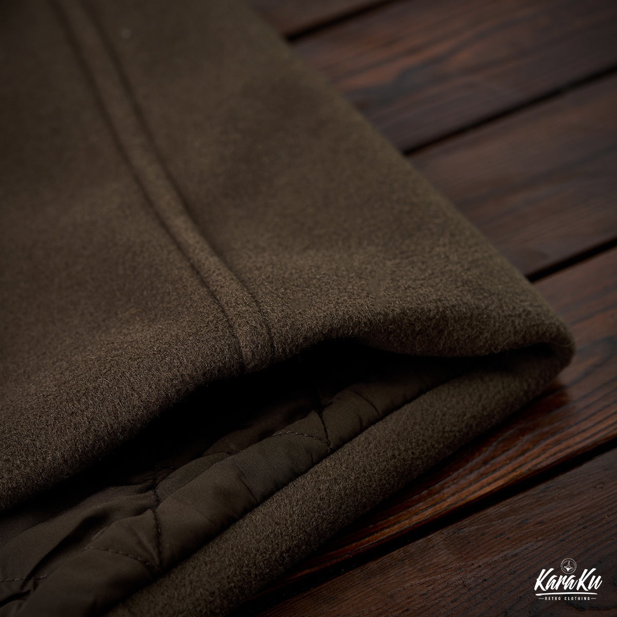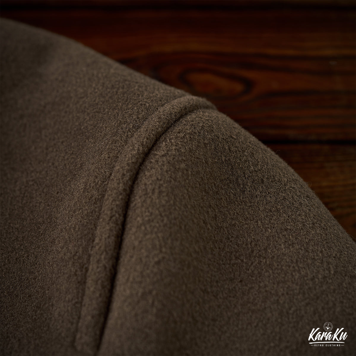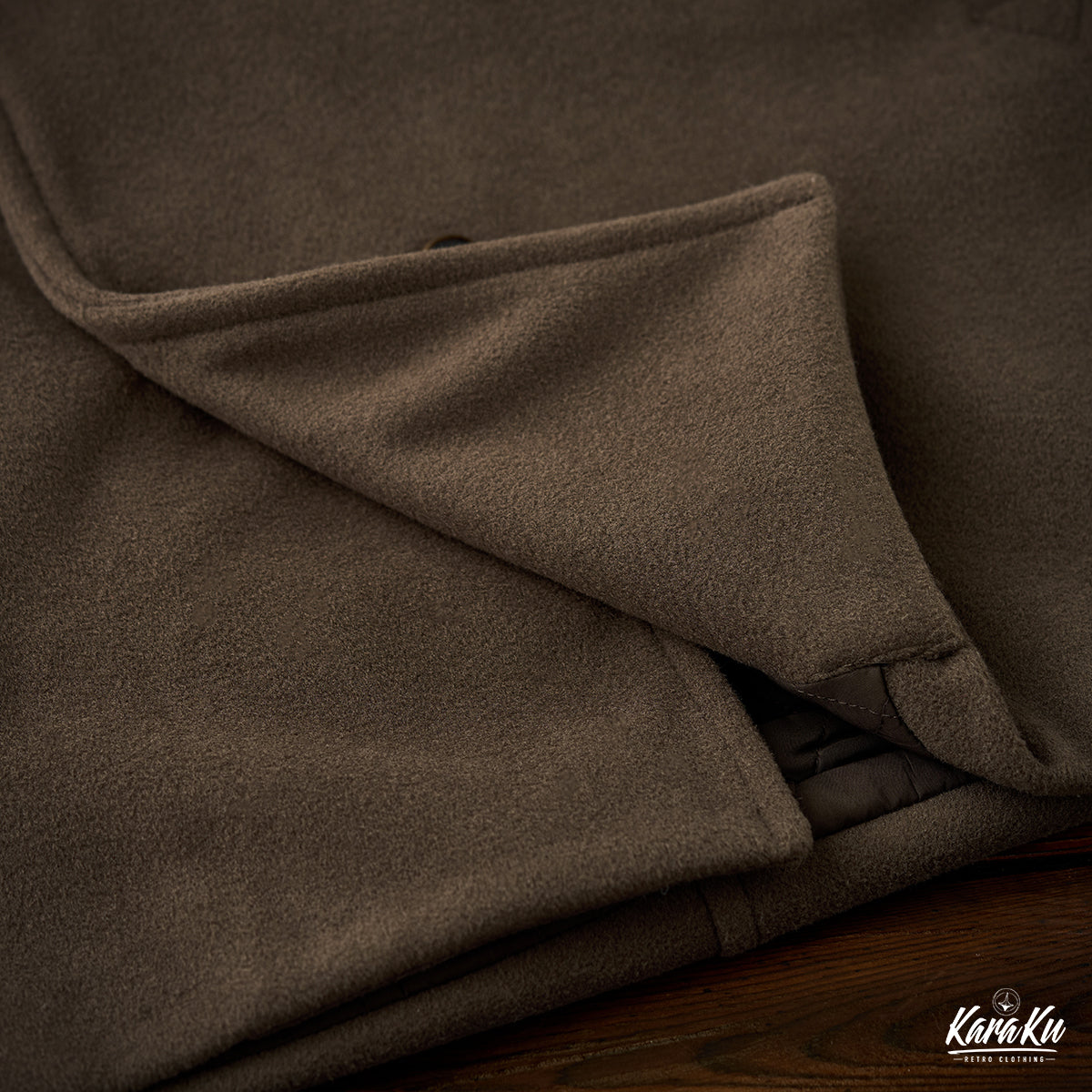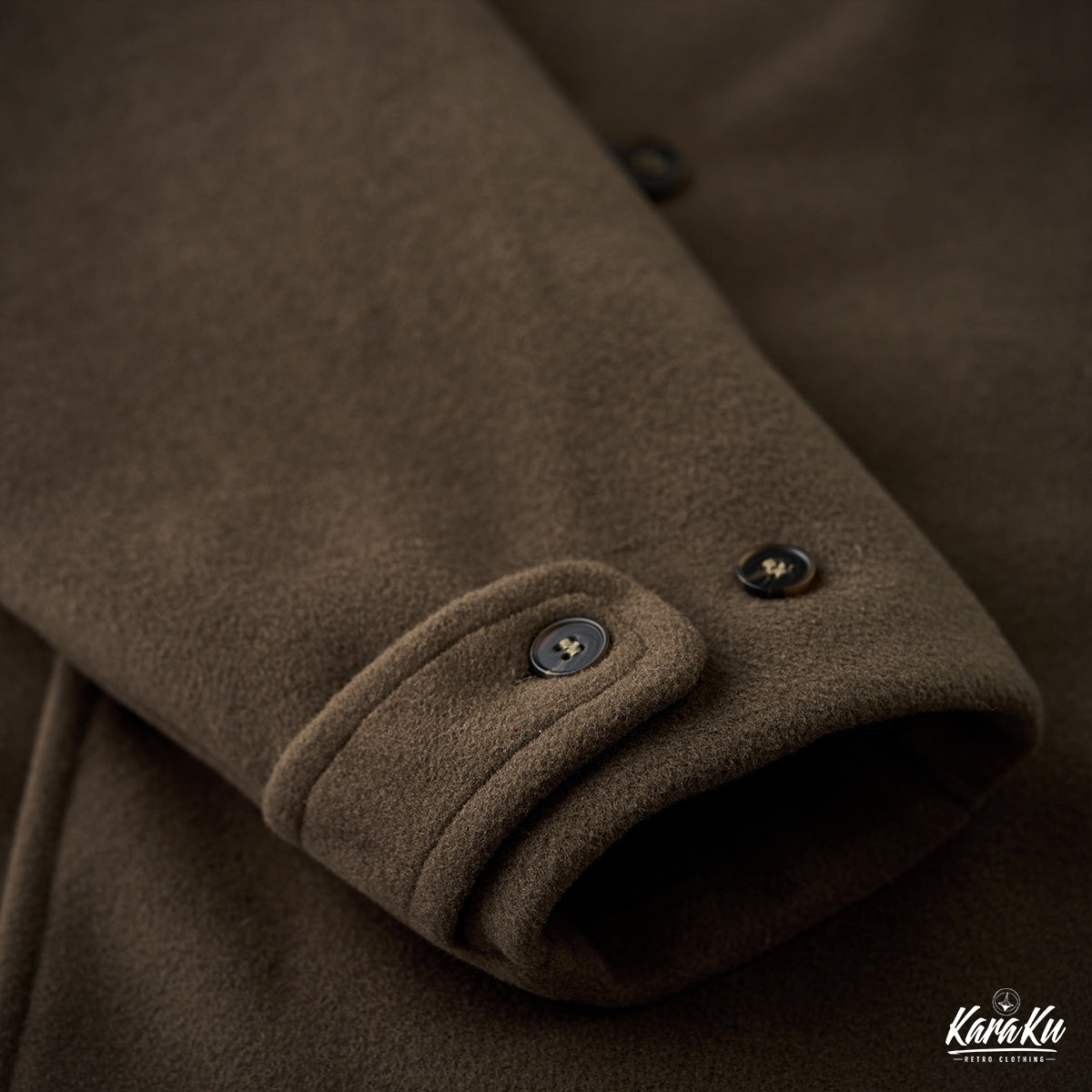 ダブルブレストのデザインは、ピーコートの伝統的な特徴であり、上品でフォーマルな印象を与える。