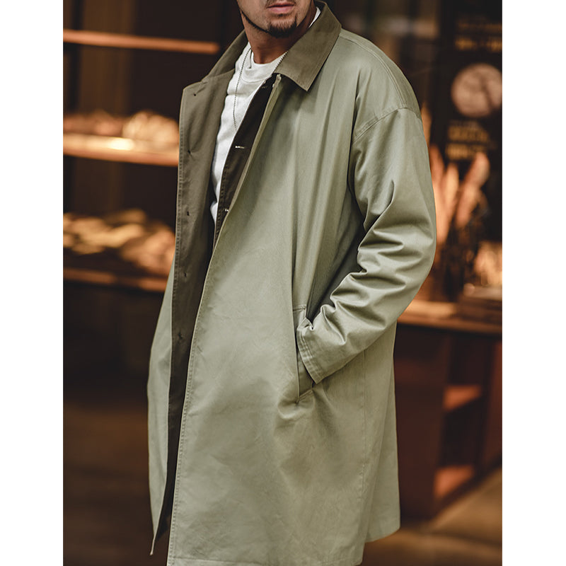 Balmacaan Coat はずっと世界中のファッションを使用されており、今回の新商品も定番の一つ。
