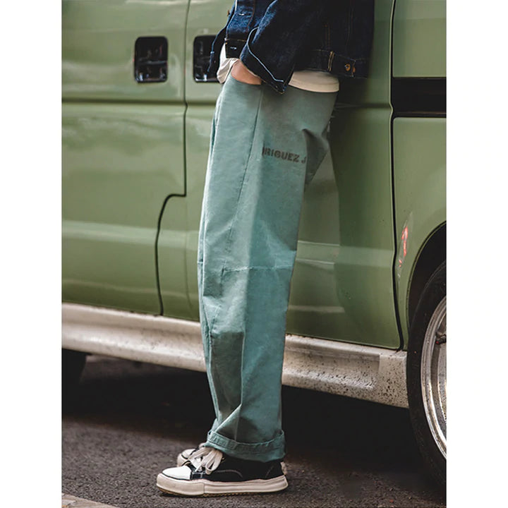 本アイテムは右フロントと左後ろヒップにあるレタープリントがワンポイントで、特別なオリーブグリーン色と合わせて、ミニマライズされたクリーンな表情が印象的。コットン生地を使用し、耐久性も抜群で履き続ける事で味が出てきて自分だけの1本に仕上がり。ゆったりとしたシルエットだが、ダラダラし過ぎない、程よいルーズ感。