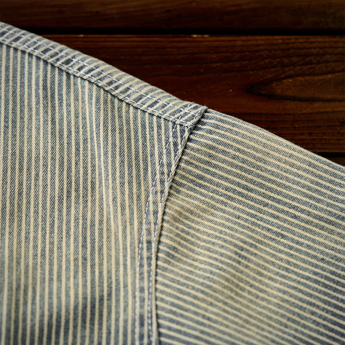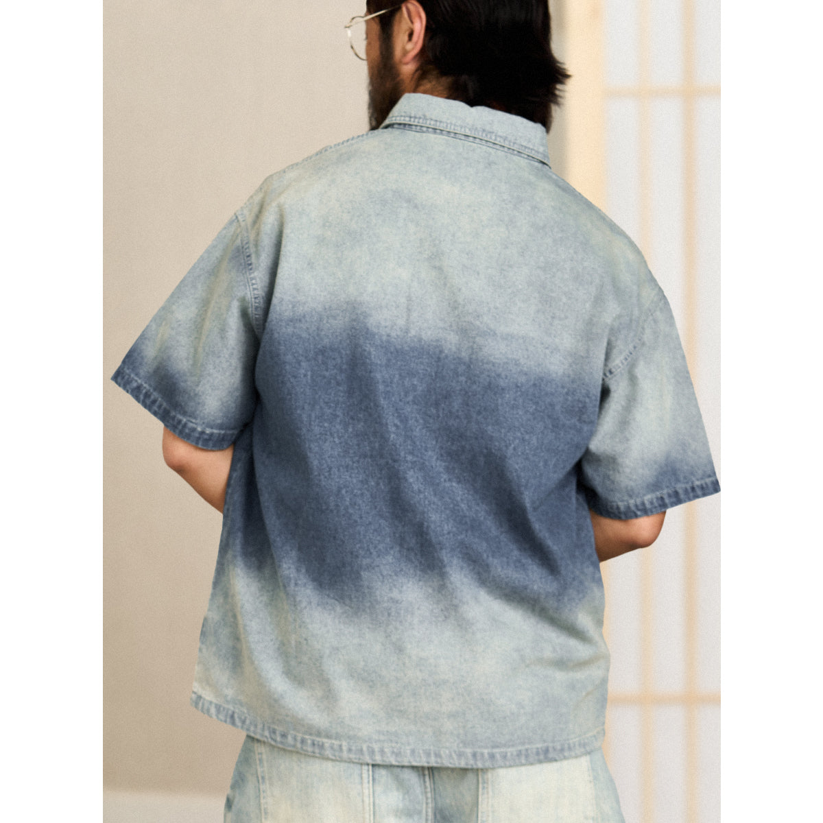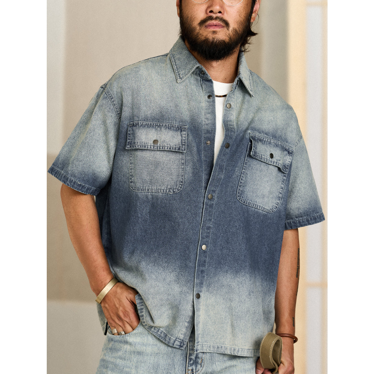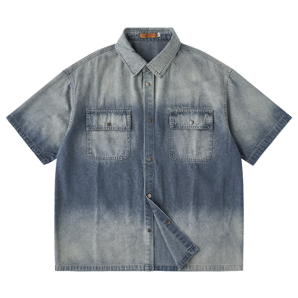 ストライプ柄&無地選べる ウォッシュド加工半袖デニムワークシャツ