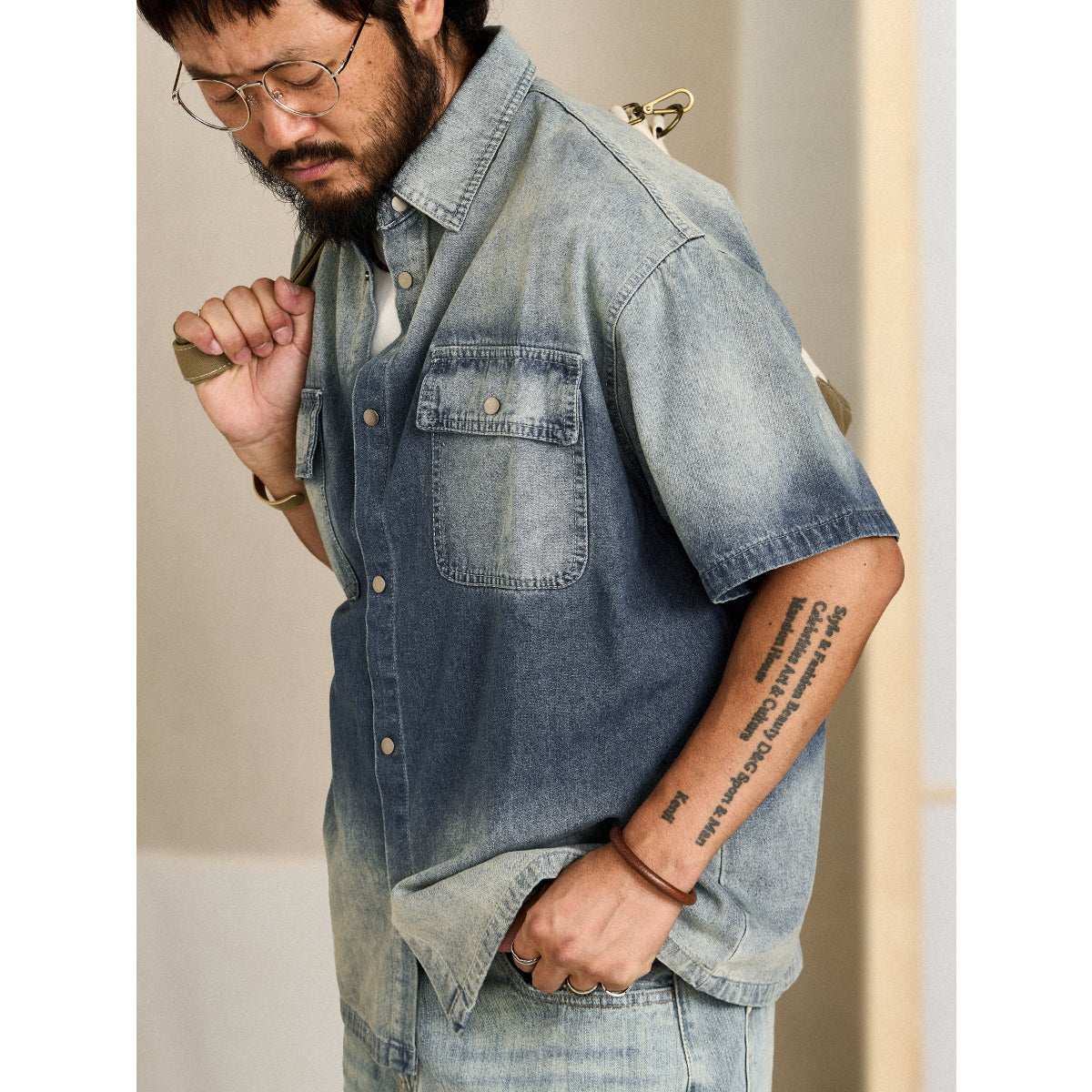 ワークスタイルにこだわる大人に向けた、洗いざらしの風合いが魅力の半袖デニムシャツが登場。程よく色落ちしたウォッシュド加工で、着込むほどに味が出るヴィンテージライクな1枚に仕上げました。胸元のフラップポケットや丈夫なステッチワークなど、ワークシャツらしいディテールも抜かりなし。カラーは使い勝手の良い3色展開で、カジュアルからワークまで幅広いスタイリングに対応します。程よいゆとりのあるシルエットで、リラックス感もありながら、すっきりとした印象を与えます。1枚で主役になるのはもちろん、羽織りとしても使える万能アイテム。この夏のデイリーコーデに取り入れたい、こだわりの詰まった1着です。