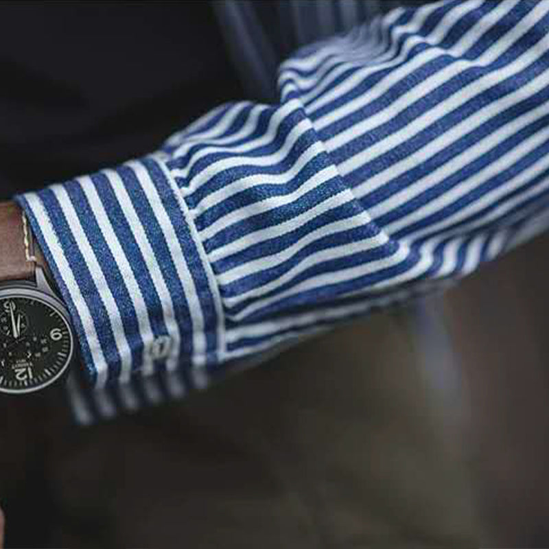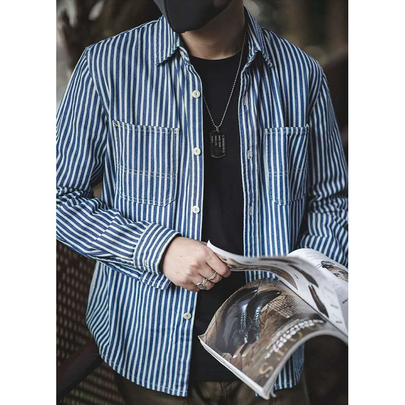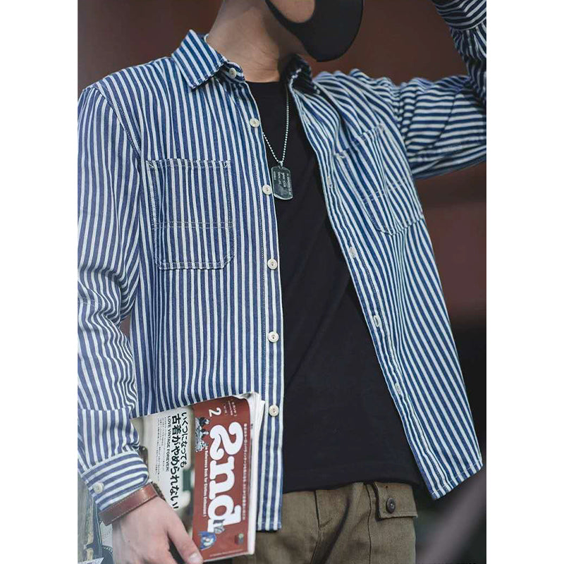 青と白のコンビネーション模様を施したシャツで、100年ほどまえのアメリカにおいて主要な輸送インフラだった鉄道の作業員が着用するために考案され、その歴史のはじまりとされています。汚れがなるべく目立たないようにとの配慮から、縞模様を施したといわれているのですが、「白」をチョイスしたの理由は「青と白のコンビネーションが、涼しげな色味だったから」いわゆる“プラシーボ効果”ともいえるのですが、暑い蒸気機関車のキャビン内で働く鉄道作業員たちは、見た目や色合いにも涼を求めていたんです。