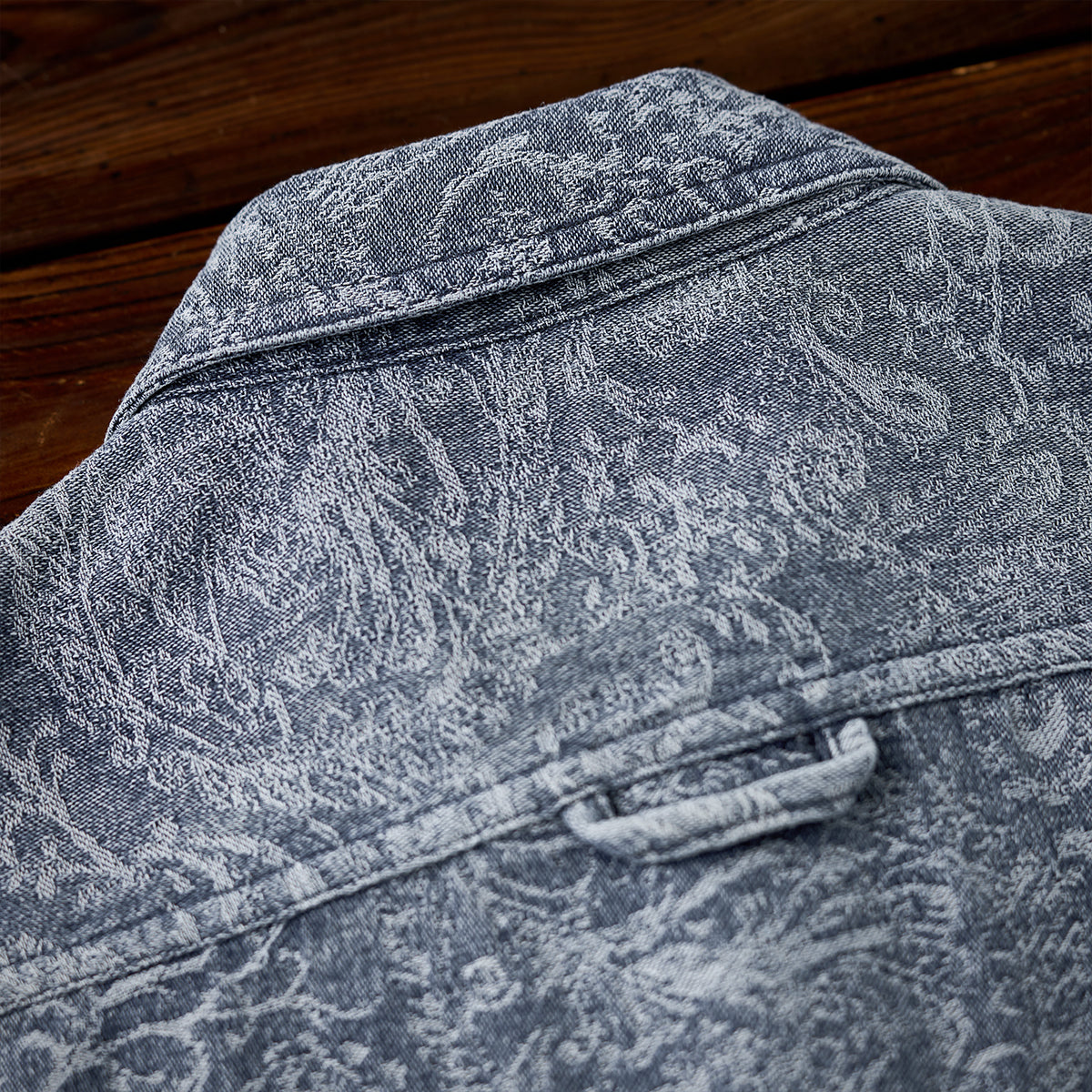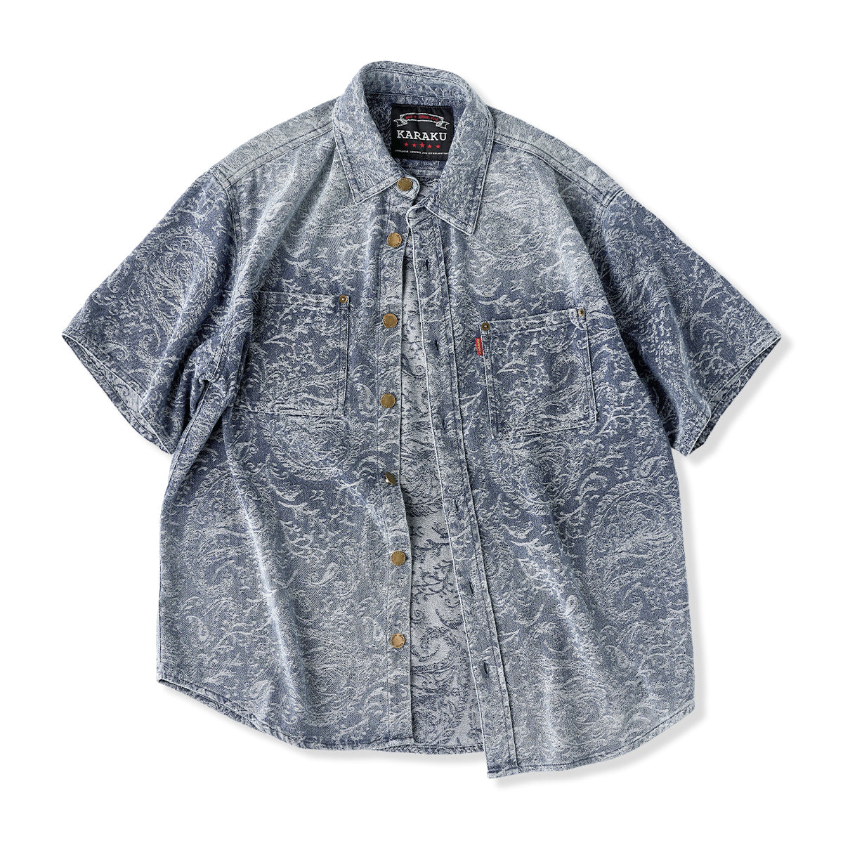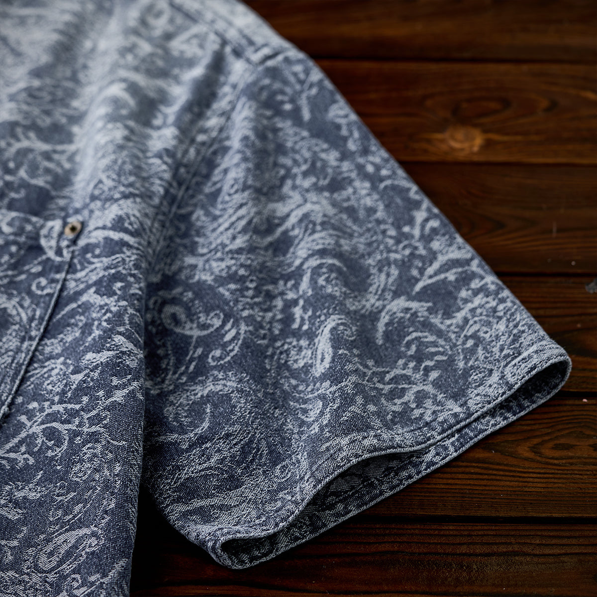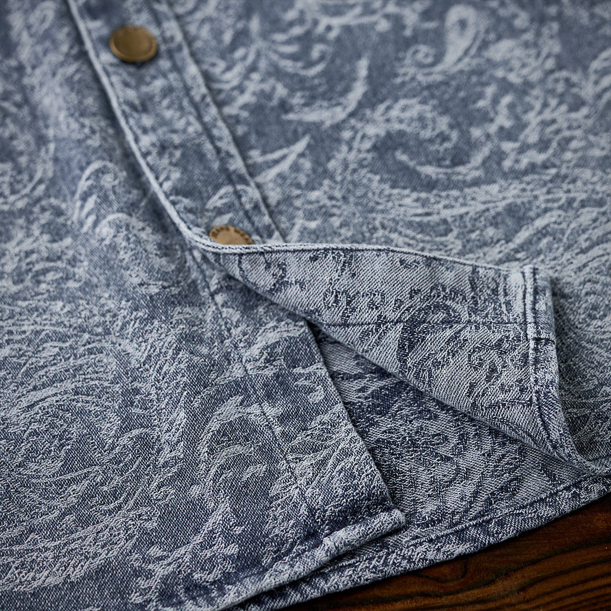 ジャガードペイズリー柄ユーズド加工デニムシャツ