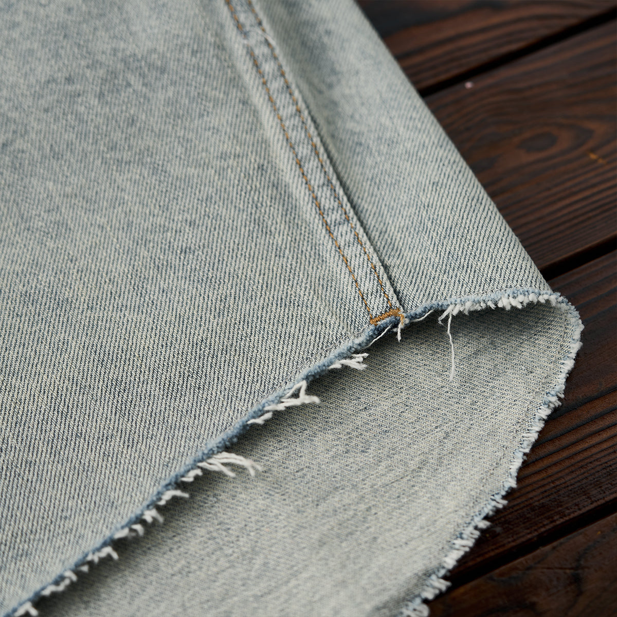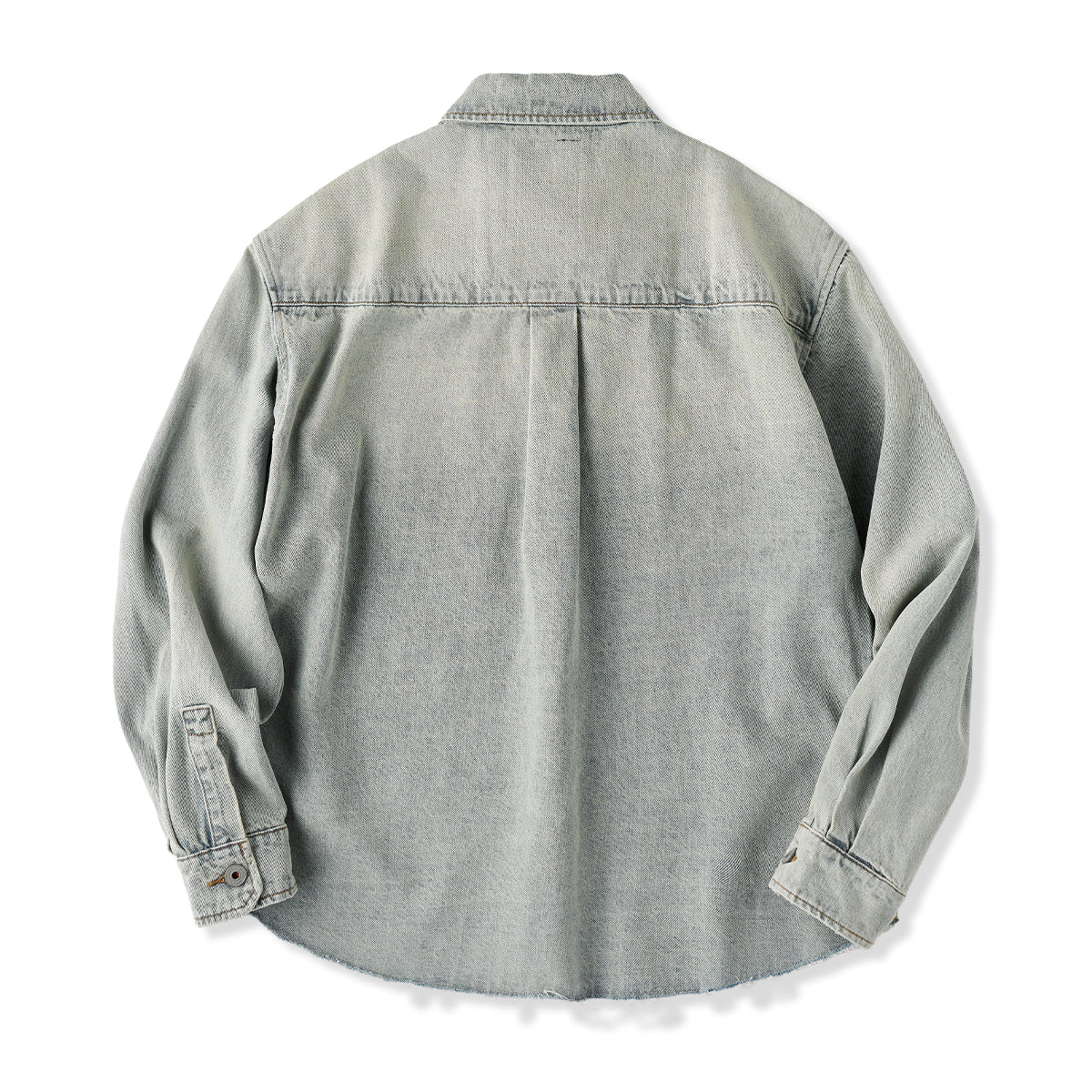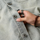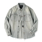 裾フリンジカット&ウォッシュド加工 デニムワークシャツ
