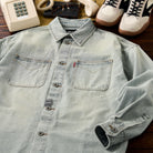 裾にフリンジカットを施し、程よいラフさとヴィンテージ感を演出したデニムワークシャツ。ウォッシュド加工によって表面に柔らかな風合いと奥行きのある色落ちを表現し、着るほどに身体になじむナチュラルな経年変化を楽しめます。胸元には実用的なポケットを装備し、ワークシャツらしい機能性とデザイン性を両立。タフなデニム素材を使用しながらも、軽やかで動きやすい仕上がりです。一枚着としてはもちろん、アウター感覚で羽織ってもサマになる万能アイテム。ラフなフリンジ裾がコーディネートに抜け感をプラスし、ワークテイストの中にもこなれた雰囲気を漂わせます。