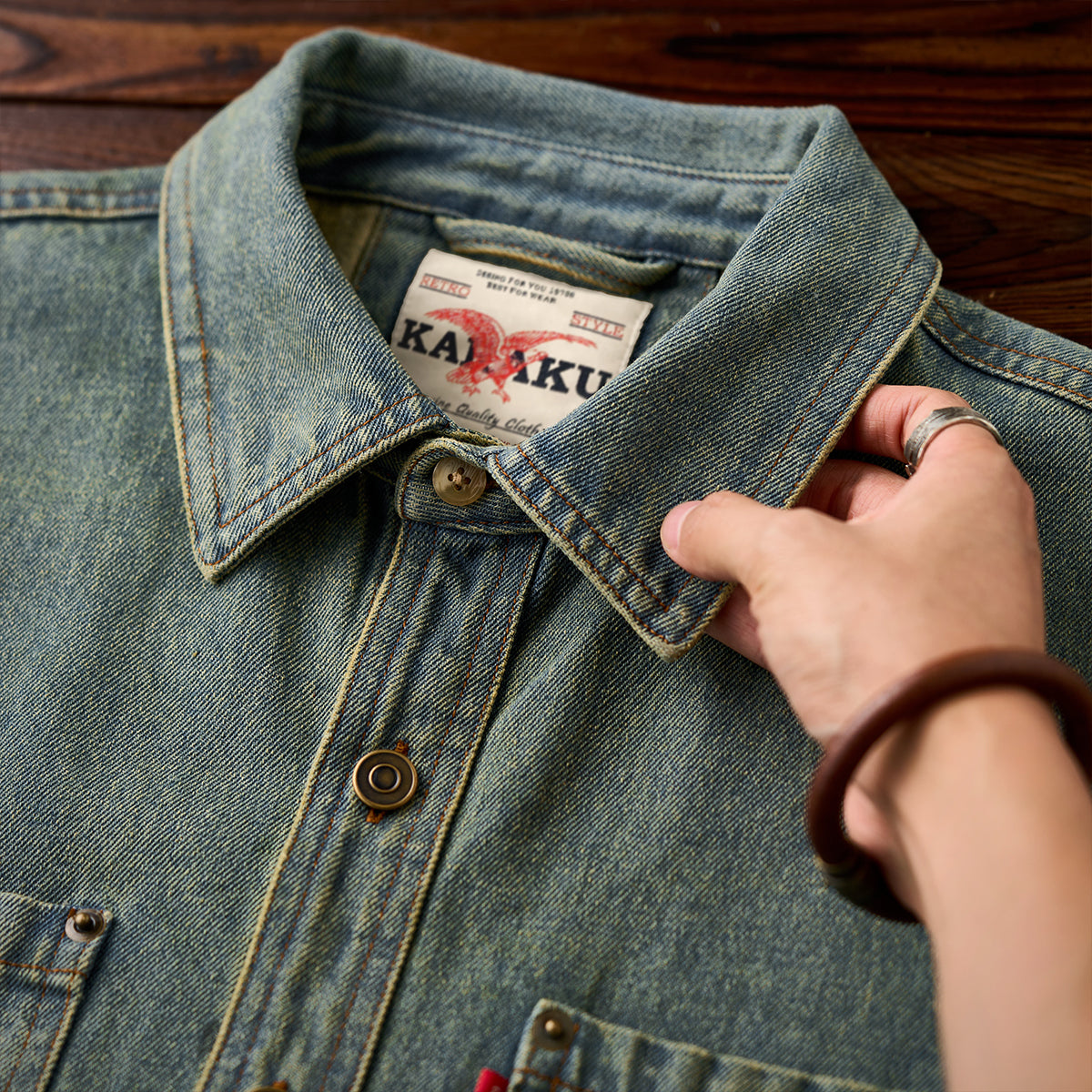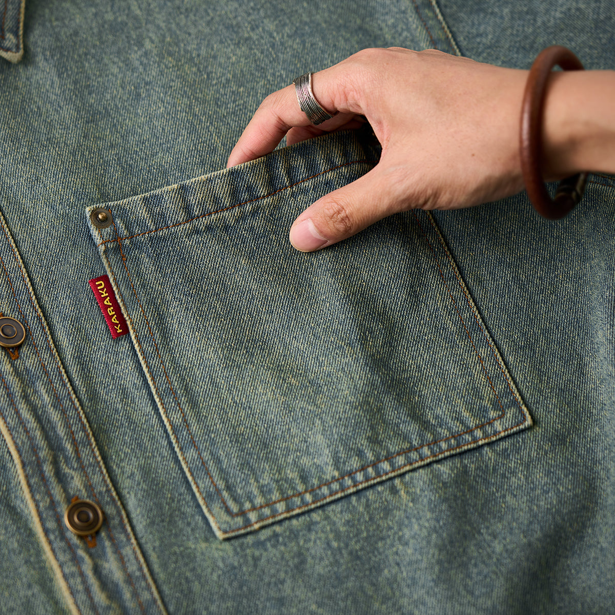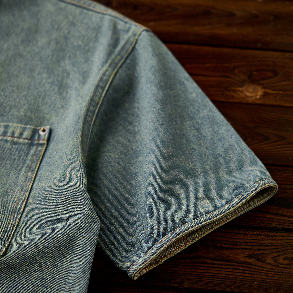 ユーズド&ウォッシュ加工 ダブルポケットデニムシャツ