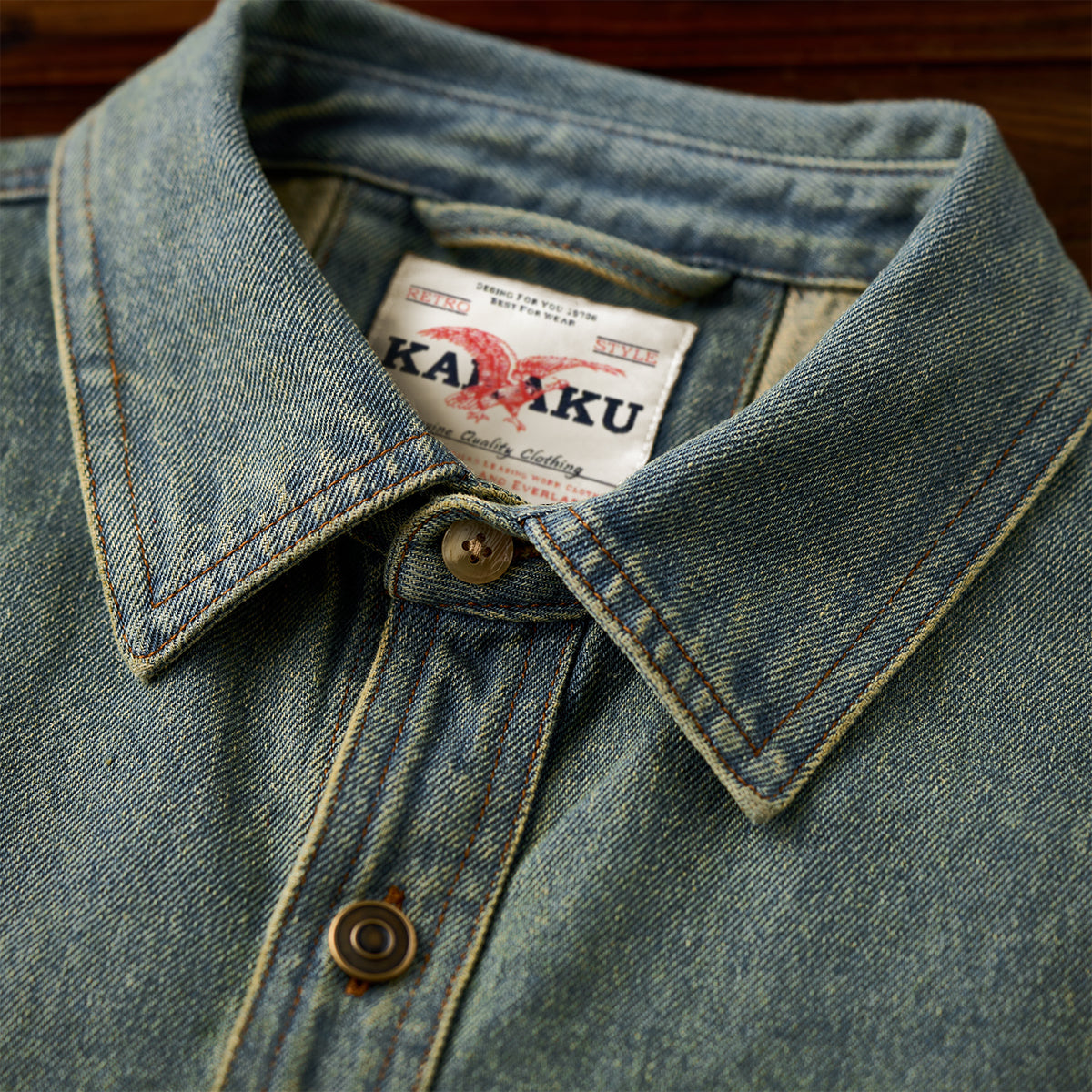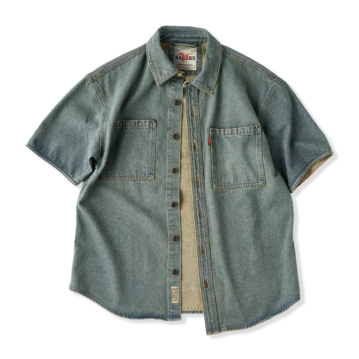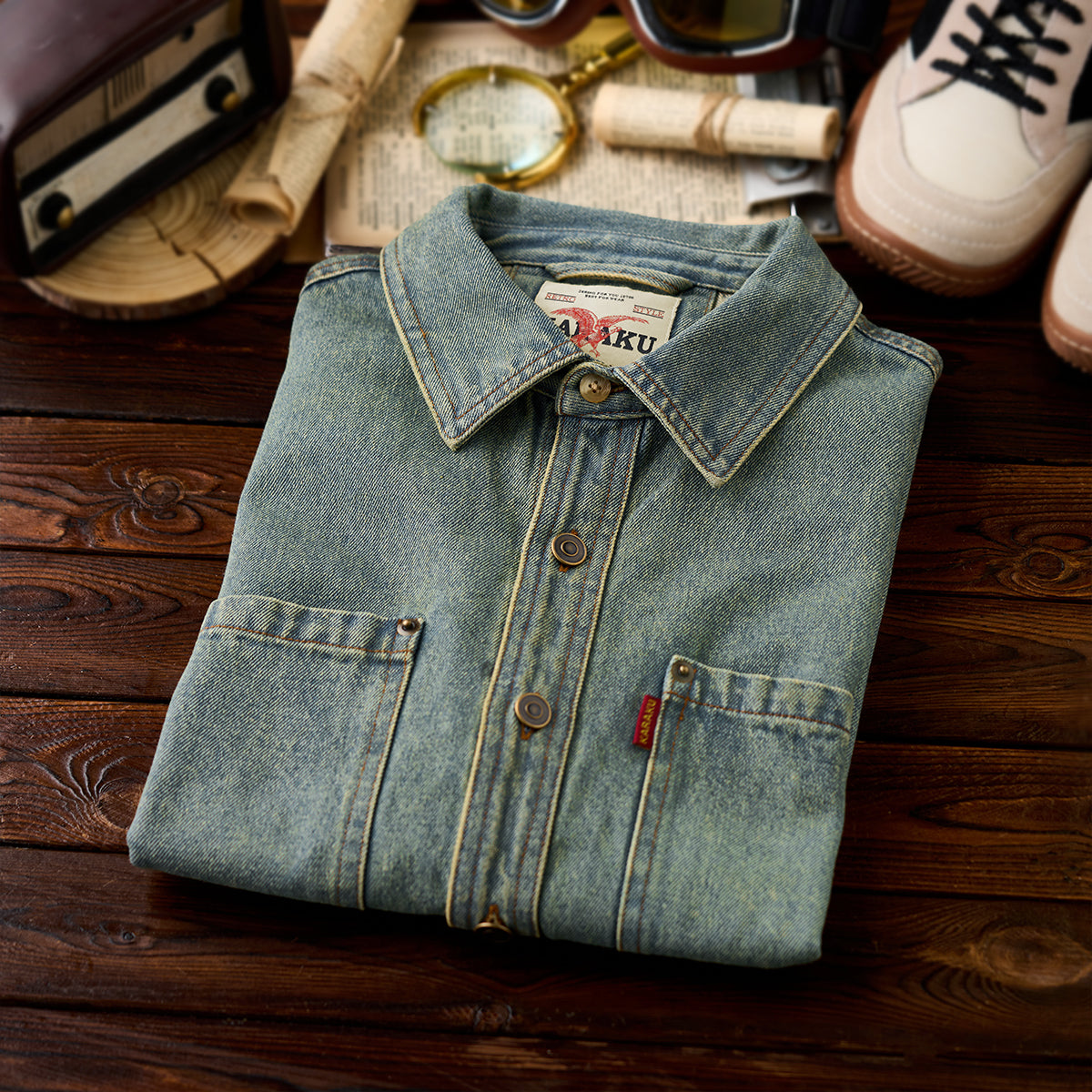 ユーズド&ウォッシュ加工 ダブルポケットデニムシャツ