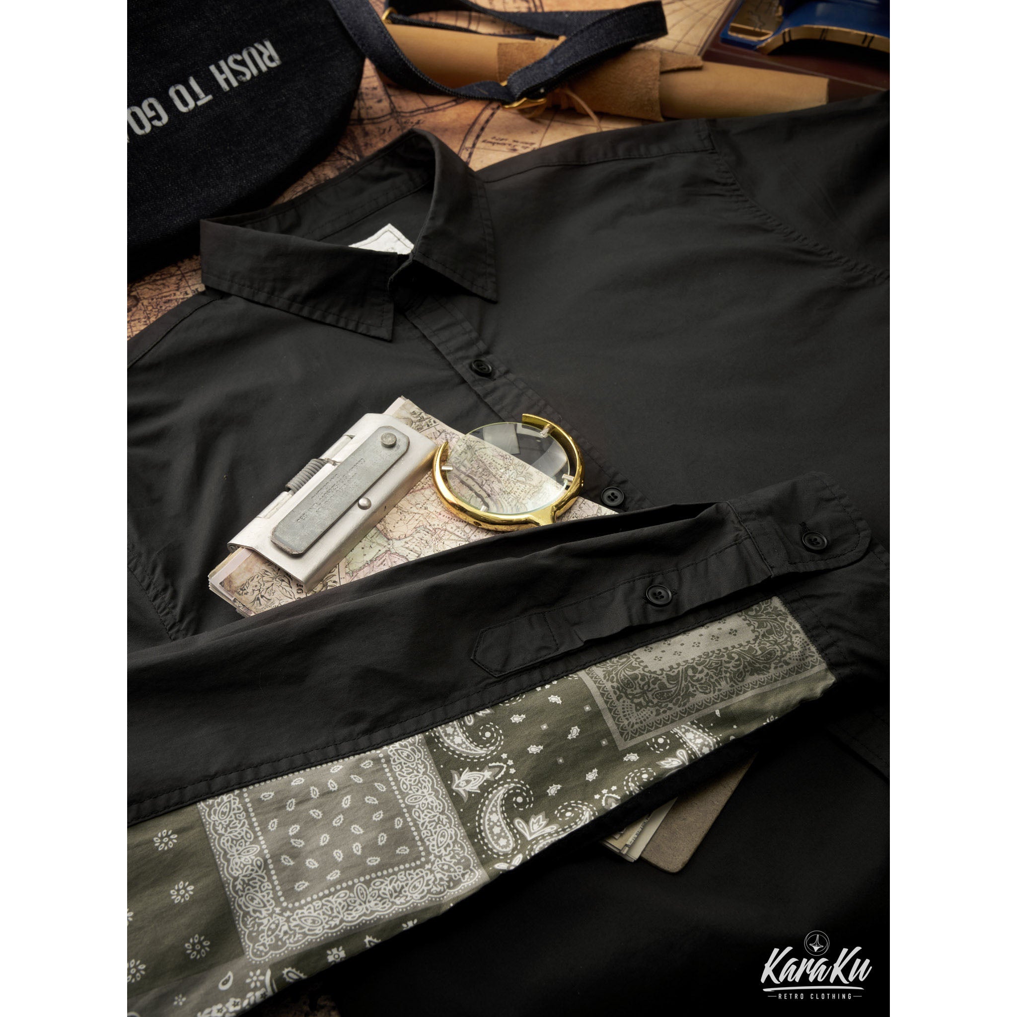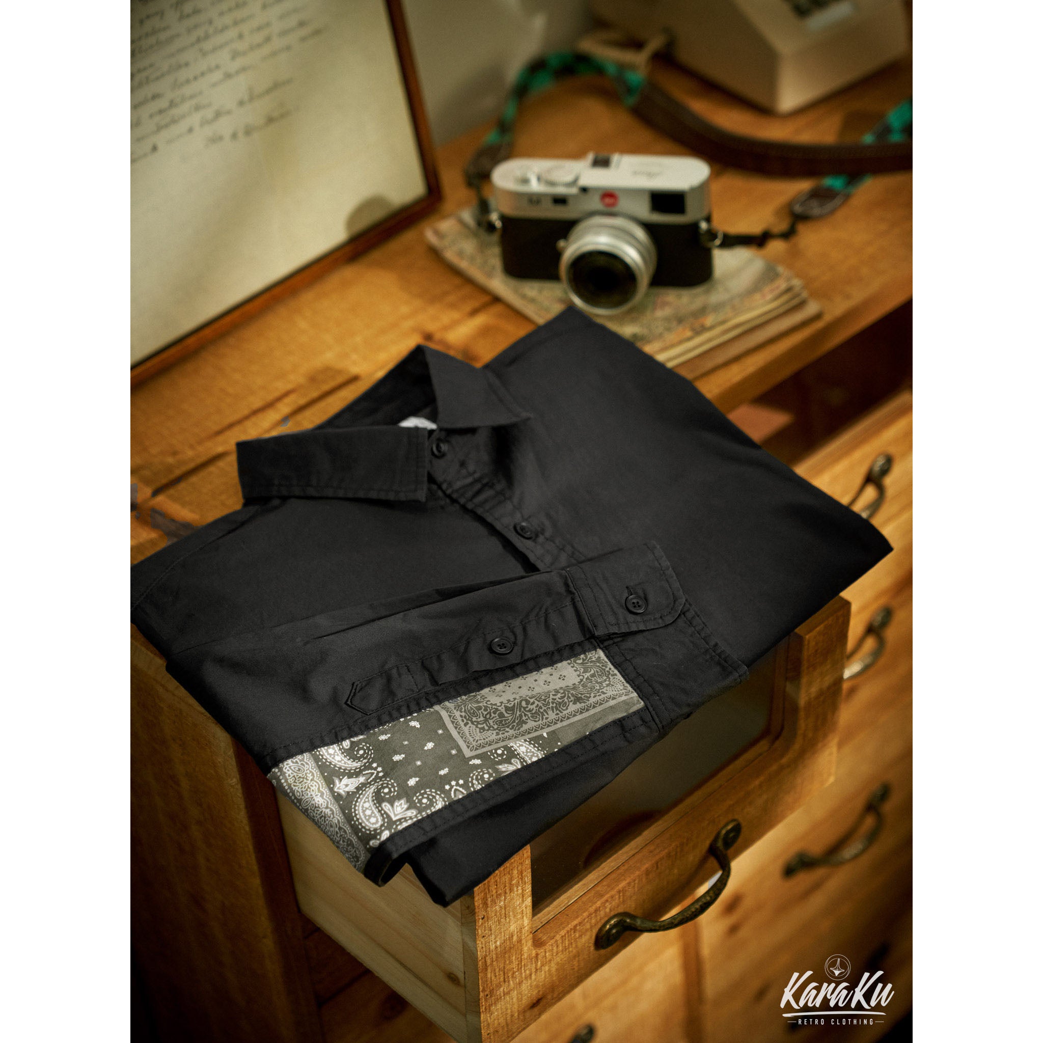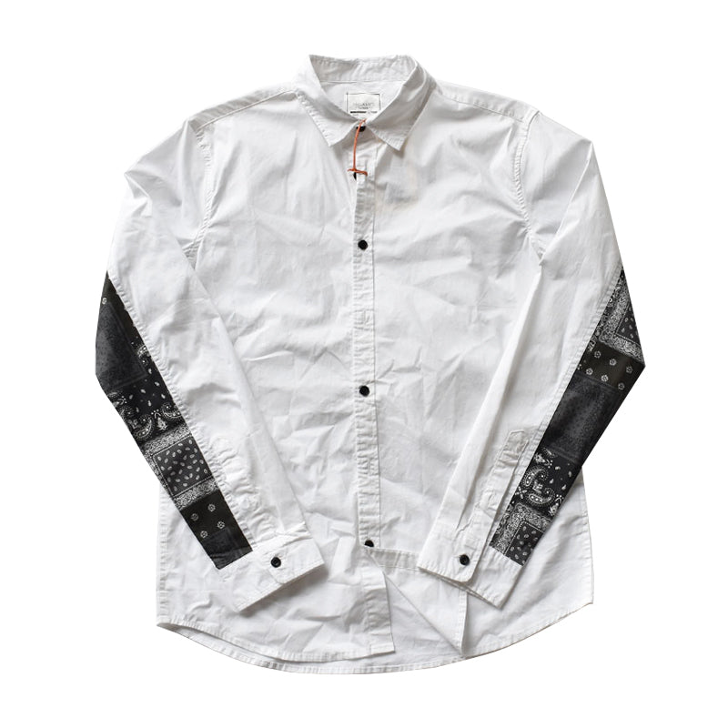 一目見たら無地でベーシックなシャツと思いがちですが、肘には民族調が満ちるペイズリー柄は綺麗に現れている特別なアイテムです。個性を十分に出した一枚!