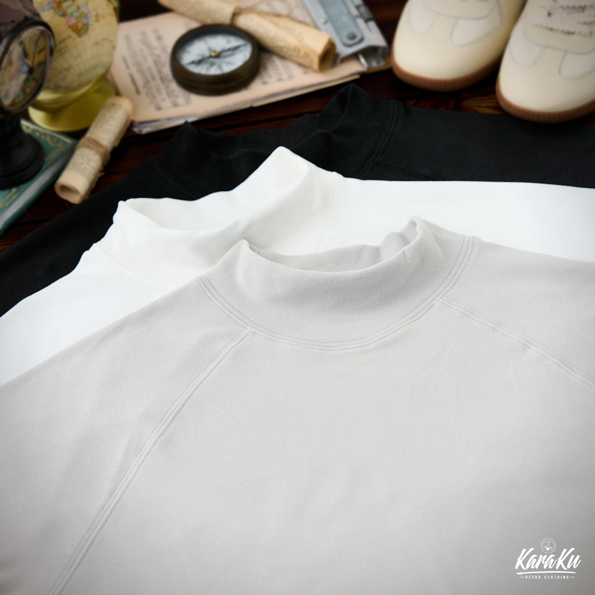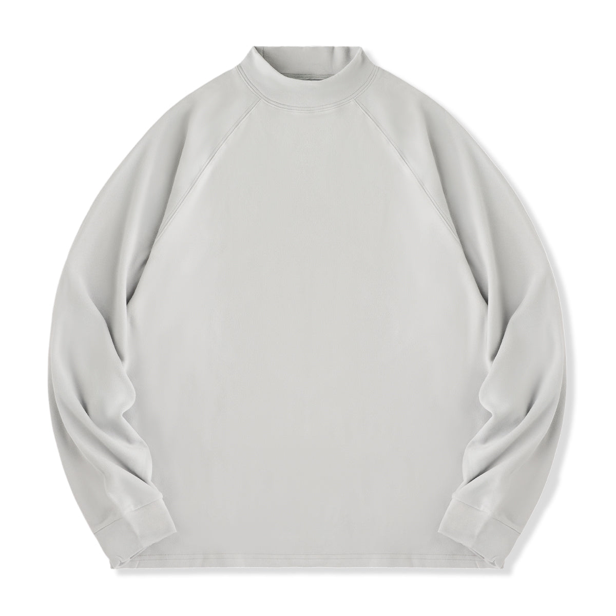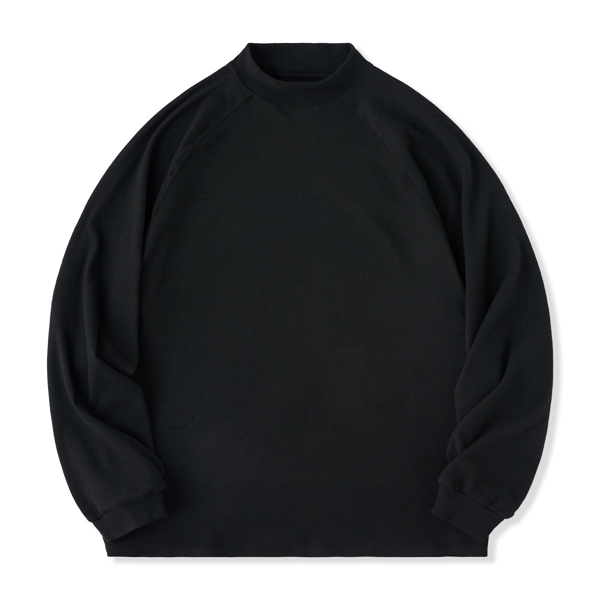 無地3色 ハーフタートルネックフリースラグランスウェット