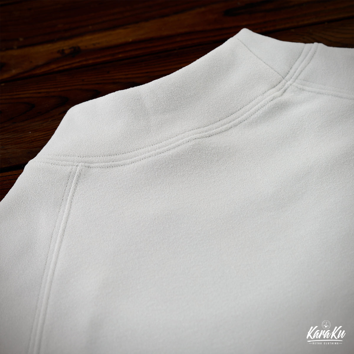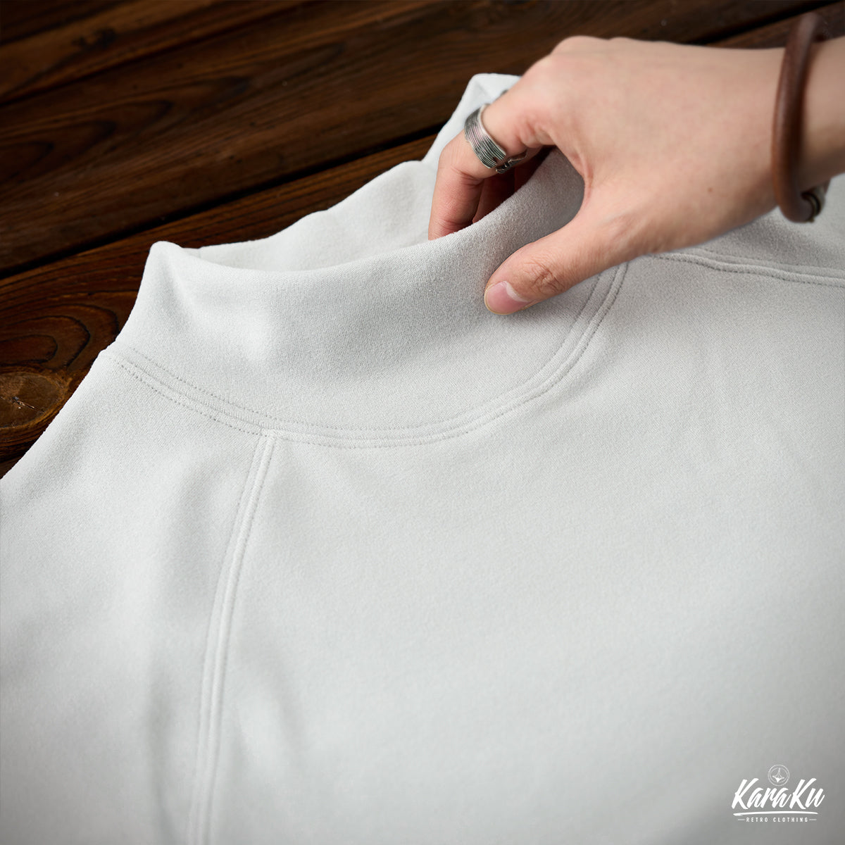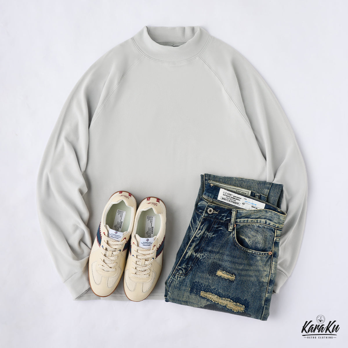 秋冬の定番として活躍するハーフタートルネックのスウェットです。首元のハーフタートルデザインが程よいアクセントとなり、防寒性を保ちながら上品な印象をプラスします。ラグランスリーブのデザインにより、肩周りの動きやすさが確保され、快適な着心地を実現しました。3色のシンプルな無地カラー展開で、どんなスタイルにも合わせやすいのが魅力。