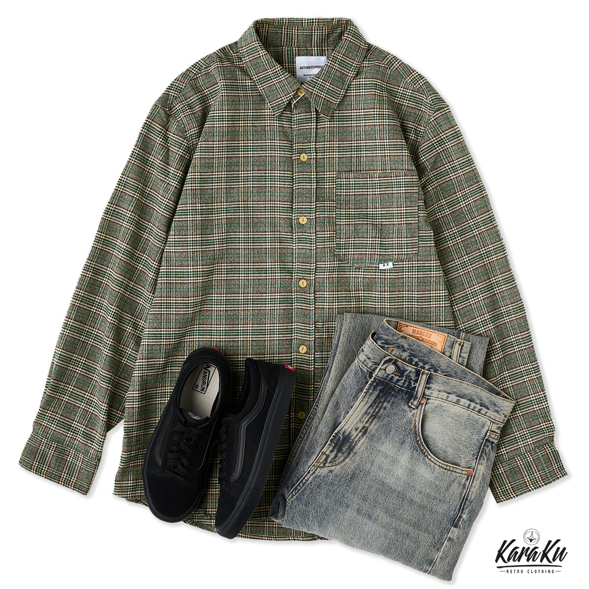 清潔感と気品を持ち快適な長袖シャツが登場!全体のグレンチェック柄はレトロな雰囲気が満載!単にプリントではなく、織り感がある色糸を織り込んだシャツが仕上がり、独特な手触りが高級感のある佇まいを演出。胸元にクラシックなパッチポケットはワークティストを感じる、シンプルのデザインは洒脱でこなれた雰囲気になること間違いなし。センス抜群のデザインなので着るだけで雰囲気が作れ、アメカジがお好きな方にはもちろん、カジュアルやストリートスタイルにもおすすめ。