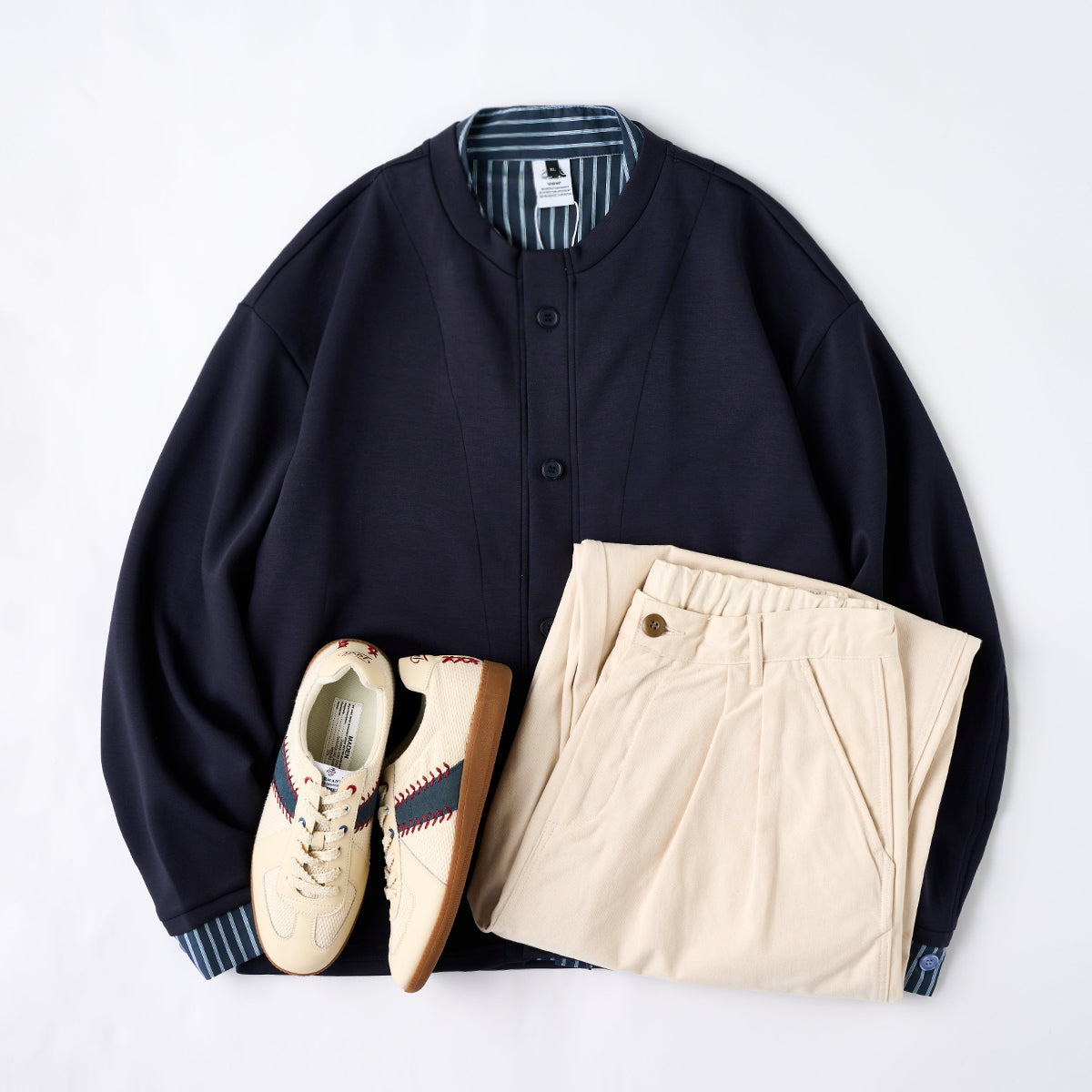 カジュアルな日常着として、ジーンズやチノパン、スニーカーと合わせることで統一感のあるスタイルが楽しめます。