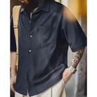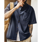ノンアイロン機能 重ねる胸ポケット付きキューバカラーシャツ