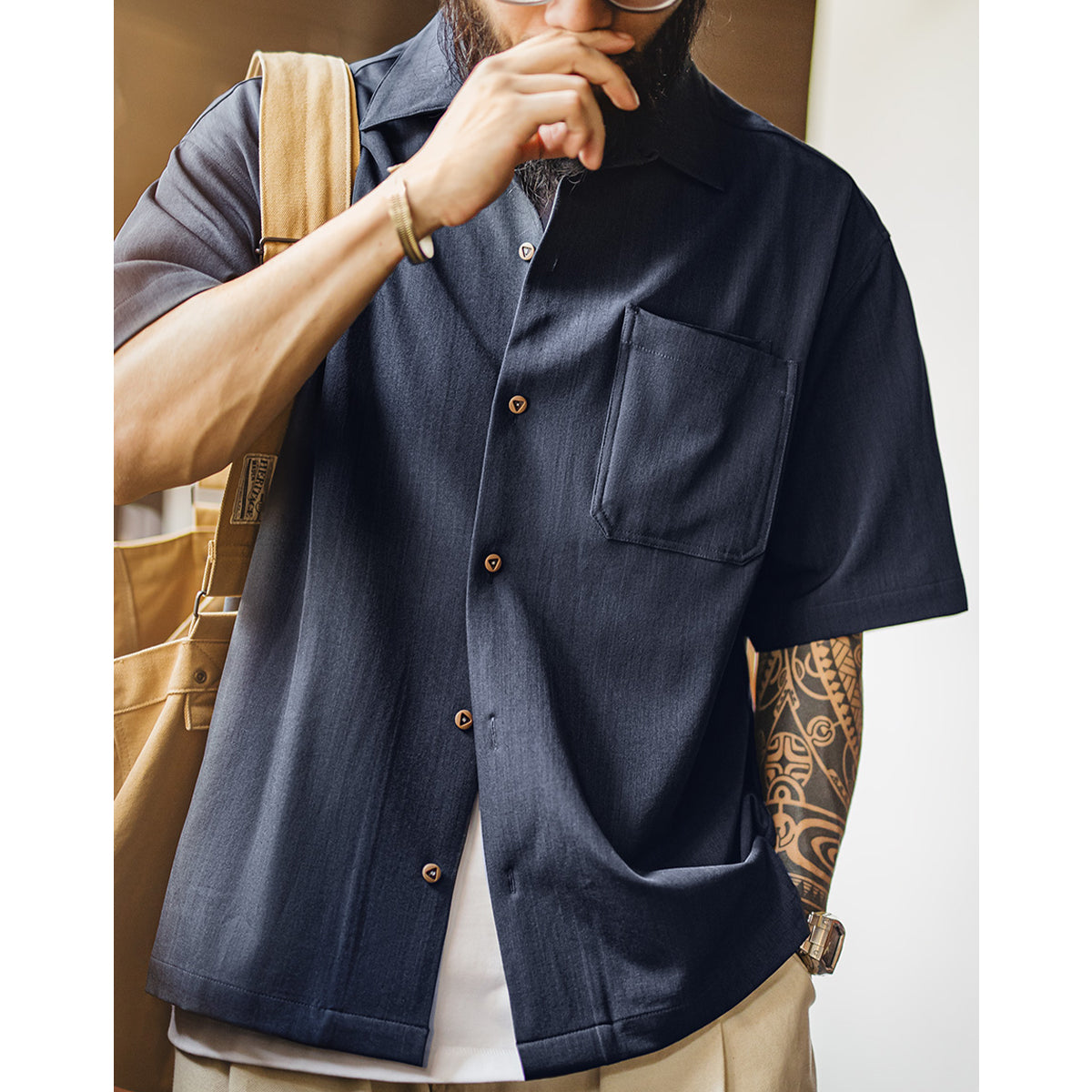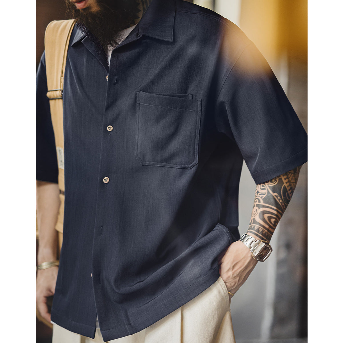 シワになりにくく、アイロンいらずのイージーケア仕様が嬉しいキューバカラーシャツ。程よくリラックス感のあるオープンカラーに、重ねて配された立体感のある胸ポケットがアクセントに。さらりとした肌触りで通気性にも優れ、夏場の一枚着としてはもちろん、Tシャツの上から羽織るライトアウターとしても活躍。きちんと感とカジュアルさを兼ね備えた、デイリーユースに最適な一着です。