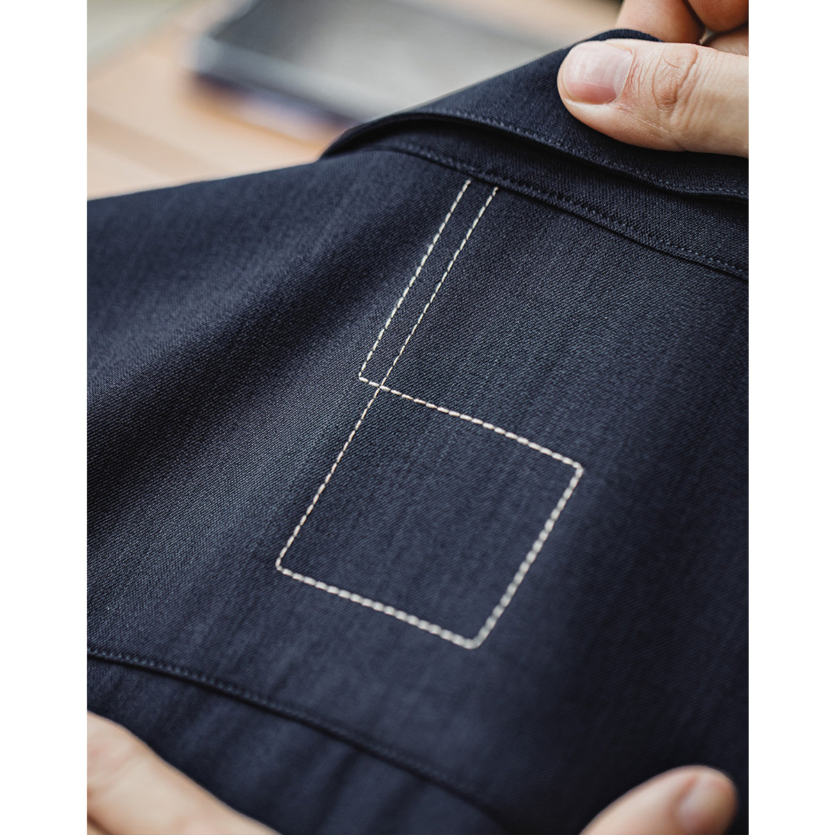 スラックス系に合わせると大人カジュアルな雰囲気に、デニムやチノパンはカジュアルでラフな印象になります。スタイリング次第で違う表情を見せてくれる、まさに型にはまらない優れものです。