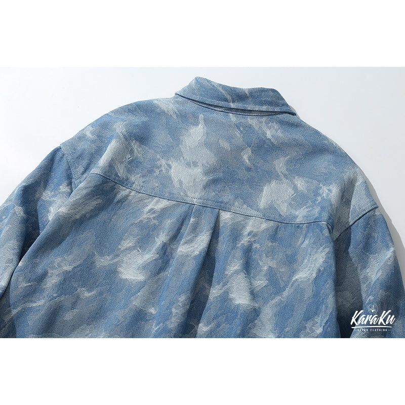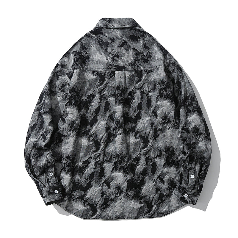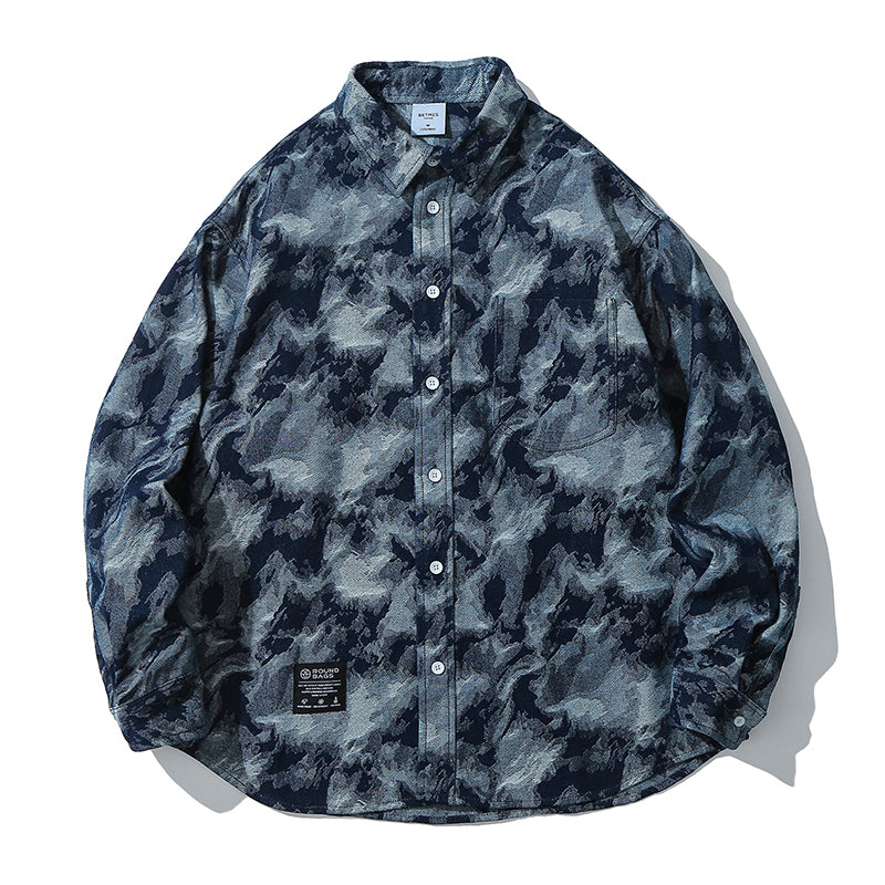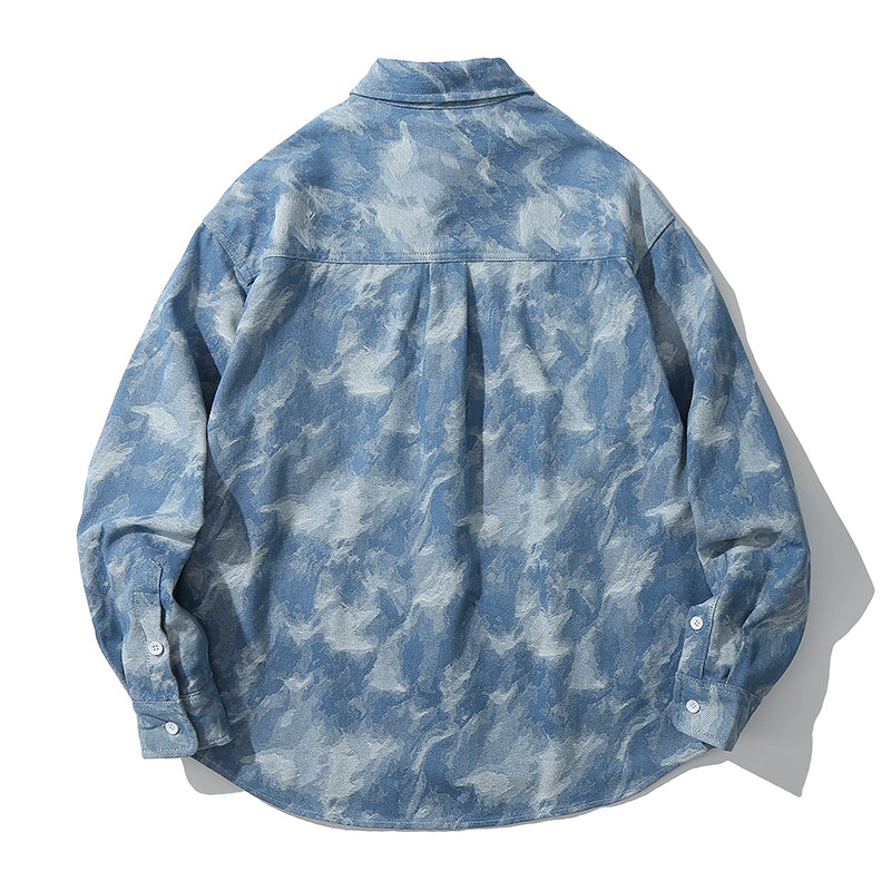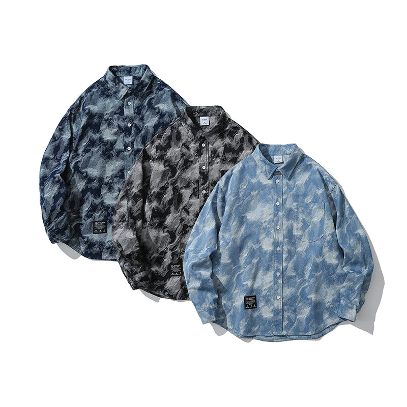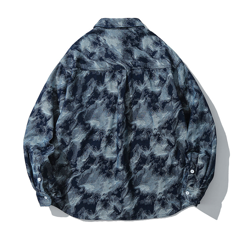 油絵風グラデーション総柄 ラグランデニムワークシャツ