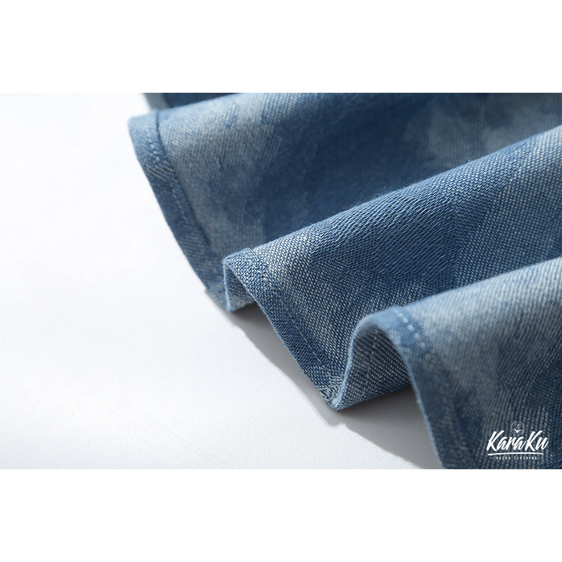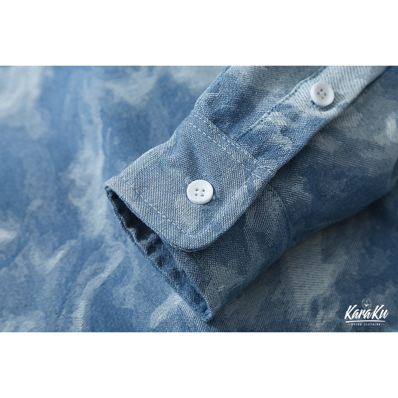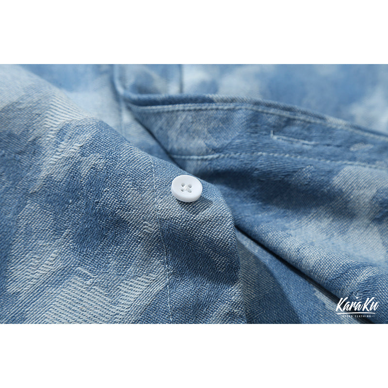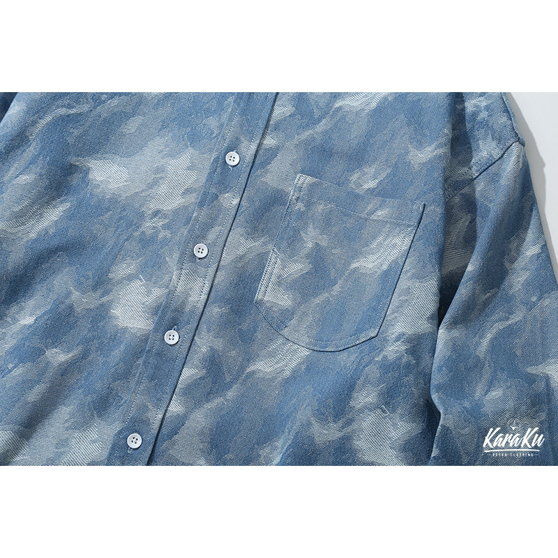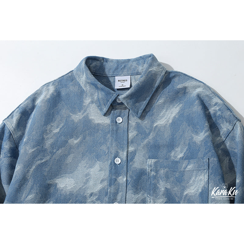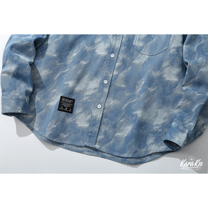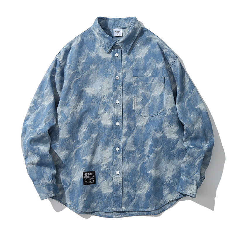 油絵風グラデーション総柄 ラグランデニムワークシャツ