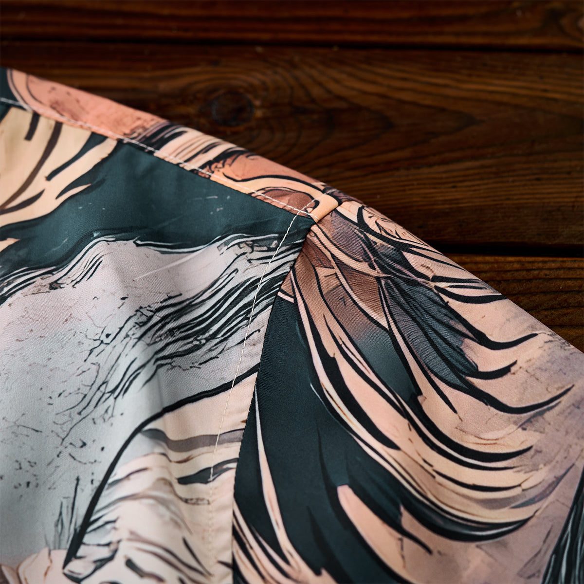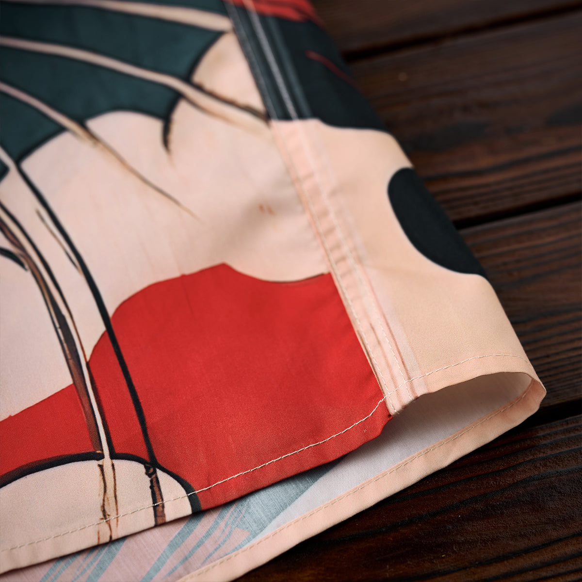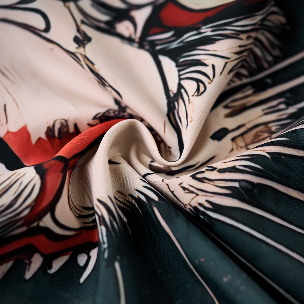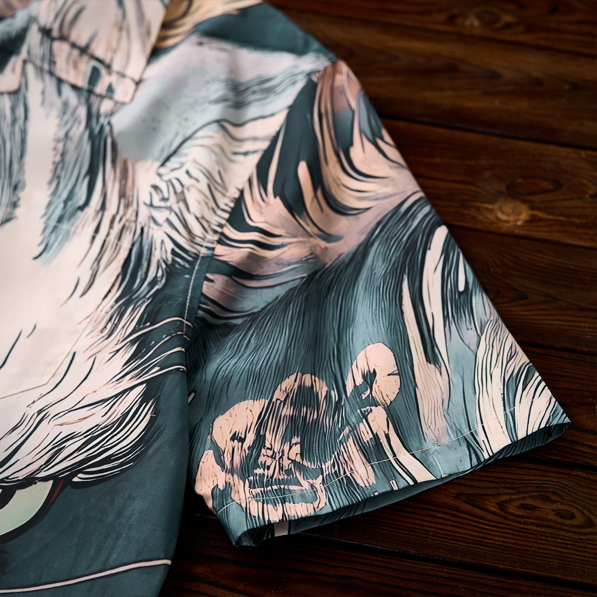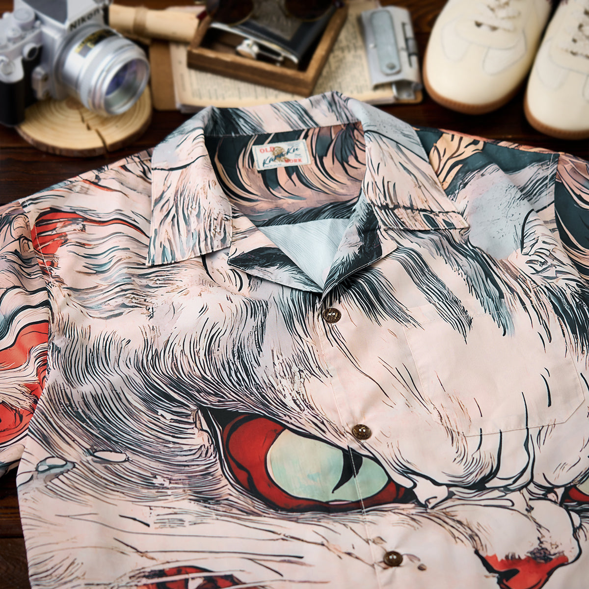 民間伝承「烈吼ノ猫又」浮世絵風前後アシンメトリープリントオープンカラーシャツ