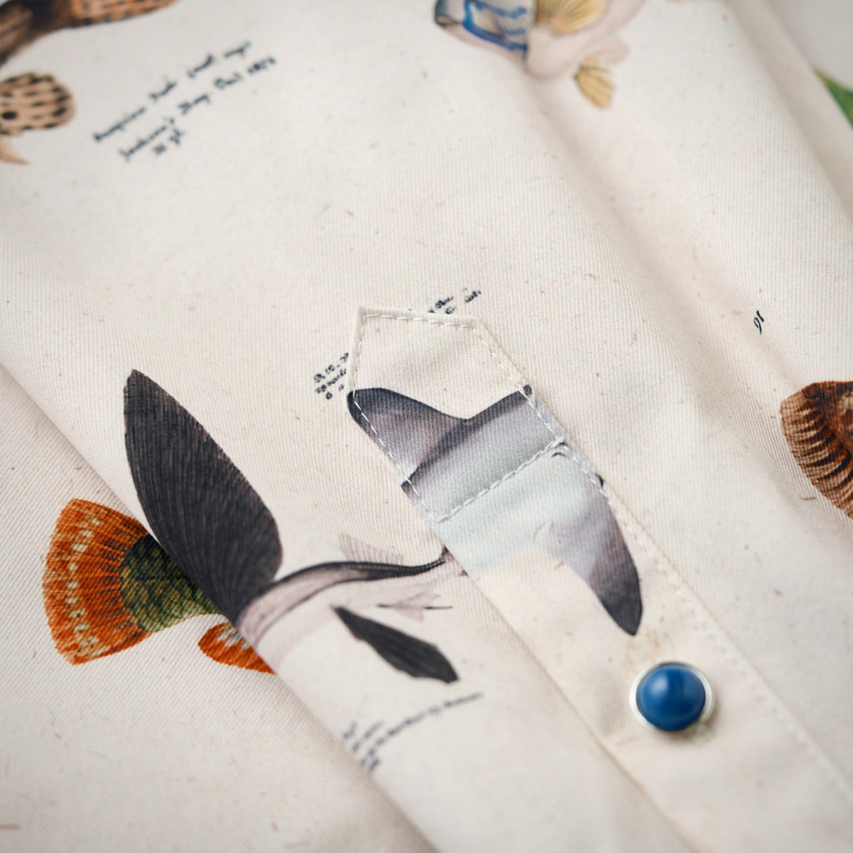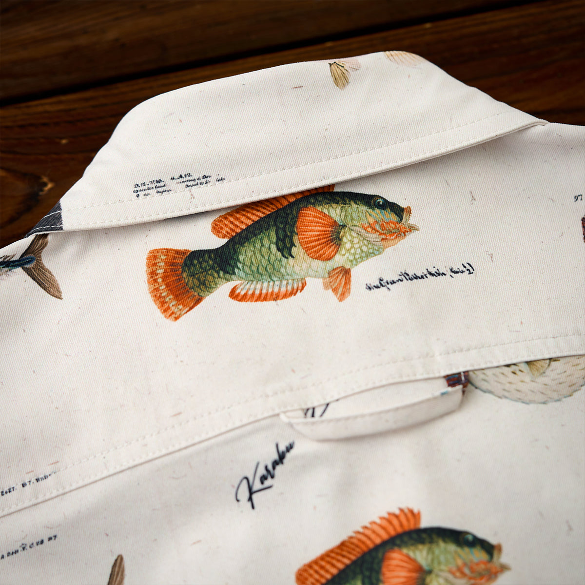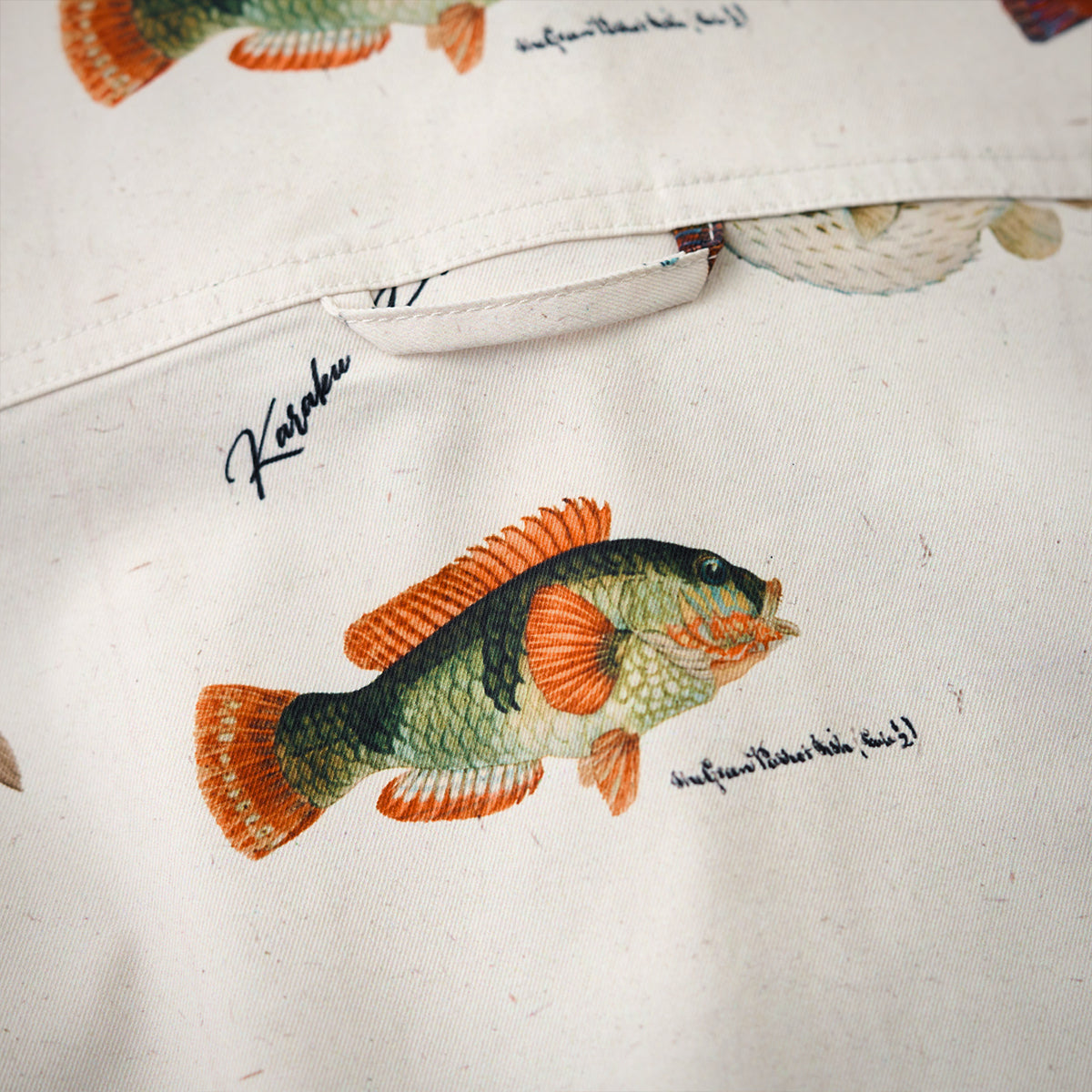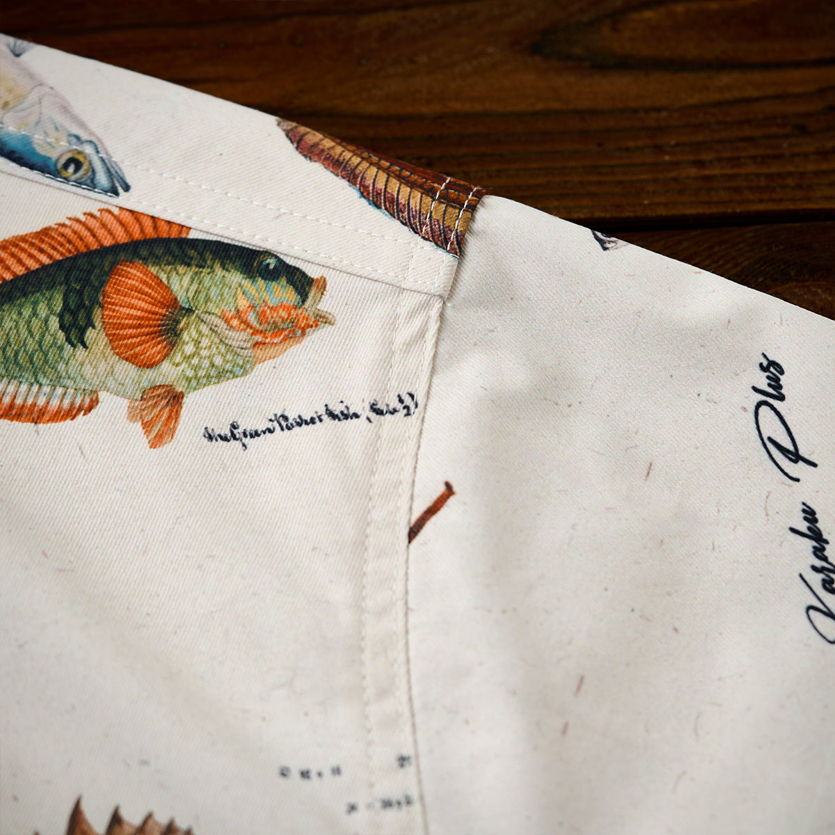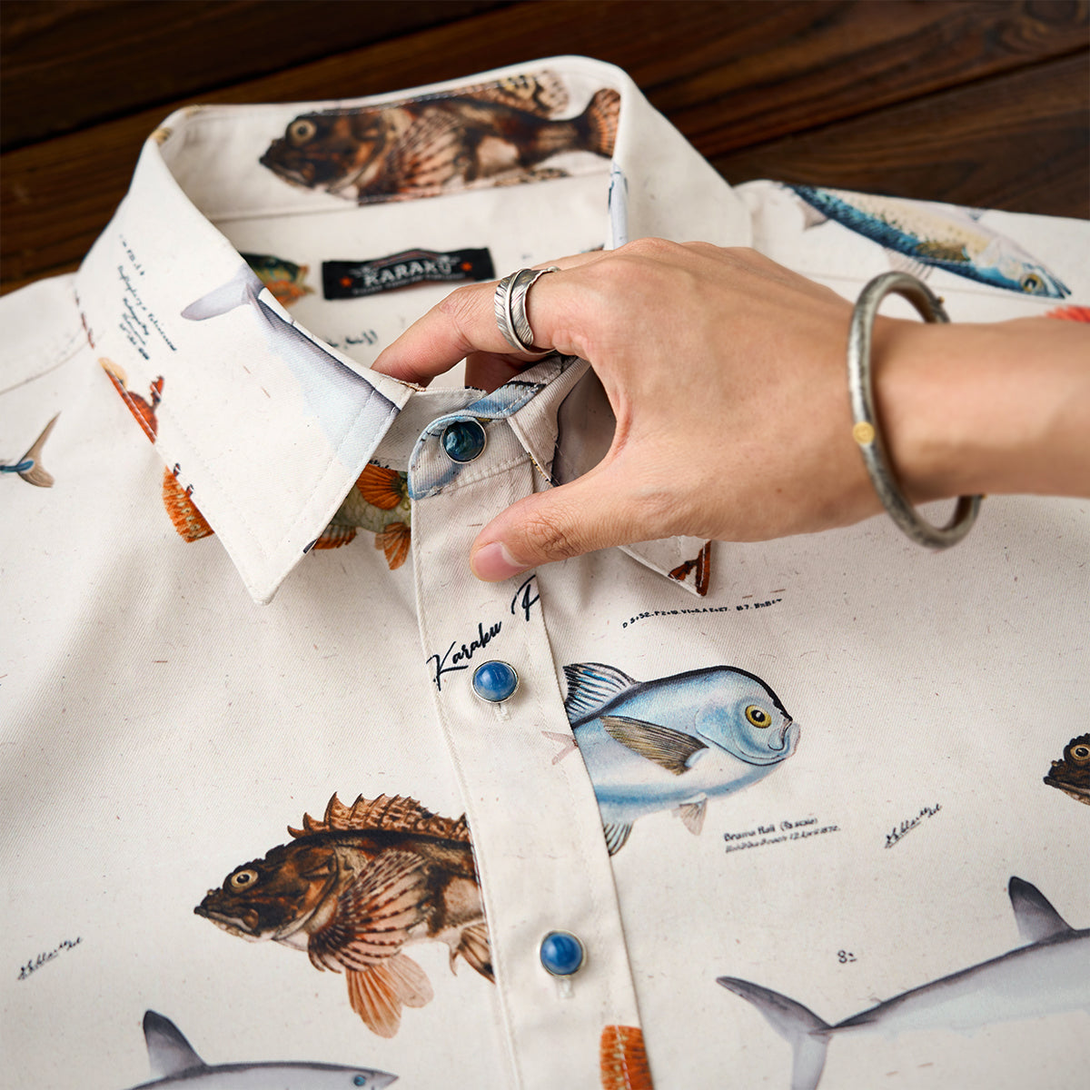 「博物図鑑・深海魚」総柄 オーダーメイドボタン付き長袖シャツ